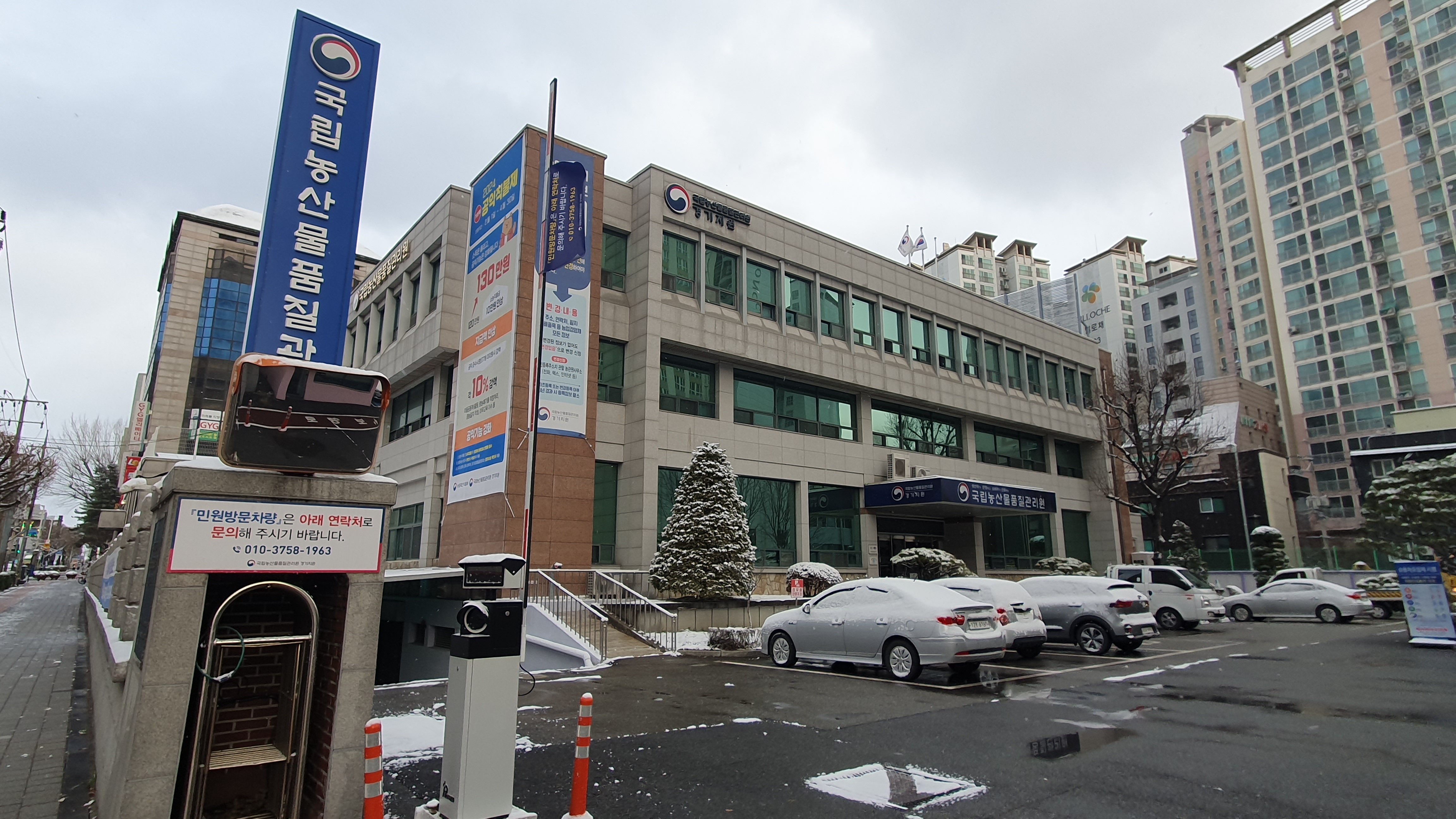 2023.12.16/ #도시기록 #공공기관 #안양 #국립농산물품질관리원경기지원/ 안양6동 532-9(안양로 114)에 위치한 국립농산물품질관리원 경기지원. 안양에 마지막 남은 정부 공공기관이 아닐까 싶다. 정부의 농림축산식품부 산하 국립농산물품질관리원 소속기관으로 이곳에서는 쇠고기,돼지고기 등 식육 및 축산물 가공품의 원산지 위반행위에 대한 점검을 하고 있다.