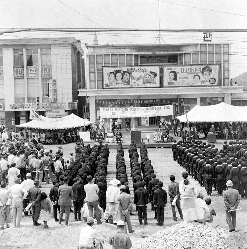 2023.12.18/ #아카이브 #옛사진 #안양 #장내동 #안양4동 #Ssince1967/ 1967년 4월 19일 시흥군청앞 공터인 읍민관(현 2001아울렛옆 안양빌딩.1층에 다이소건물)앞에서 열린 행사 사진으로 국가기록원에 소장된 기록물이다. 당시 기록을 보면 주간 새나라신문 주최로 안양에서 열린 전국 읍면대항 퀴즈대회 시상식 모습이다,. 어떤 연유에서 전국 읍면대항 퀴즈대회 시상식이 안양에서 열리게 되었는지 모르지만 행사장 사진속 현수막을 보니 송아지 50마리가 우승상품이었으니 행사 규모가 매우 컸던 것으로 보인다.