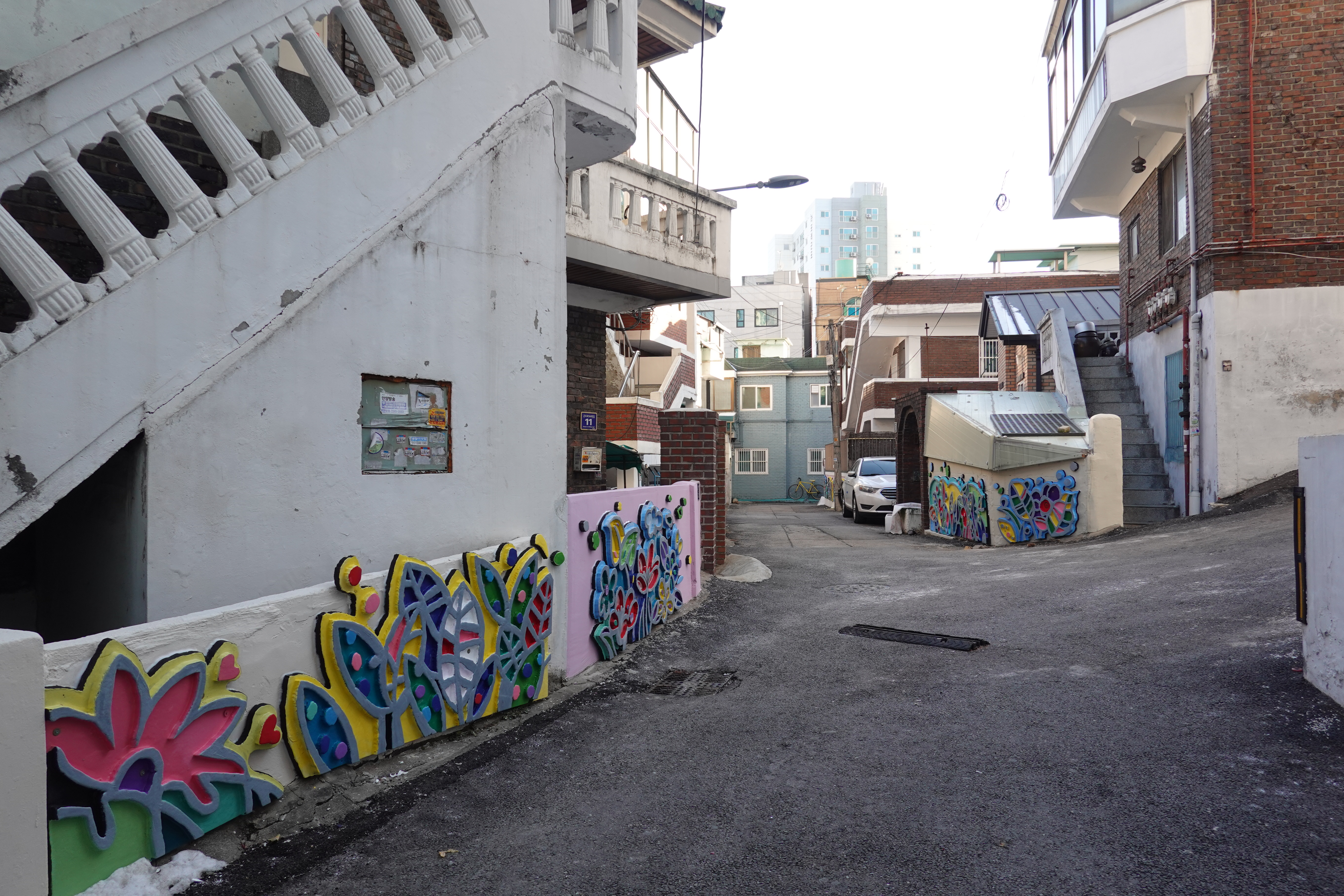 2023.12.22/ #도시기록 #군포 #골목 #동네 #벽화/ 군포역세권 도시재생뉴딜 아트프로젝트. 군포시 당동 749-24 일원 약 150m 골목에 벽화가 설치되었네요. G-ART (군포미술인 협동조합 조합장 강희진)에서 2023년 8월에 기획해서 11~12월 작업한 군포역전시장 뒷골목 아트프로젝트라고 합니다. 기대했던것 보다는 초라한 느낌.