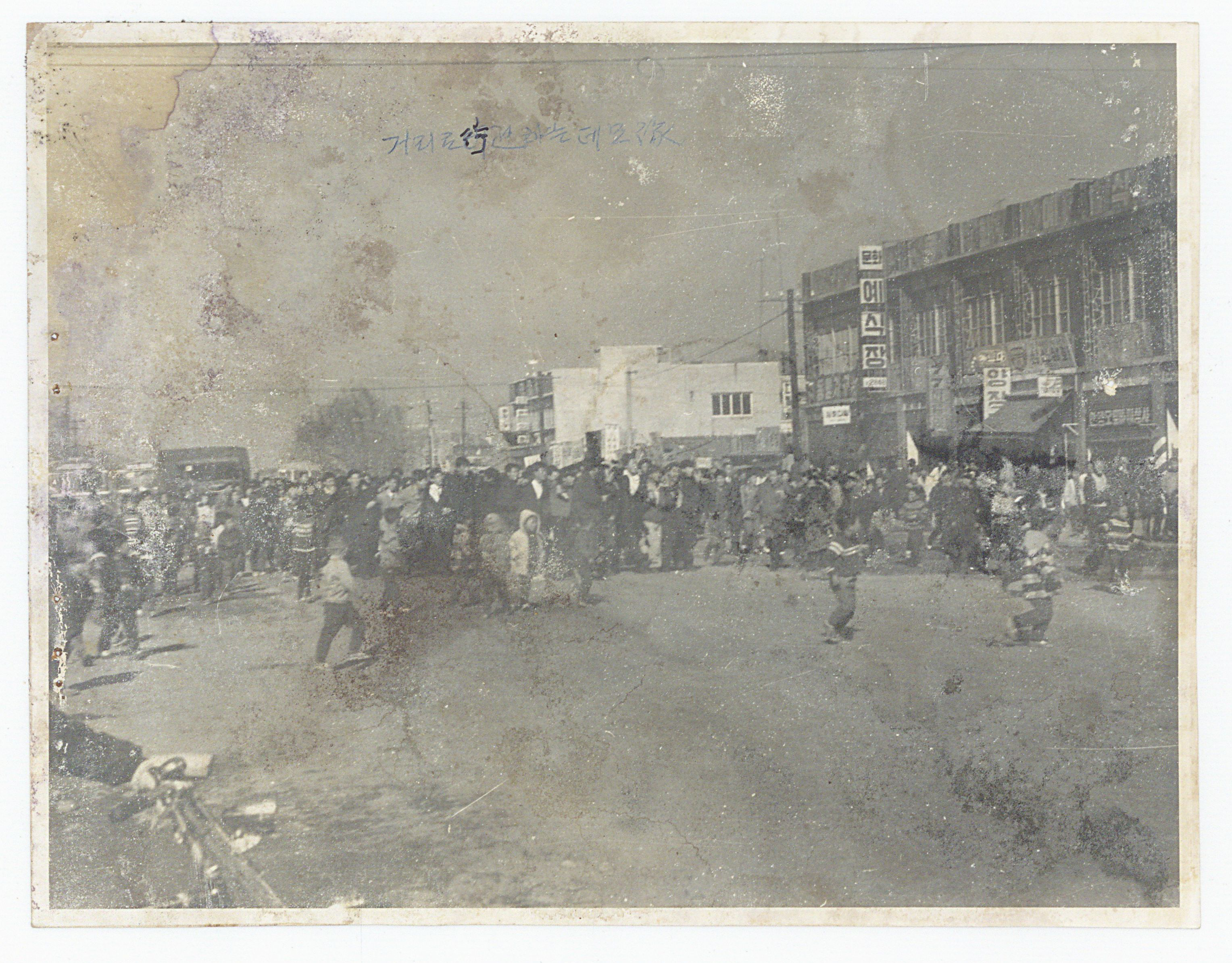 사진 설명으로 읍내에서 읍외로 산발하는 시위대라 적혀있다.