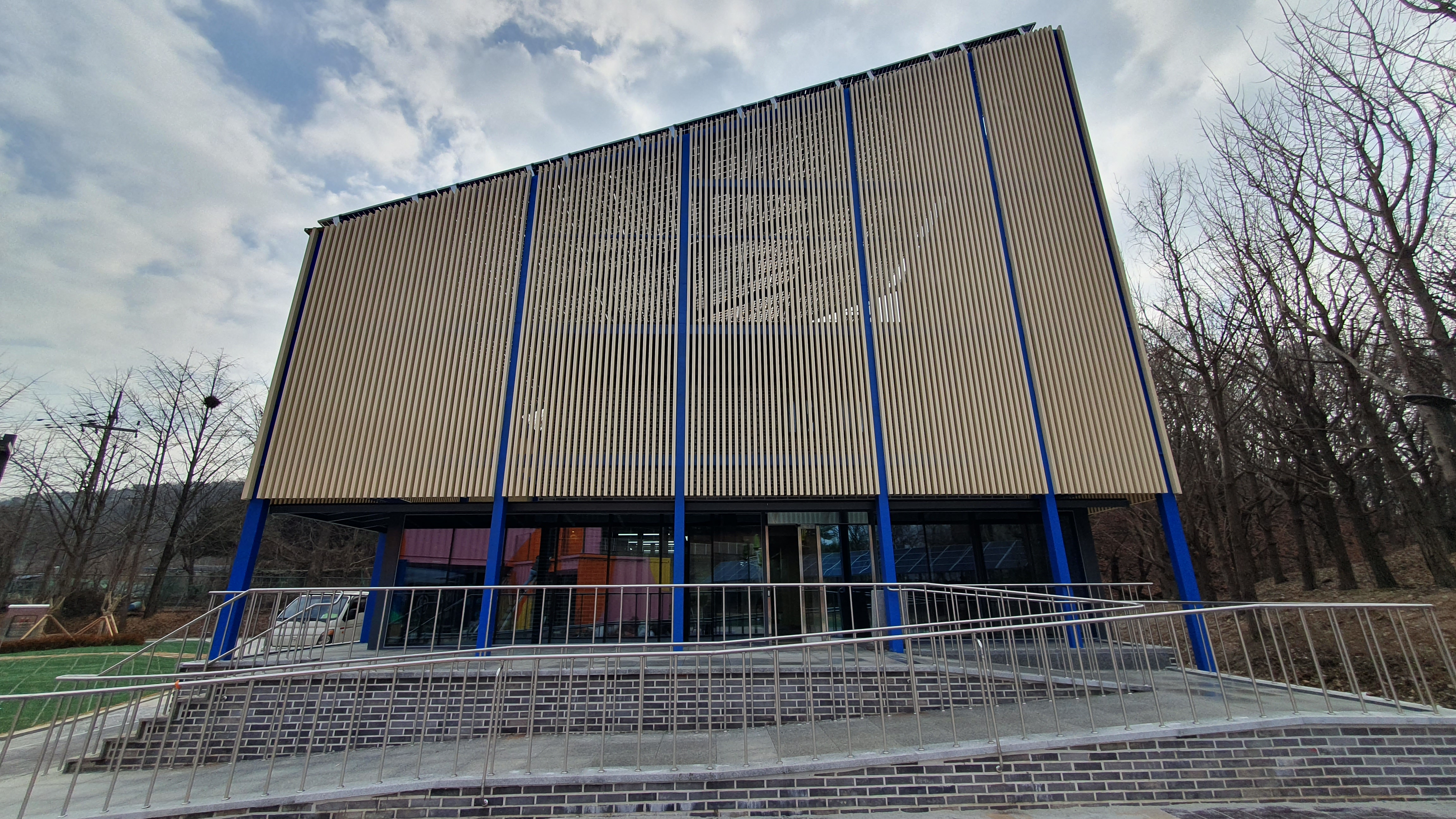 2024,01,04/ #도시기록 #안양 #똥골 #기후변화체험교육센터 #그린마루 / 안양시가 기후 및 환경문제에 대한 홍보와 교육 등을 위해 안양 석수동 똥골에 건립 중인 기후변화체험교육센터 '안양그린마루'의 4월 개관을 앞두고 막바지 공사가 한창이다.
