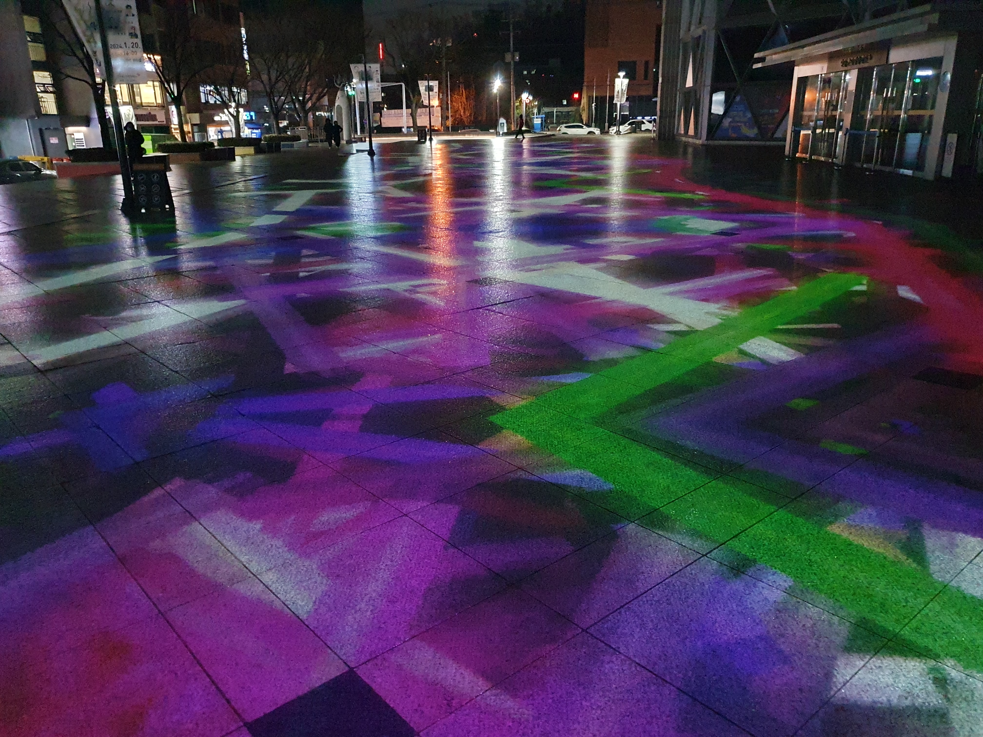 2024.01.06/ #도시기록 #미디어아트 #안양아트센터/ 안양아트센터 광장 바닥을 무대로 펼쳐지는 미디어아트쇼. 2024년 들어 처음보다. 미디어아트쇼는 안양아트센터·명학공원 일대를 새롭게 문화적 명소로 조성하기 위한 사업의 일환으로 지난해 10월 14일부터 시작되어 12월 31일까지 상영하는 것으로 알고 있는데 2024년에도 계속하는듯 싶다. 하기사 투입된 비용이 1억원이 넘는데 본전 뽑기는 커냥 바람만 날린듯싶다. 그런데 오늘도 관객은 나 혼자다. 투입된 비용과 준비 과정을 알기에 미안스럽기도 하다. 당초 사업 목적이 안양아트센터·명학공원 일대를 새롭게 문화적 명소로 조성하기 위한것이니 안양시와 안양믄화예술재단이 적극 나서야 하지 않을까 싶다. 관계자 말에 의하면 영상 콘텐츠를 제작하거나 교체하는 비용이 만만치않단다,