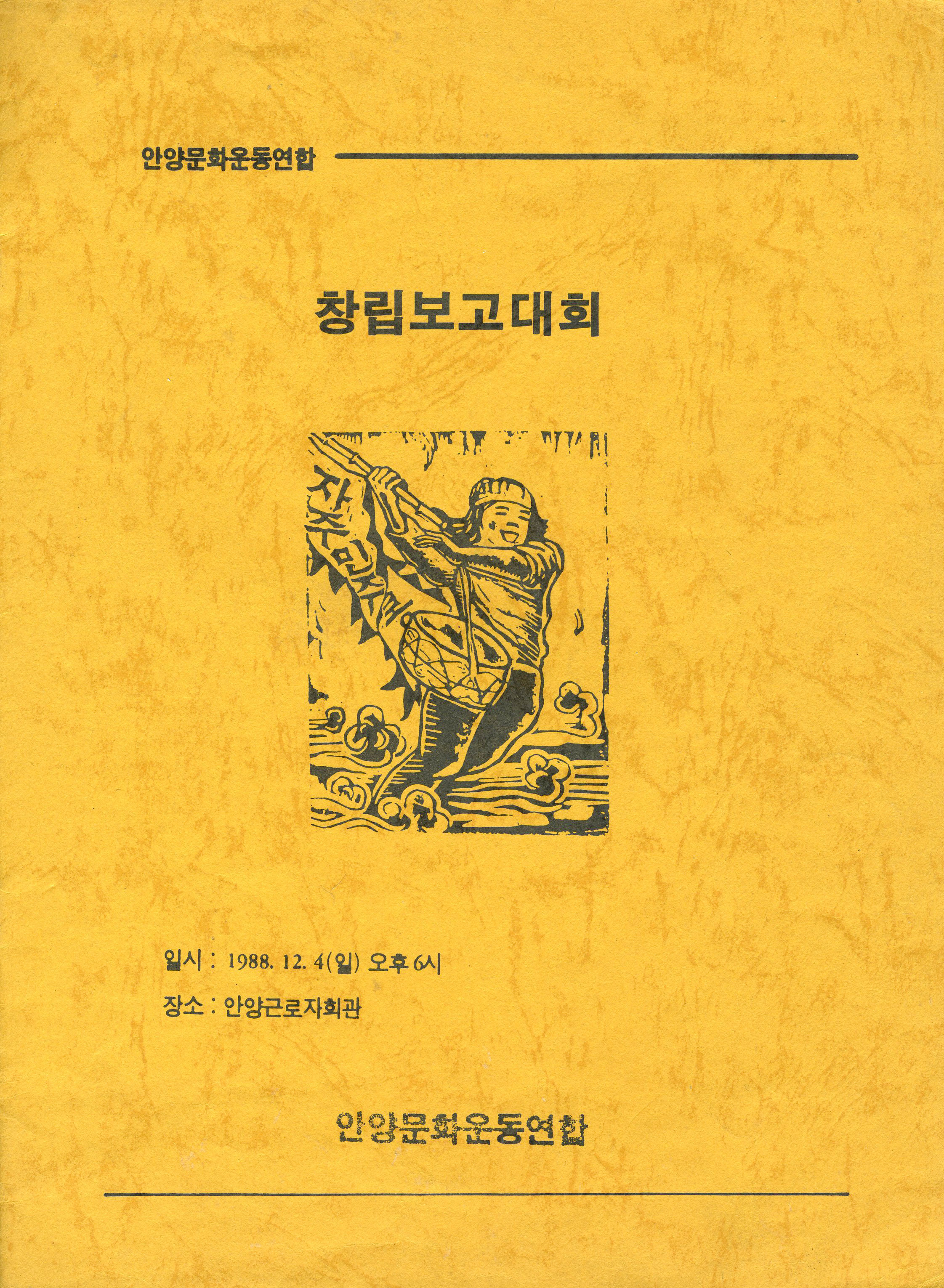 이와 함께 1987년 하반기부터 안양독서회, 안양민요연구회, 우리그림 등의 문화단체가 창립되어 활발한 활동이 시작되면서 1988년에는 이들이 연대체로 결성하여 안양문화운동연합으로 발전하면서 안양권에서의 문화운동을 주도적으로 이끌고 꽃피우는 계기를 만들었다.