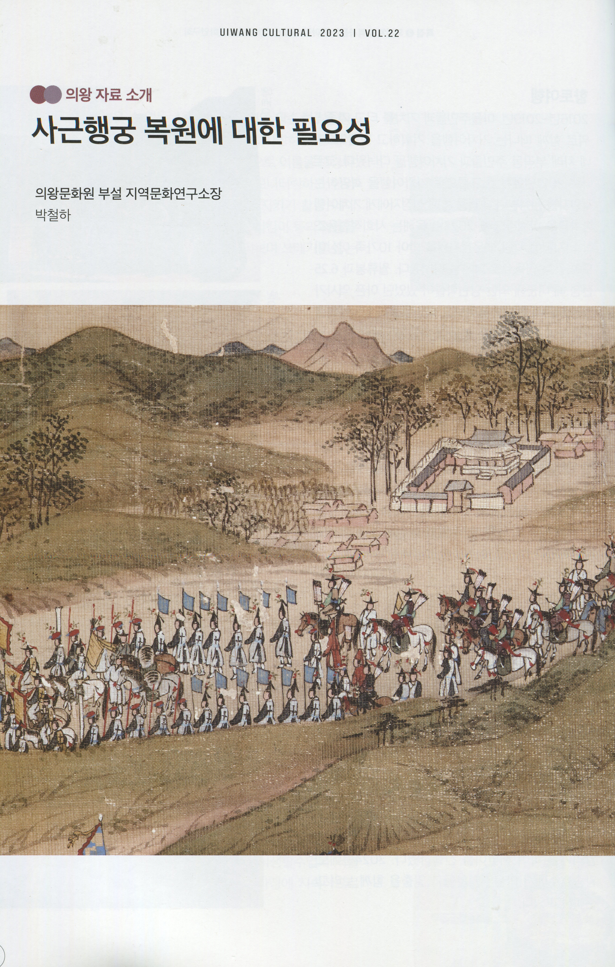 의왕문화원은 이러한 역사적 자료를 근거로 하여 사근행궁을 복원하는 데 앞장서야 할 것입니다. 그리하여 정조의 효와 애민사상 및 국가 수호 정신은 물론 나라의 독립을 위한 의왕시민의 3.1정신을 계승하고 문화유산을 길이 후손에게 남겨줄 수 있기를 간절히 바랍니다.