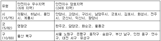 또 226개 기초지자체 중 하위등급(4·5등급)이 없는 30개 지역 중 우수 지역 6개를 제외한 24개 지역을 '안전지수 양호지역'으로 선정했다.