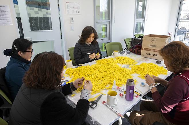 세 자녀를 둔 양승미씨(52)는 2014년 여름부터 서울 광화문광장에서 리본을 만들었다. 한때 피켓을 들고, 특별법 서명도 도왔다. 현재 매주 목요일 ㈔4·16세월호참사 가족협의회에서 안양지역 사람들과 노란리본을 만들며 공간에 온기를 채워주고 있다.