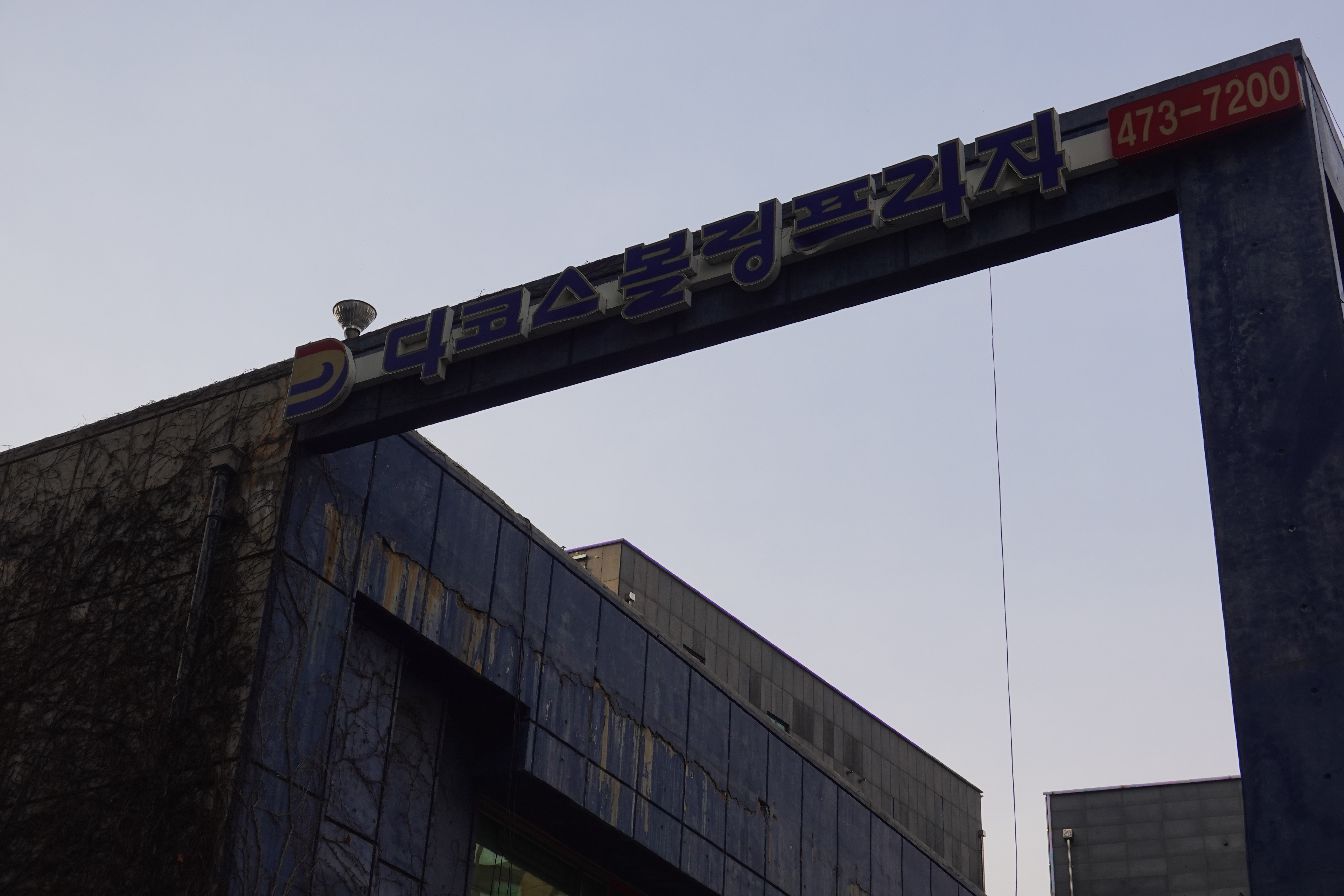 2024.03.04/ #도시기록 #다코스볼링장 #안양 #폐업 #철거/ 사라지는 안양 최초의 볼링장. 안양시 만안구 안양2동 예솔공원 초입(안양시 만안구 경수대로1188번길 18)에 자리한 3층 높이의 이 건물은 볼링장 전용 건물로 90년대 초반 국내에 볼링 열풍이 불 당시인 1993년에 완공해 개업한 다코스 볼링프라자(대표 마종호)이다. 개장 초기 안양유원지(안양예술공원)를 찾는 관광객들로부터 입소문을 타며 비수기에도 서울에서 볼링하러 내려올 정도로 유명했던 곳이다. 이후 식어진 볼링 열기와 IMF로 인해 경영난을 겪으면서도 사업주가 바뀌지 않은 채 그대로 유지되었으나 2023년 무렵 문을 닫더니 결국 철거를 앞두고 있다. 이건물의 또다른 명물은 담쟁이넝굴이었다. 3층 높이 콘크리트 외벽을 짙푸른 담쟁이넝굴이 뒤덮어 마치 거대한 초록색 벽화를 보는 듯 착각을 할 만큼 지나가는 나그네들의 눈길을 사로잡으며 색다른 볼거리를 제공했다.