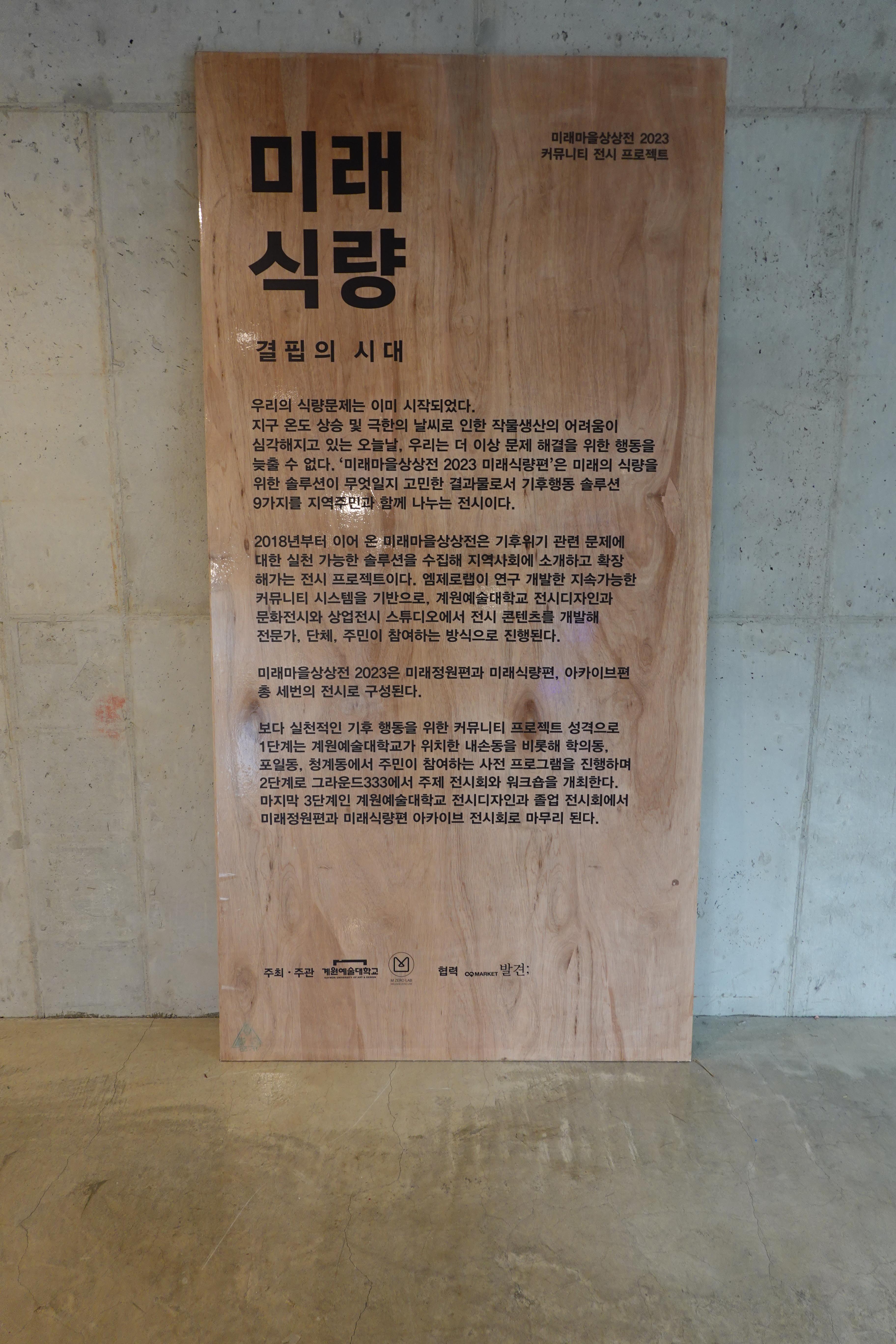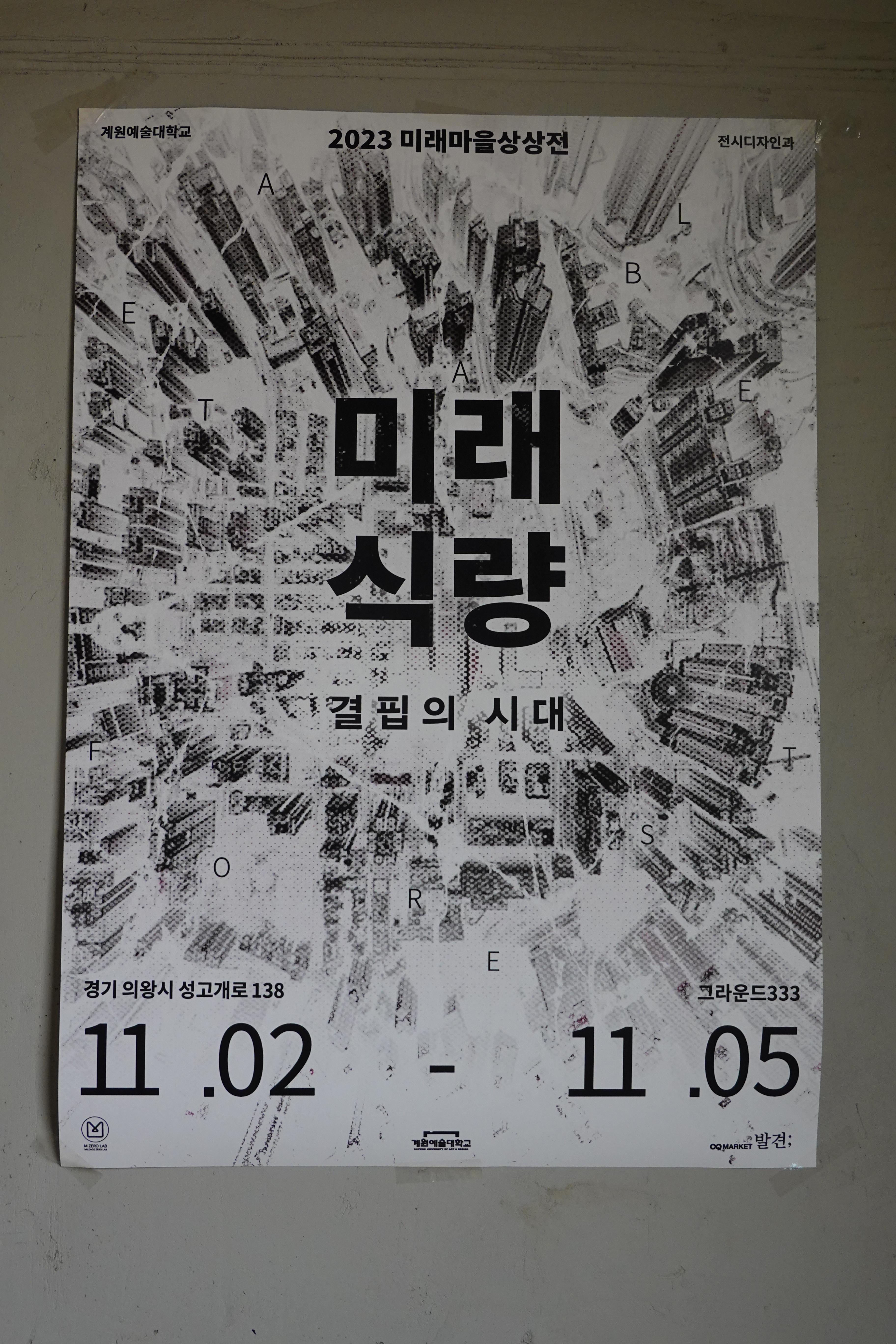지난 2023년 11월 4일 마켓발견이 있는 건물 GROUND333에서 게원예술대학이 마켓발견과 협력으로 친환경 전시 2023 미래마을 상상전-미래식량, 친환경 플리마켓, THE FULLEST 마켓이 열렸을때 처음 가보았는데 아주 흥미롭고 재미있고, 볼거리 많은 공간이다.