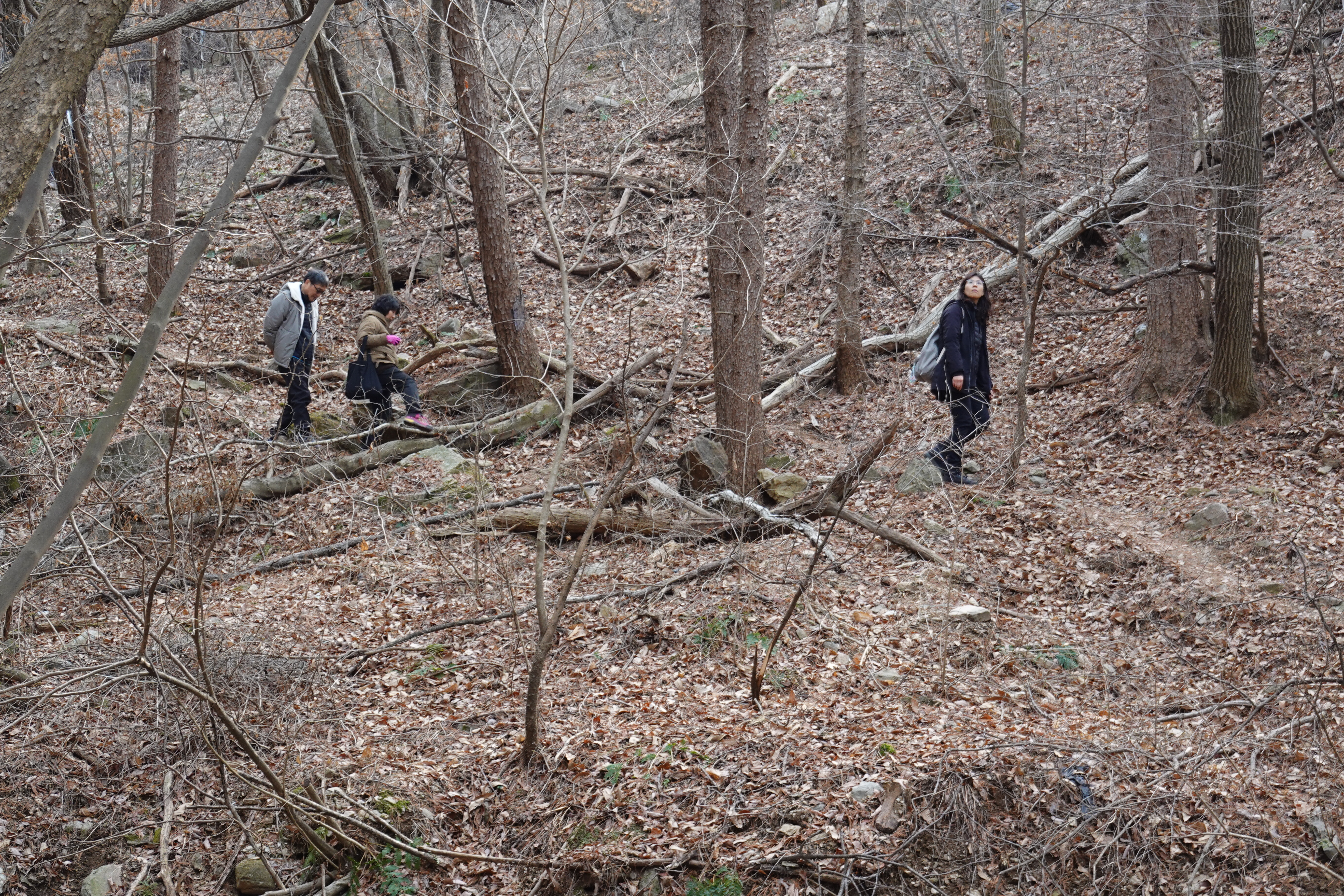 2024.03.11/ #기록 #변산바람꽃 #안양 #수리산 #경기도립공원/ 안양 수리산 계곡에 살고있는 변산아씨들을 만나다. 안양시지속가능발전협의회 생태전환위원회 주관으로 변산바람꽃 자생지 실태 조사 및 보호운동을 실시하던날. 자생지 면적이 수년전보다 엄청 줄었으나 개체수가 작년보다는 좀더 보였다. 바람꽃은 맨 처음 봄을 알리는 야생화이다. 겨울의 끝자락에 돌과 낙엽 틈새를 비집고 올라와 차다찬 바람에도 가녀린 몸을 지탱하고 수줍은 듯한 모습으로 반겨주는 아씨들이 앙증맞기만하다. 그런데 어느 누가 만지고 건드렸는지 꽃잎이 떨어져 나가는 등 상처입은 아씨들도 보여 마음이 아프다. 5-6년전까지만해도 수리산이 변산바람꽃 최북단지 였으나 근래 들어 기후변화로 연천, 포천 등 한수 이북에서도에서도 발견되고 있다고한다. 경기도는 변산바람꽃을 보호종으로 지정했다.