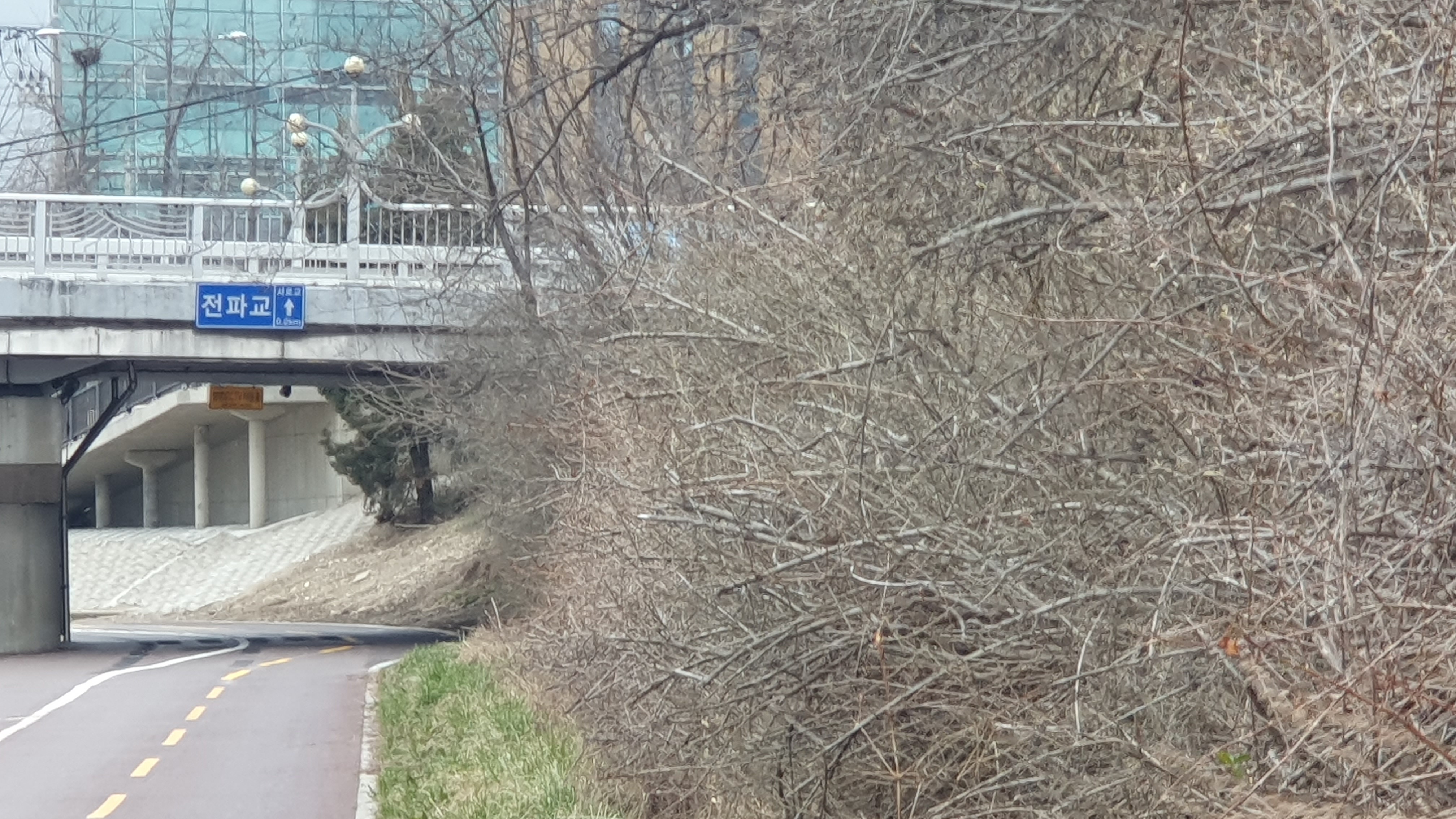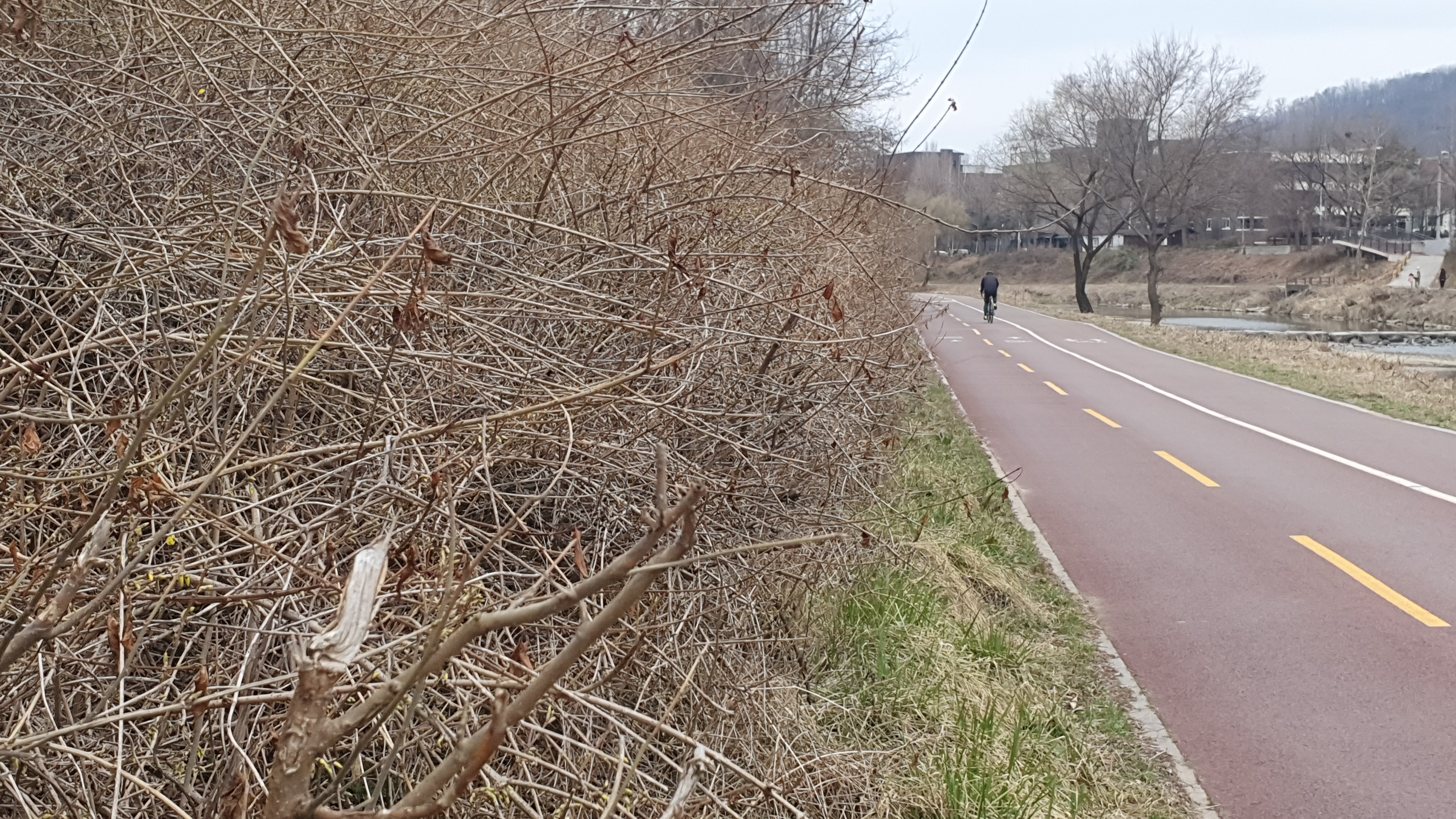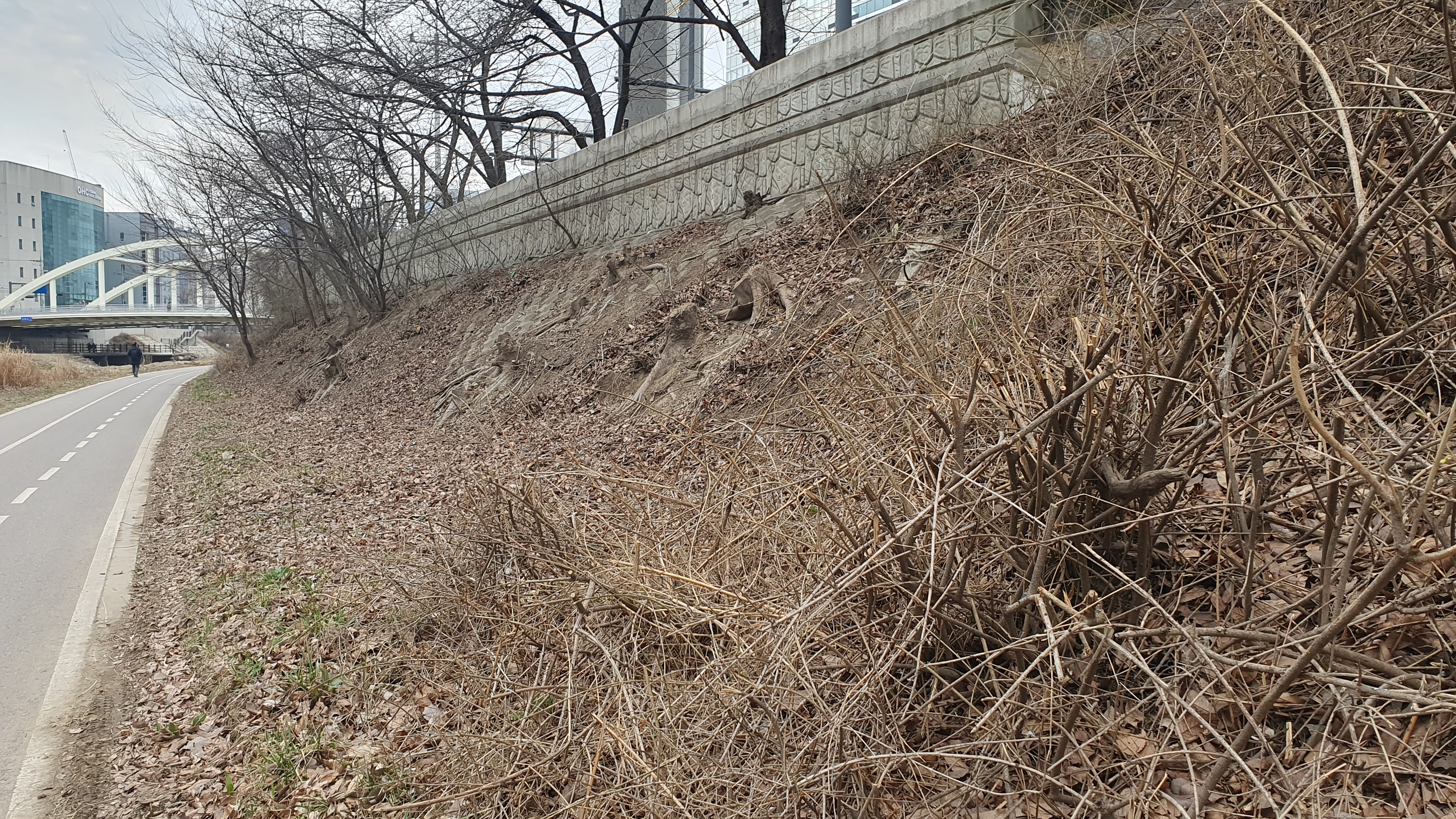 2024.03.16/ #도시기록#봄봄봄#개나리#안양천 / 안양천 덕천교-명학대교 구간 동쪽 산책로 뚝방에 노란 개나리가 모습을 보이기 시작했다. 하지만 안타깝게도 반대편인 안양천 서쪽 산책로(명학대교-덕천교 구간) 뚝방의 개나리 군락지를 나무 밑둥까지 베어버려 앞으로 수년간 예쁜 모습을 보기 어려울듯 싶다. 개나리꽃은 안양시를 대표하는 시화(꽃)다. 안양시장은 안양시를 상징하는 개나리 군락지를 베도록 지시하고 관련있는 관계공무원을 문책하고 대책을 마련하라!!!