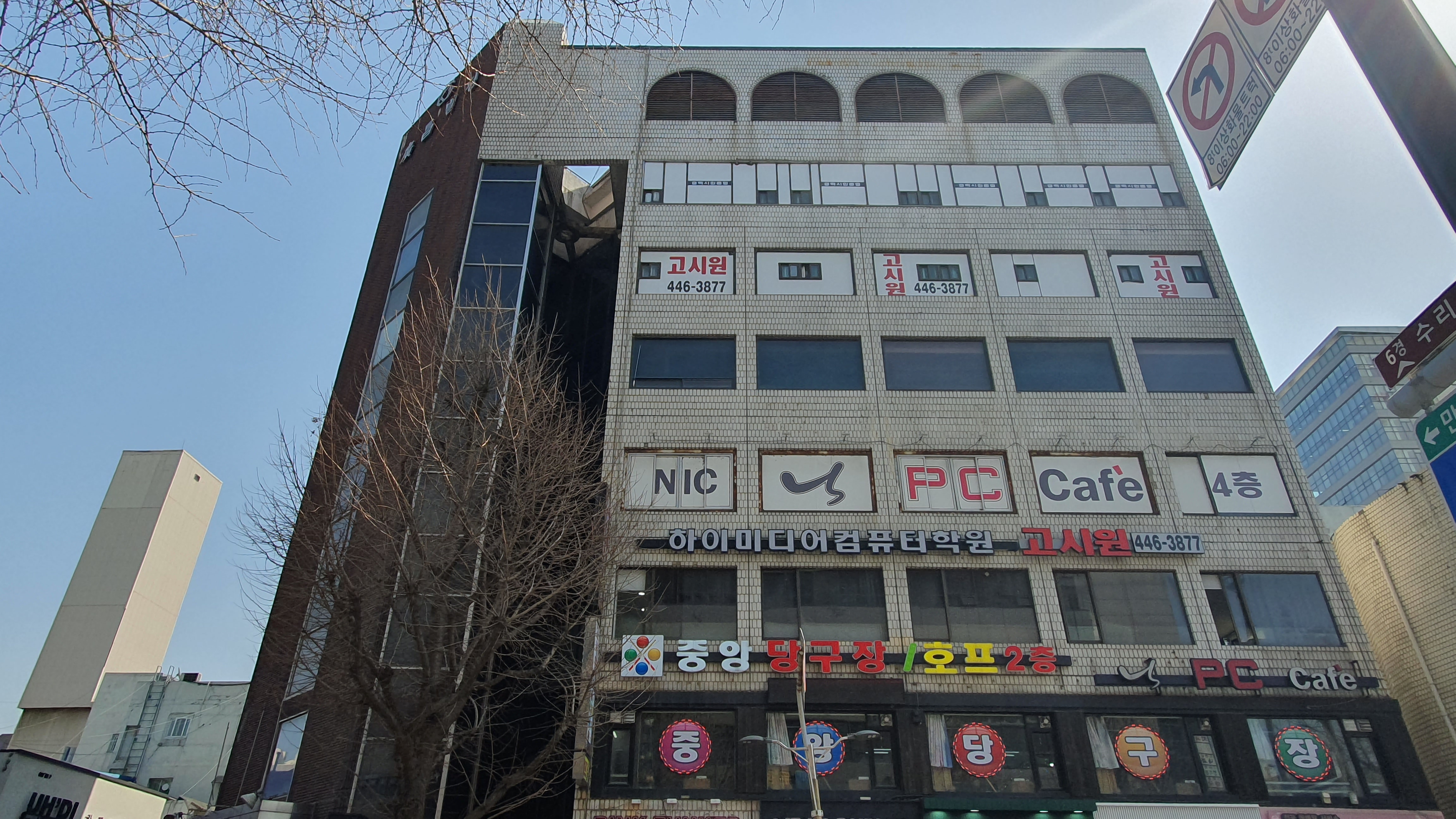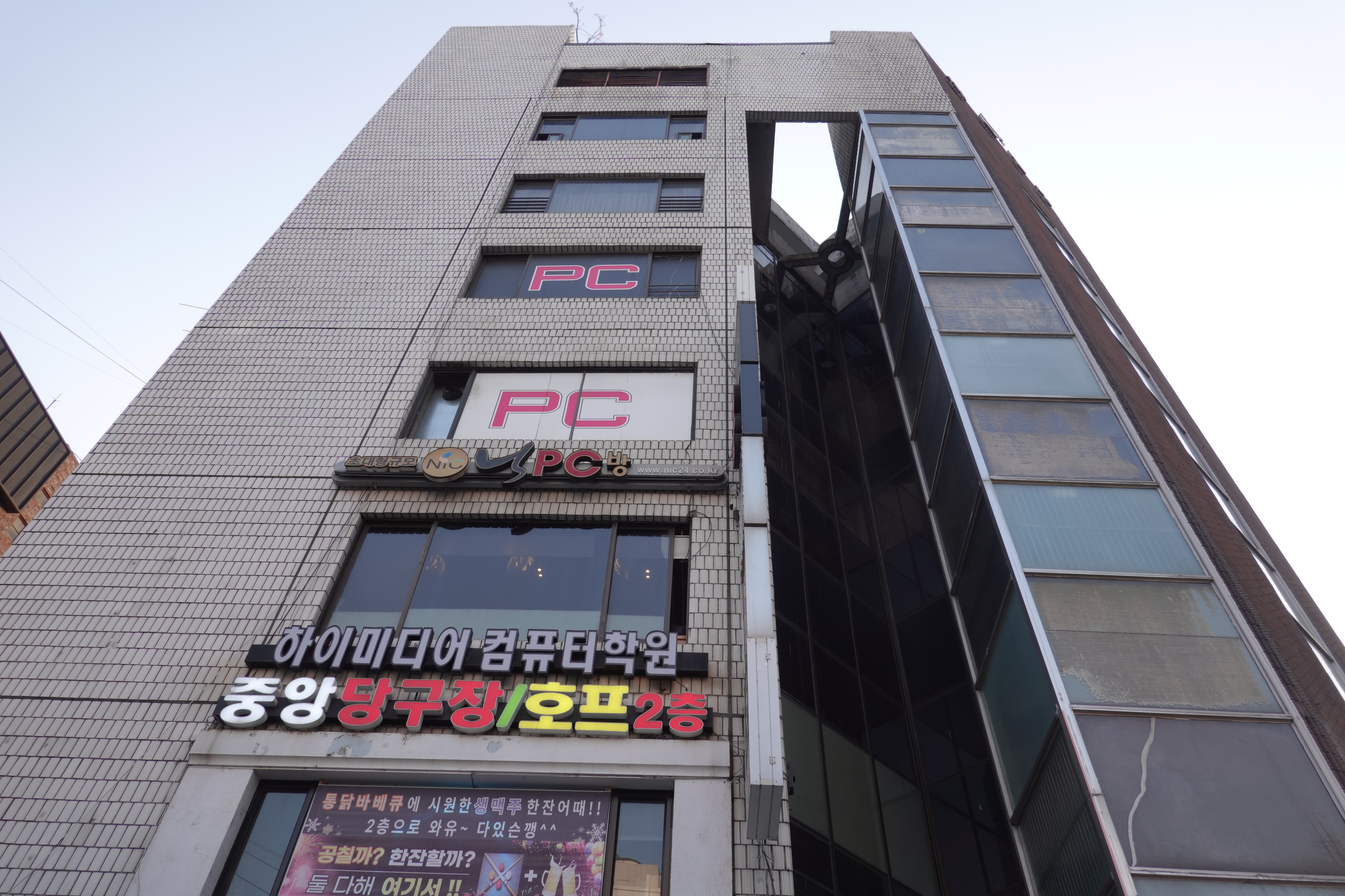 2024.03.18/ 도시기록 #안양#광창빌딩#안양목욕탕/ 안양일번가에 자리한 1986.8월 준공된 광창빌딩. 이곳은 1960년대 안양읍내에 단 하나밖에 없던 안양목욕탕이 있던 곳이다. 안양목욕탕의 천장은 나무골조로 지어졌는데 욕탕의 수증기가 빠져나갈 수 있도록 구멍이 숭숭 뚫린 격자무늬의 나무틀이 있었다. 1970년까지 운영되던 안양목욕탕은 1983년 광창빌딩이 짓고 난 이후에도 살내에서 1990년대 중반까지 운영되다 문을 닫았는데 지금도 건물 옥상에는 목욕탕 굴뚝이 남아있다.