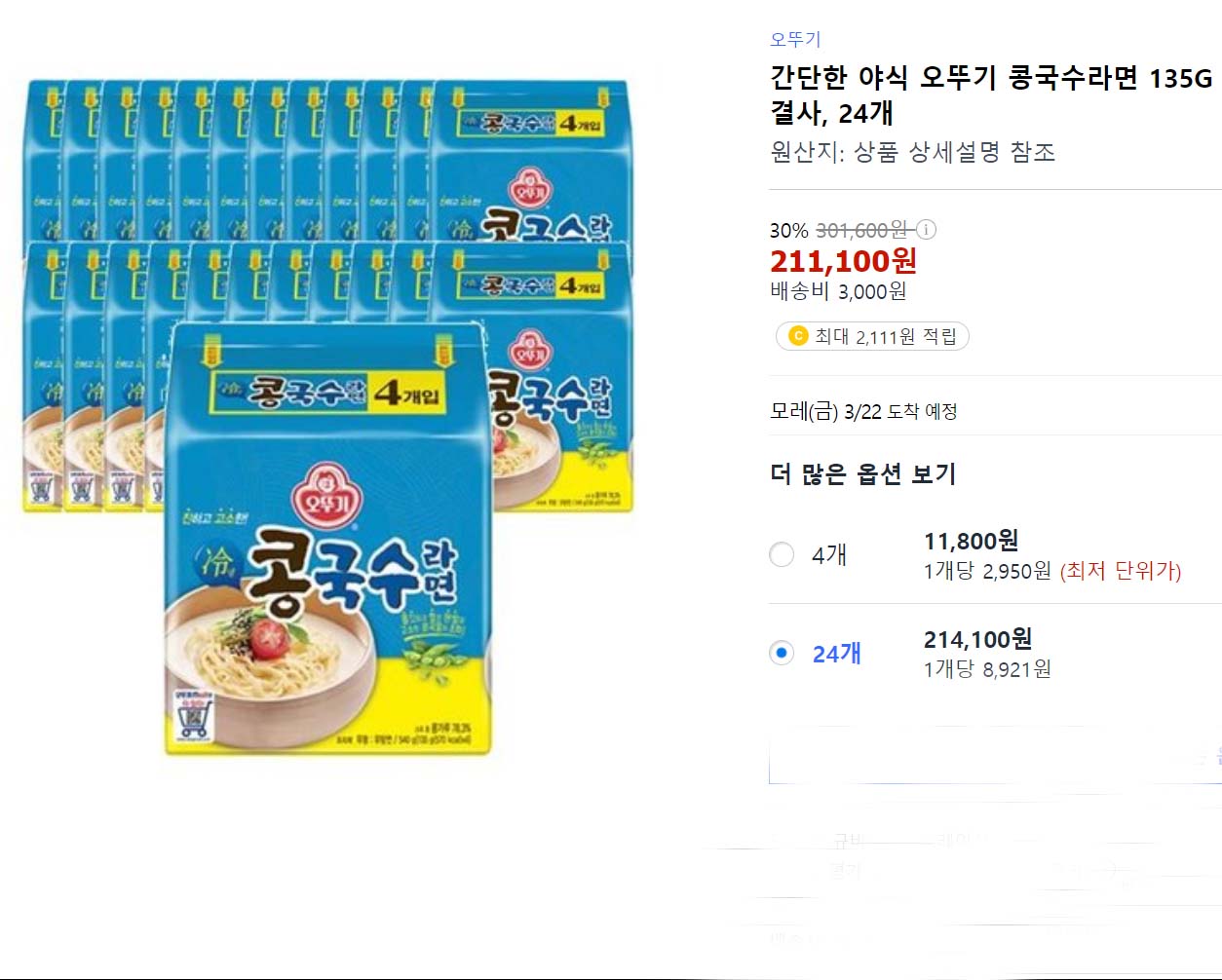 2024.03.20/ #콩국수라면 #오뚜기 #품절/ 오뚜기에서 만드는 콩국수라면. 야식용 해장용으로 좋아 즐겨 먹는 라면. 그런데 슈퍼나 대형마트에서 구입할수 없다.제품 자체를 찾아볼수 없다. 쿠팡등 온라인 쇼핑몰을 검색해보니 물건이 표기되어 있는데 4개들이 1봉에 1.1만원에서 4봉에 수십만원까지도 한다. 무언가 잘못됐다. 다시 자세한 내용을 찾아보니 퓸귀.단종 등 많은 글들이 있다.