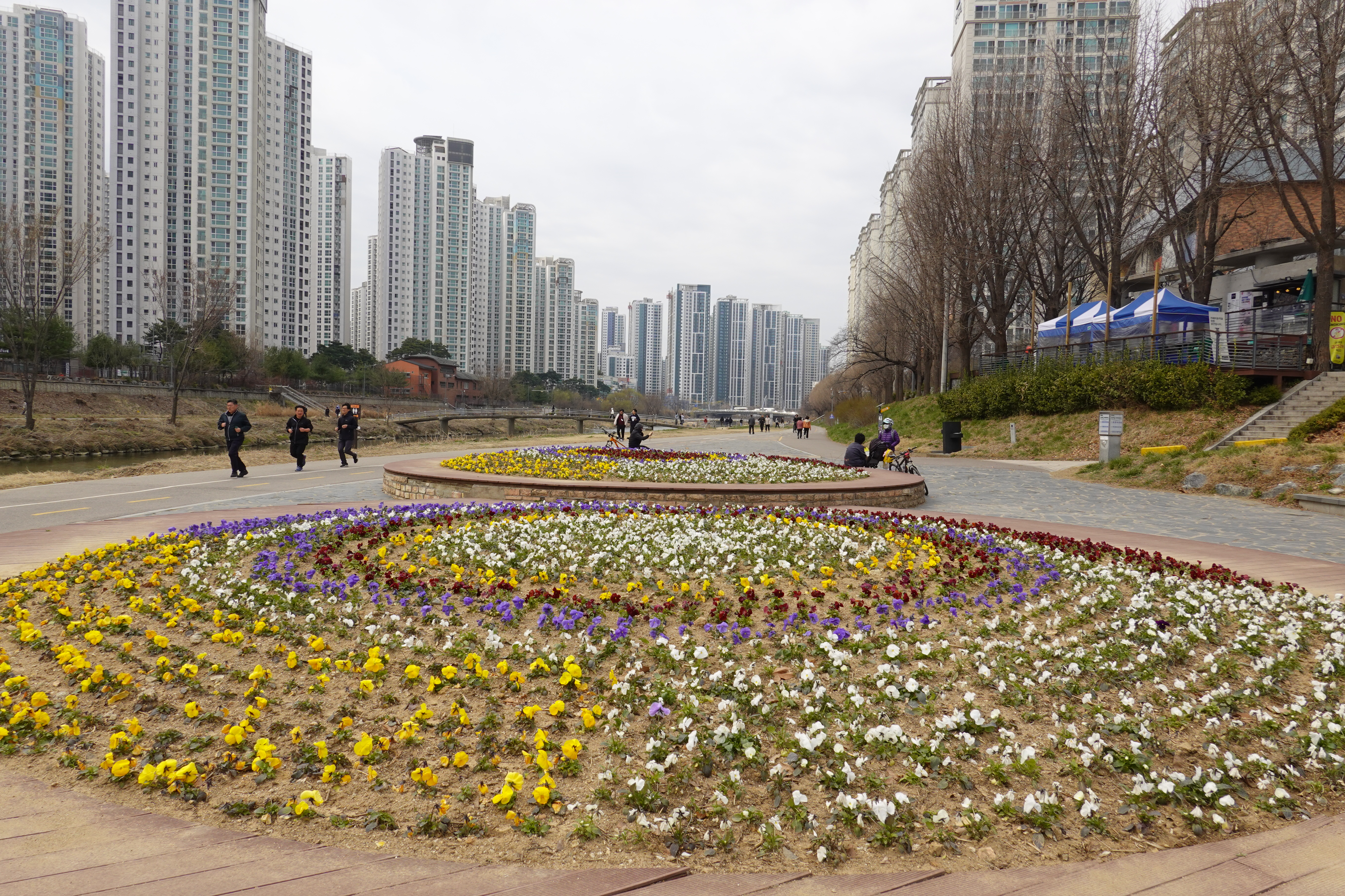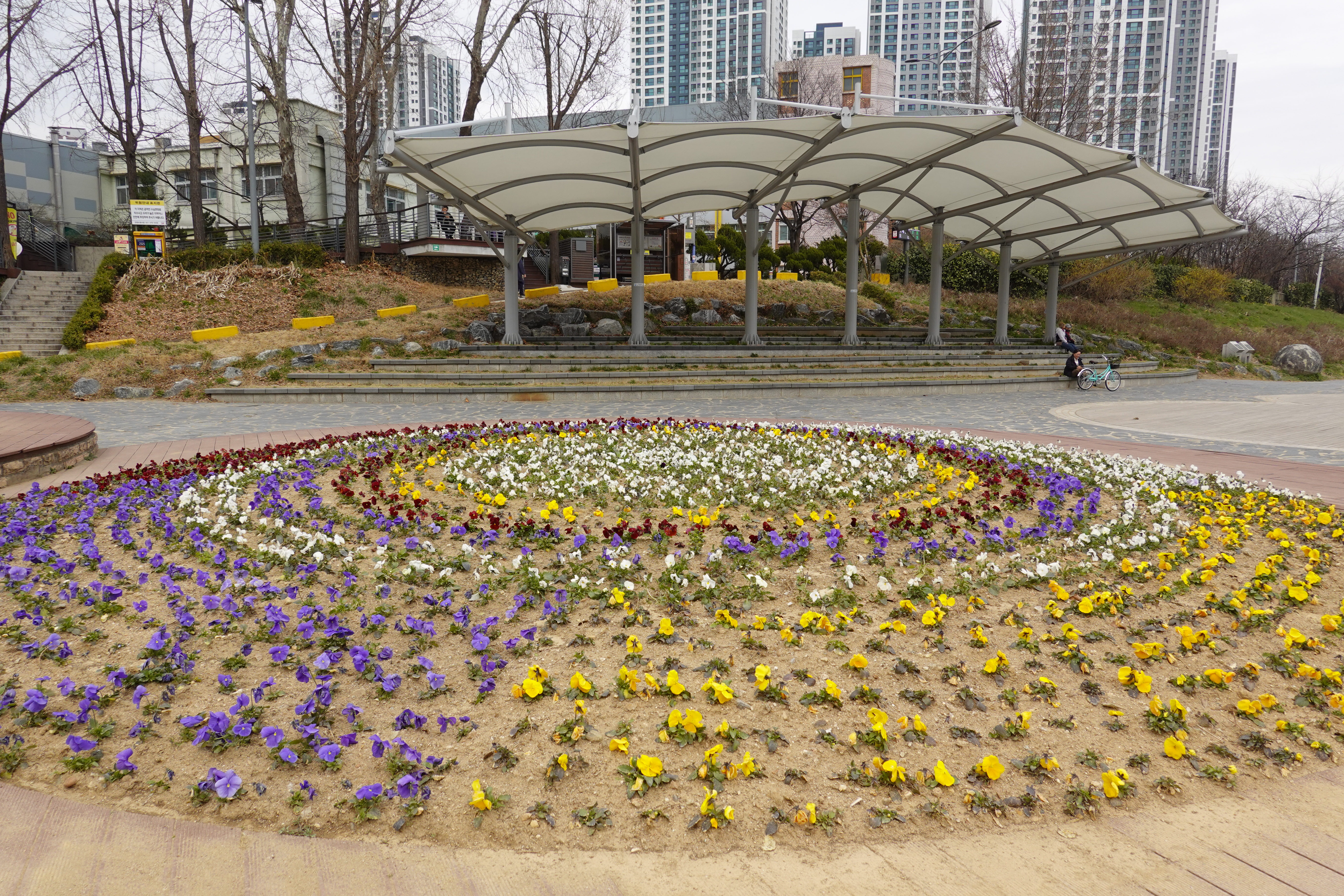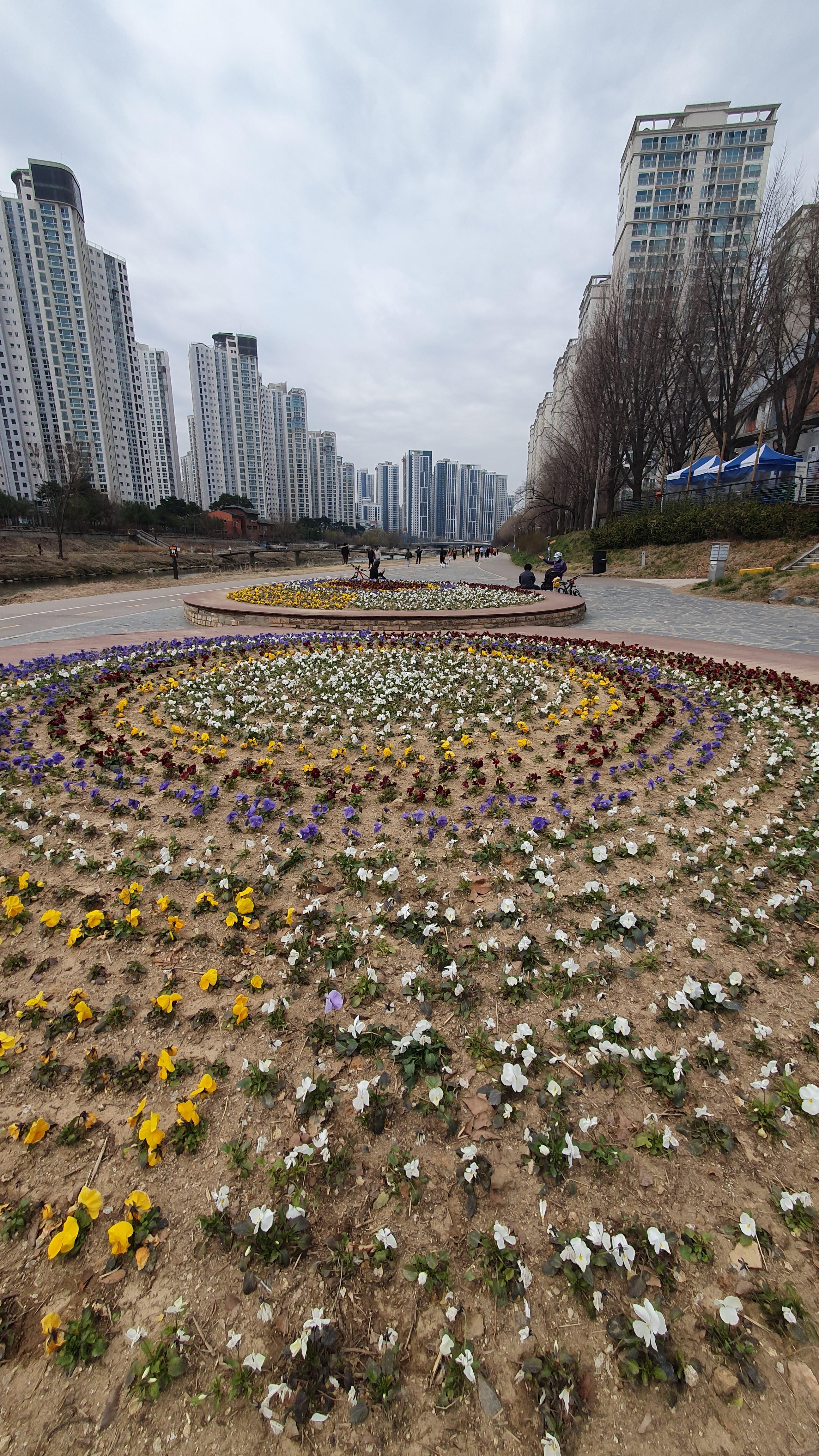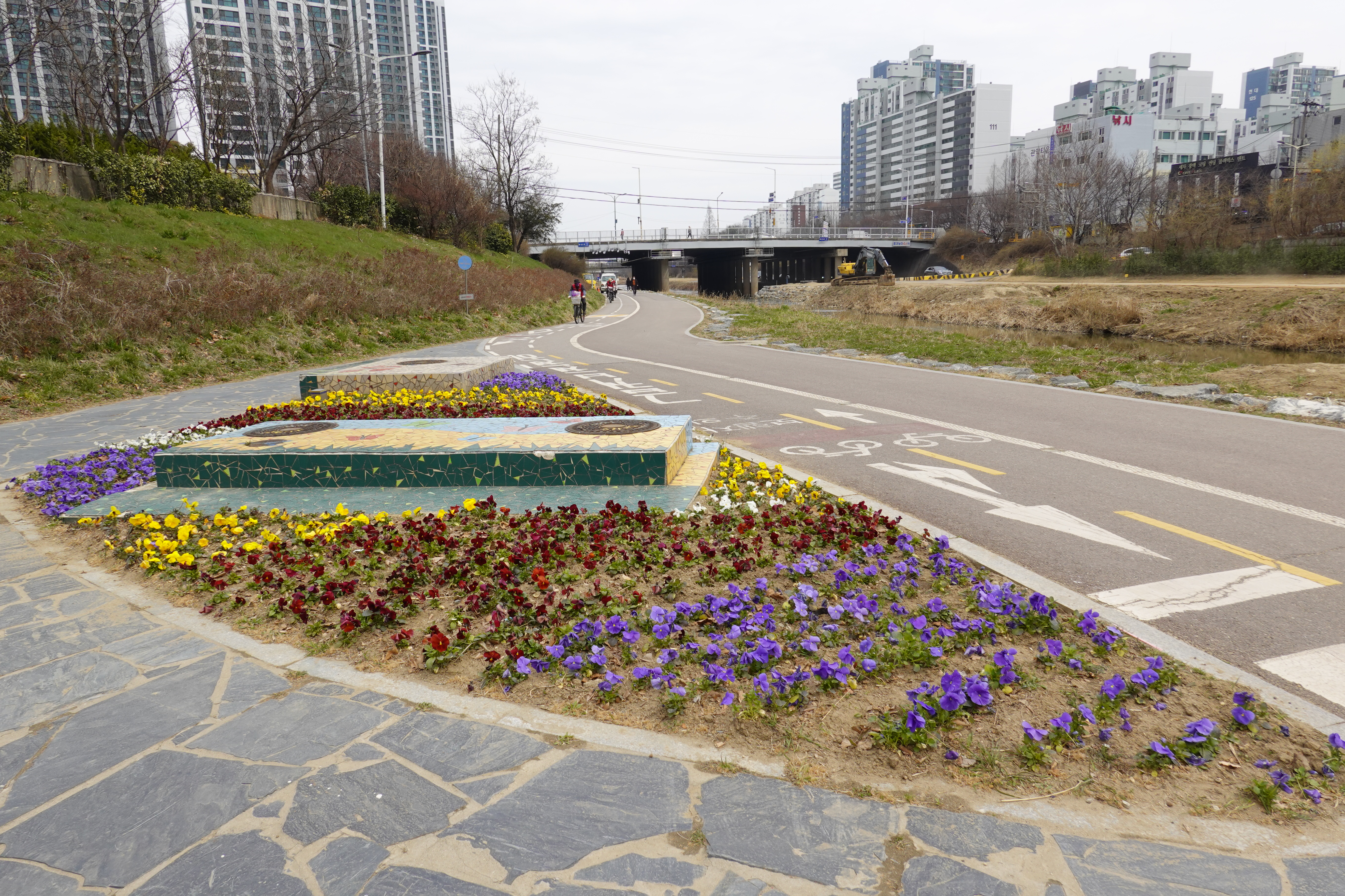 2024.03.22/ #도시기록 #안양 #쌍개울 #문화광장 #안양천/ 여름철 수해시 꽃밭은 물론 바닥 타일까지 다 휩쓸고 가면서 파괴를 하는데도 다시 반복되는 쌍개울 화단 만들기 공사.