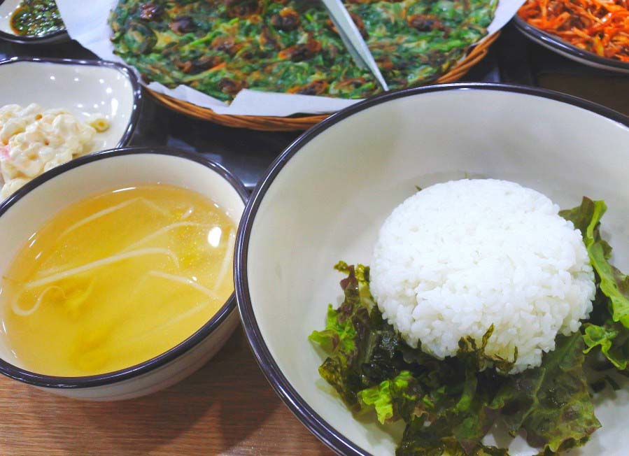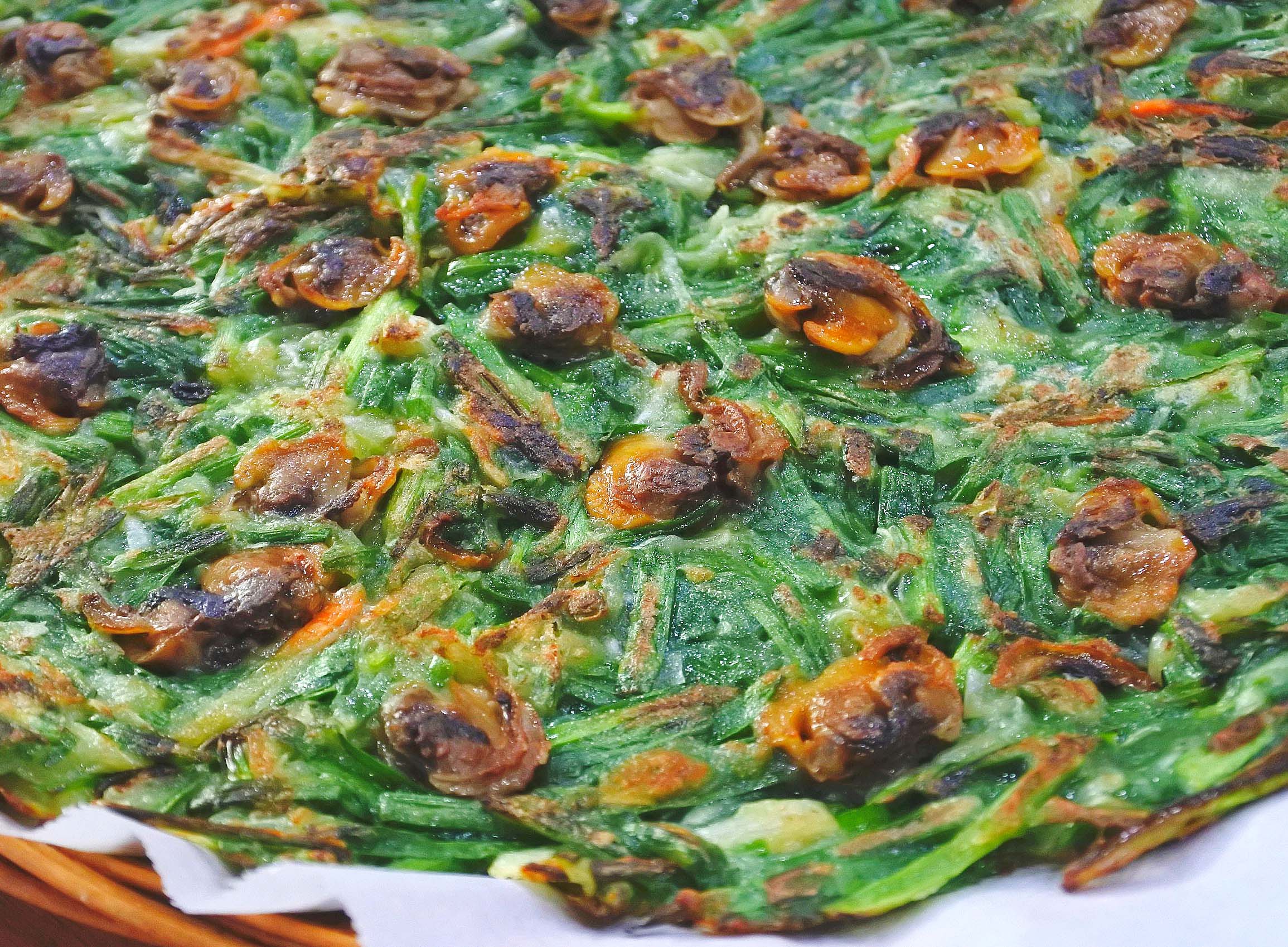 꼬막비빔밥과 함께 막걸리 한잔 하기 위해 꼬막전도 많이 주문한다. 꼬막이 듬뿍 들어간 꼬막전은 꼬막의 쫄깃하면서도 살아있는 식감과 부침가루가 바삭하게 구어진 전의 조화로운 조합으로 맛있다.