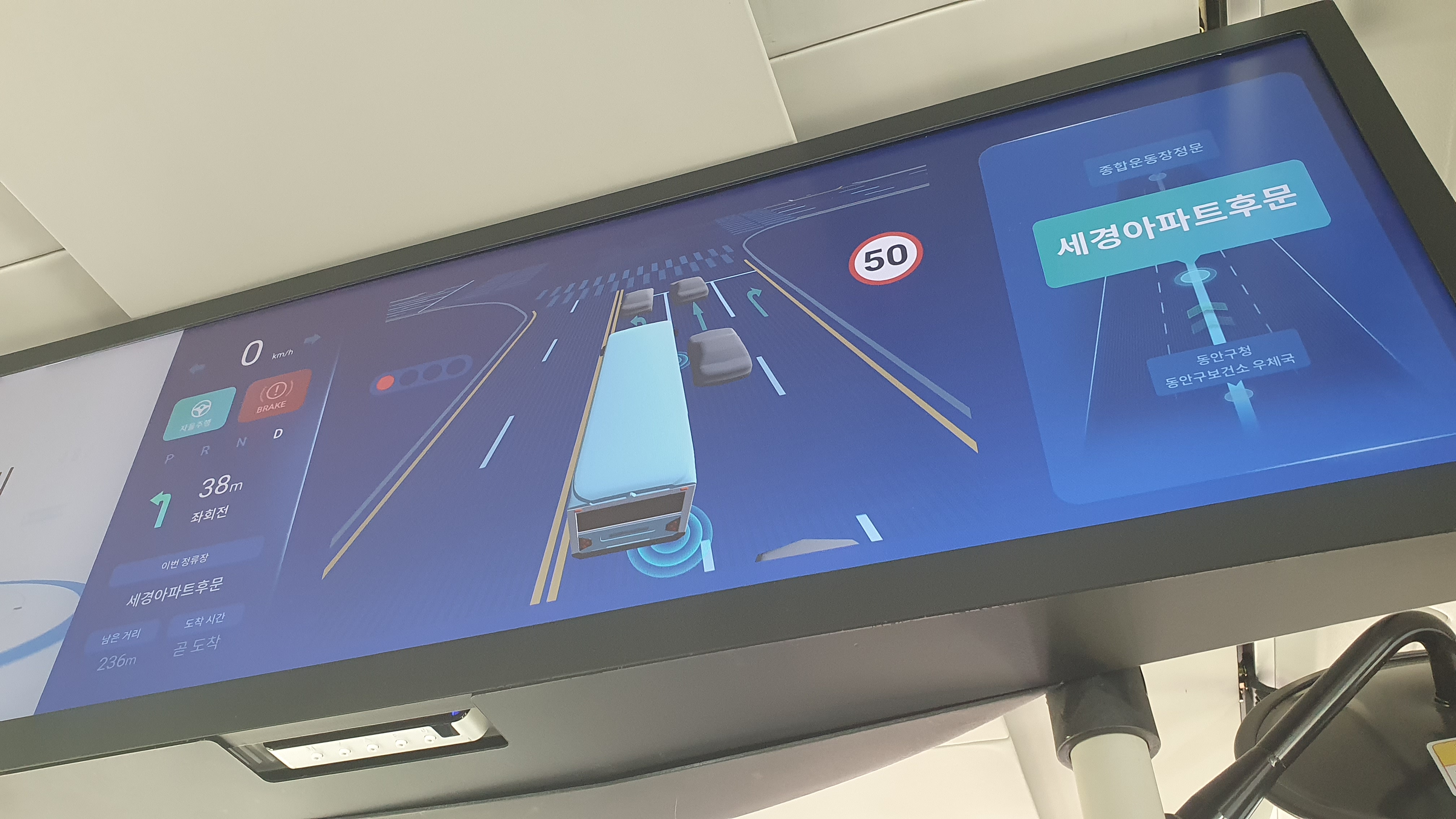 또한 안양시스마트도시통합센터에 주야로 운행정보를 실시간 모니터링을 할 수 있는 관제시스템도 구축했다. 비상상황이 발생했을 경우 경찰서 및 소방서 등 유관기관에 신속하게 상황을 전파하고 대처할 수 있도록 준비도 마쳤다.