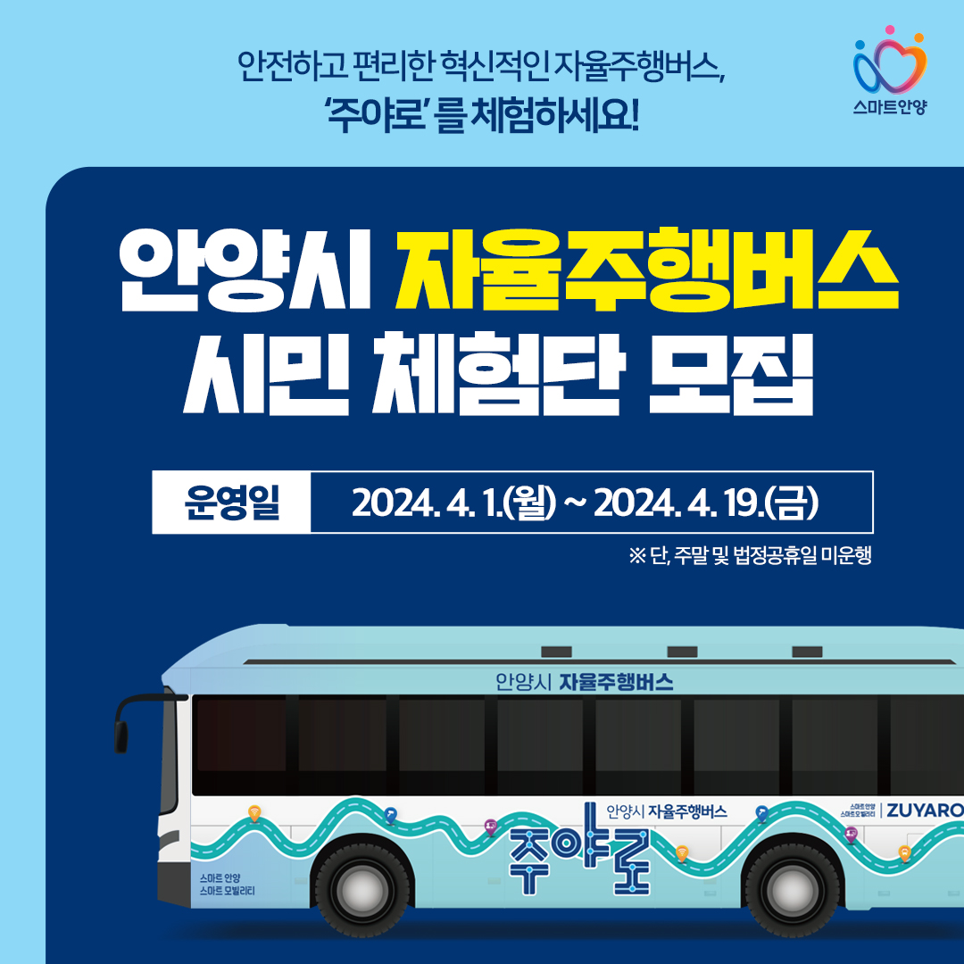 주야로는 안양시가 2022년 시작한 자율주행 시범사업으로 제작한 18인승 버스로 버스 이름 <주야로>에는 △대낮에는 대중교통 사각지대를 △대중교통이 종료되는 심야에는 관내 전철역을 연계한 노선을 운행해 시민 편의를 높인다는 뜻을 담고 있다.