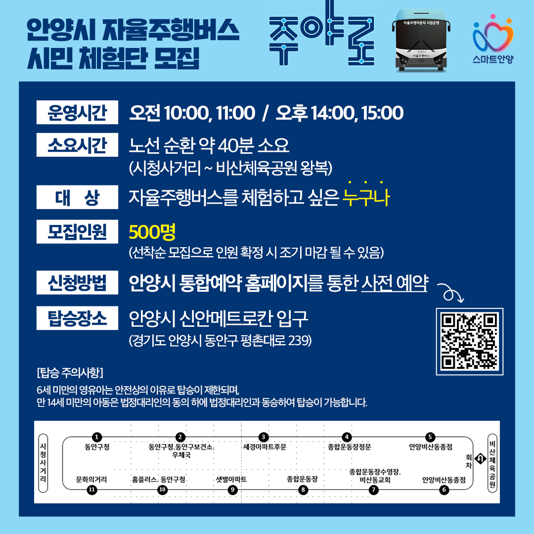 시가 시범운행에 앞서 4월1-19일까지 실시한 시민체험단 모집에 참가를 신청해 지난 9일 범계역~비산체육공원 구간(왕복 6.8㎞, 11개 정류장)에서 운행하는 주야로에 탑승해보았다.