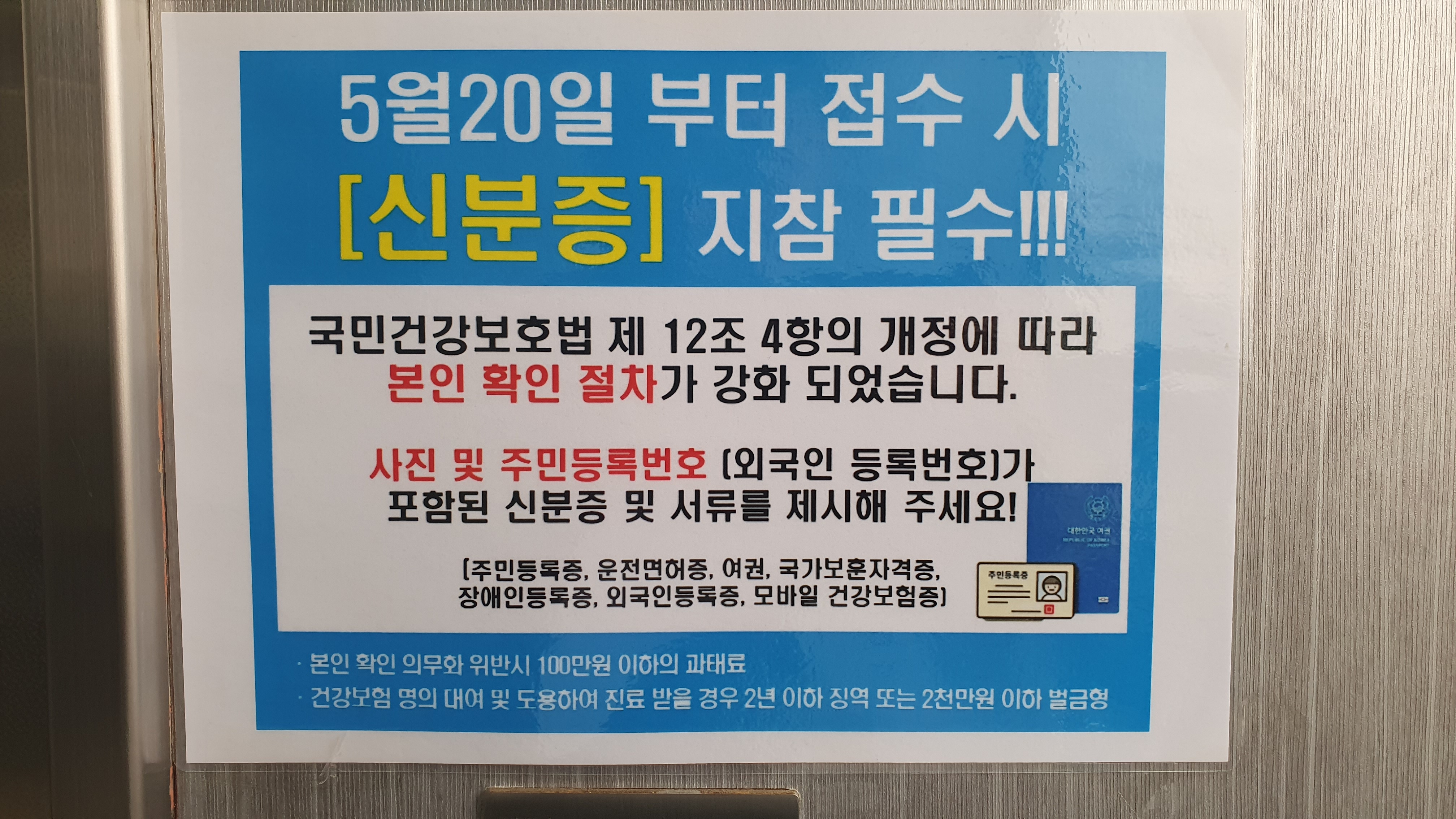 오는 5월 20일부터는 병의원에 진료를 받으러 갈 때 반드시 신분증을 지참해야 한다. 초진 재진 모두 적용된다.