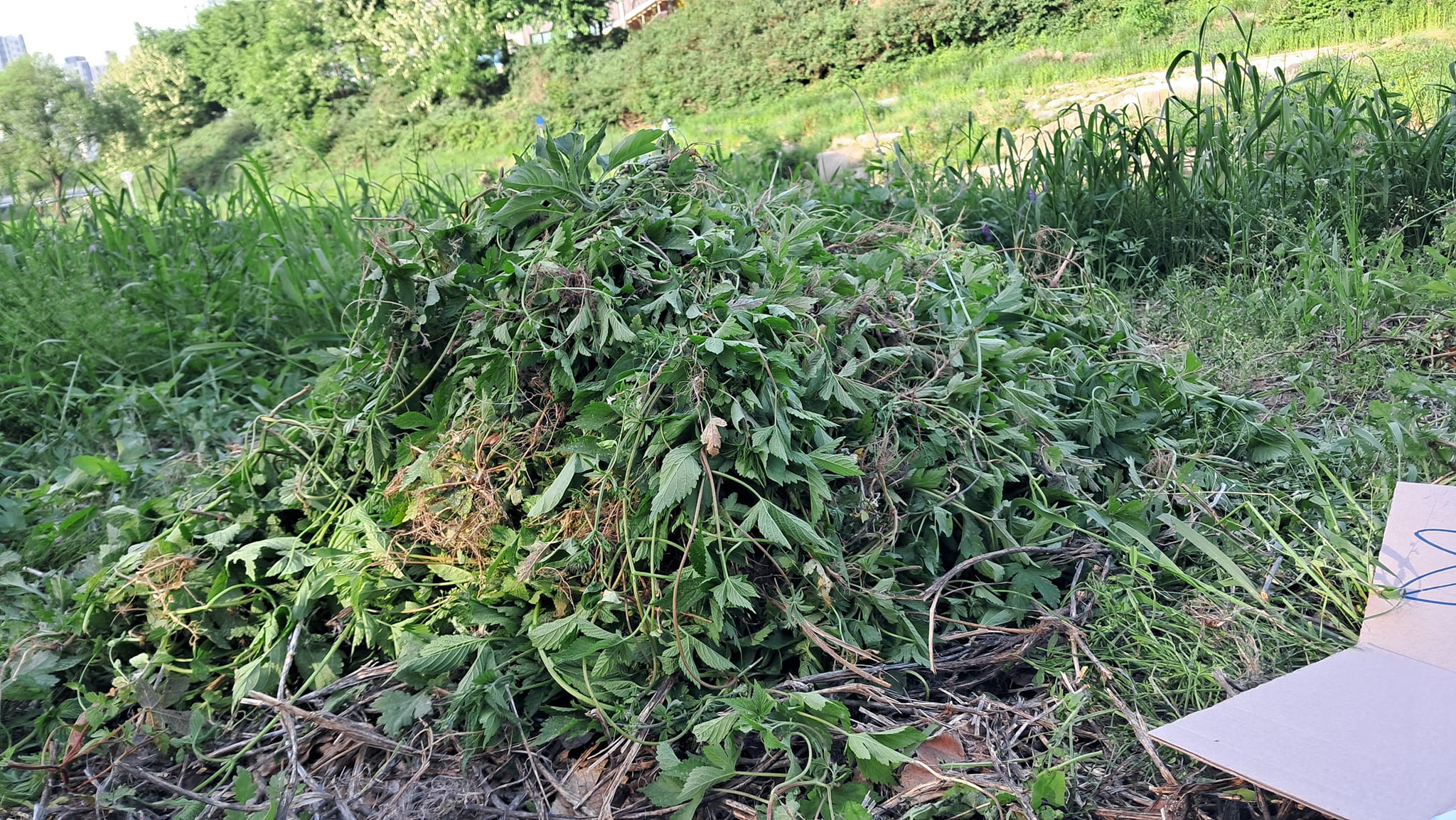 20924.05.10/ #도시기록 #안양 #안양천 #생태교란식물/ 안양군포의왕환경운동연합(이하 환경련)에서 안양천(우리나라 생태계)을 위협하는 단풍잎돼지풀, 가시박, 환감덩굴 등 생태교란식물 제거에 나섰다.