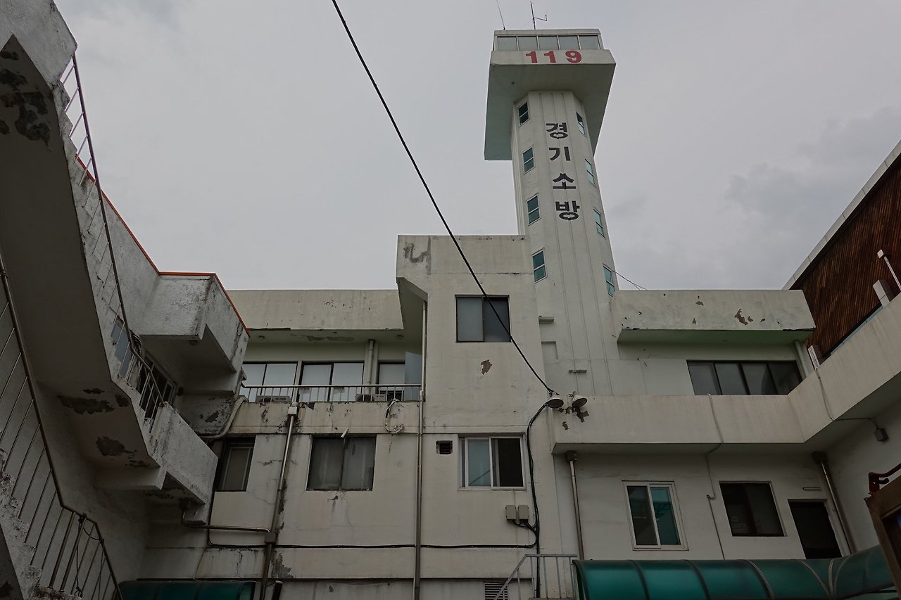 2024.05.10/ #도시기록 #안양 #소방서 #망루 #안양6동 #문화유산 / 안양시 안양6동에 있는 옛 안양소방서(현 안양119치안센터). 1977년 6월에 개서한 건물인데 건물 한쪽에 우뚝 선 타워가 이젠 전국에 단하나 남은 소방 망루로 잘 보존해야 할 근대 문화유산이다.