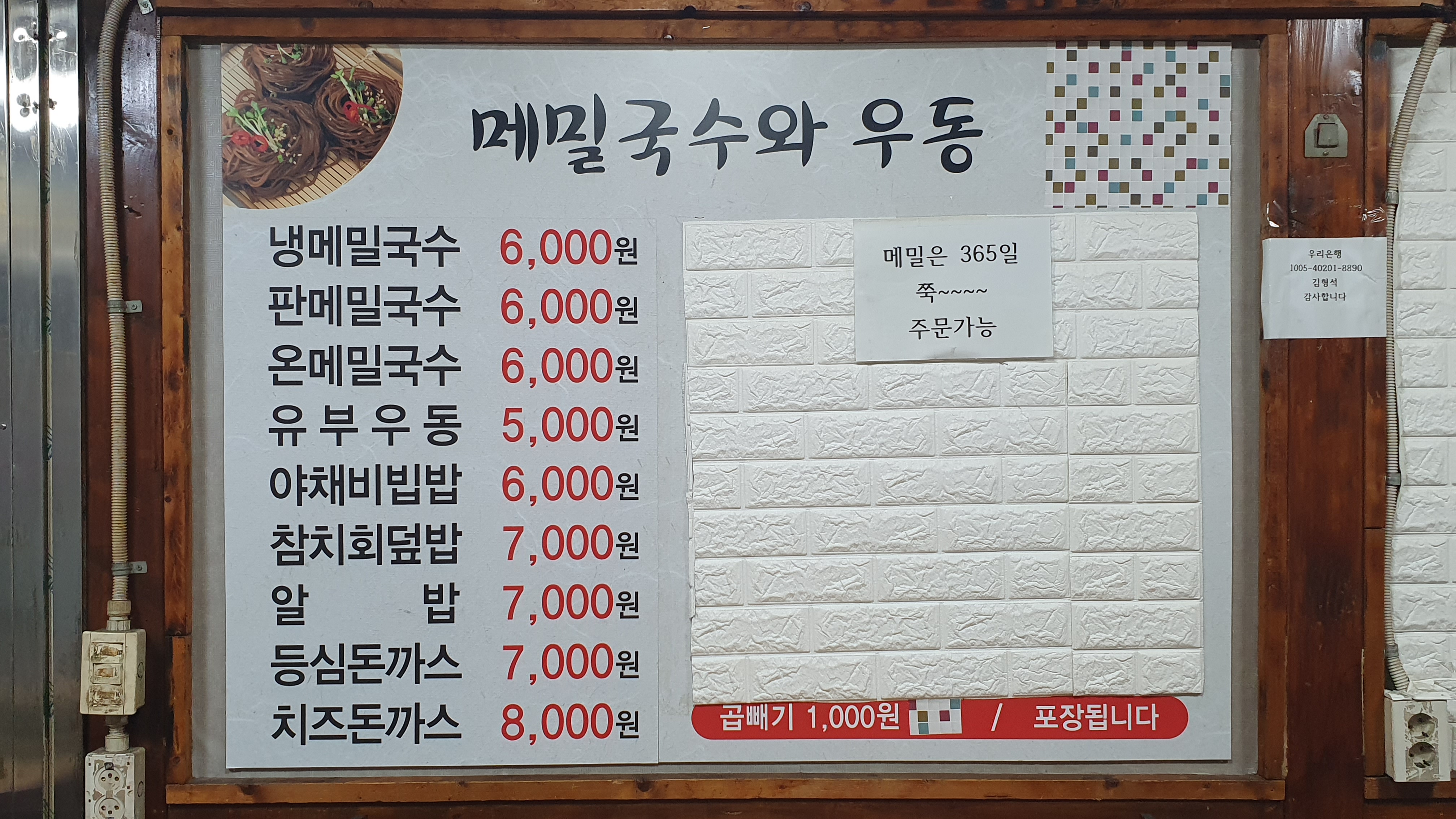 냉메밀, 판메밀, 온메밀 기격이 2018년에 4000원이었는데 지금도 6000원밖에 안합니다.