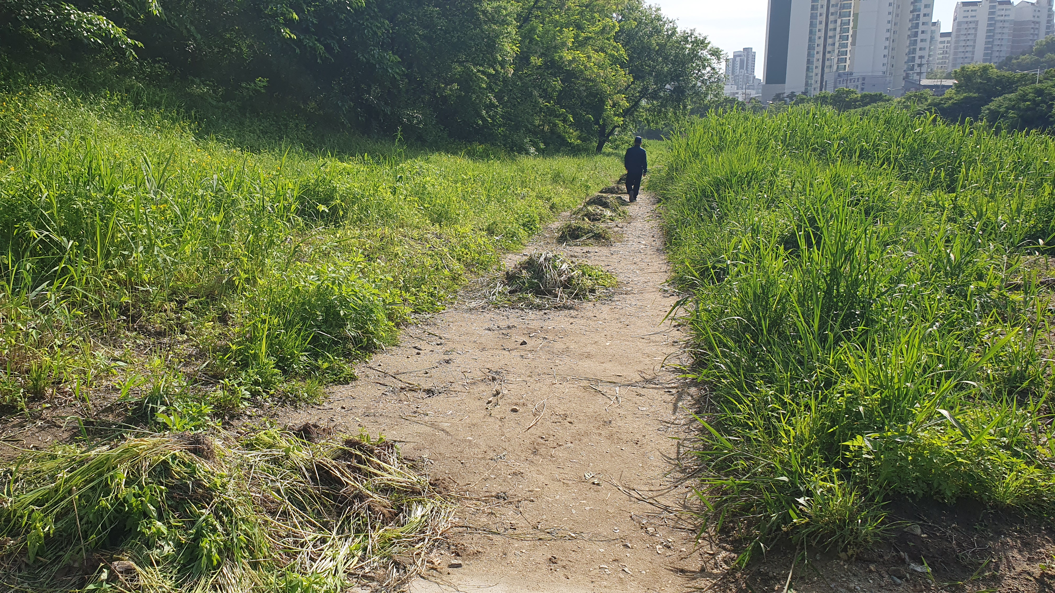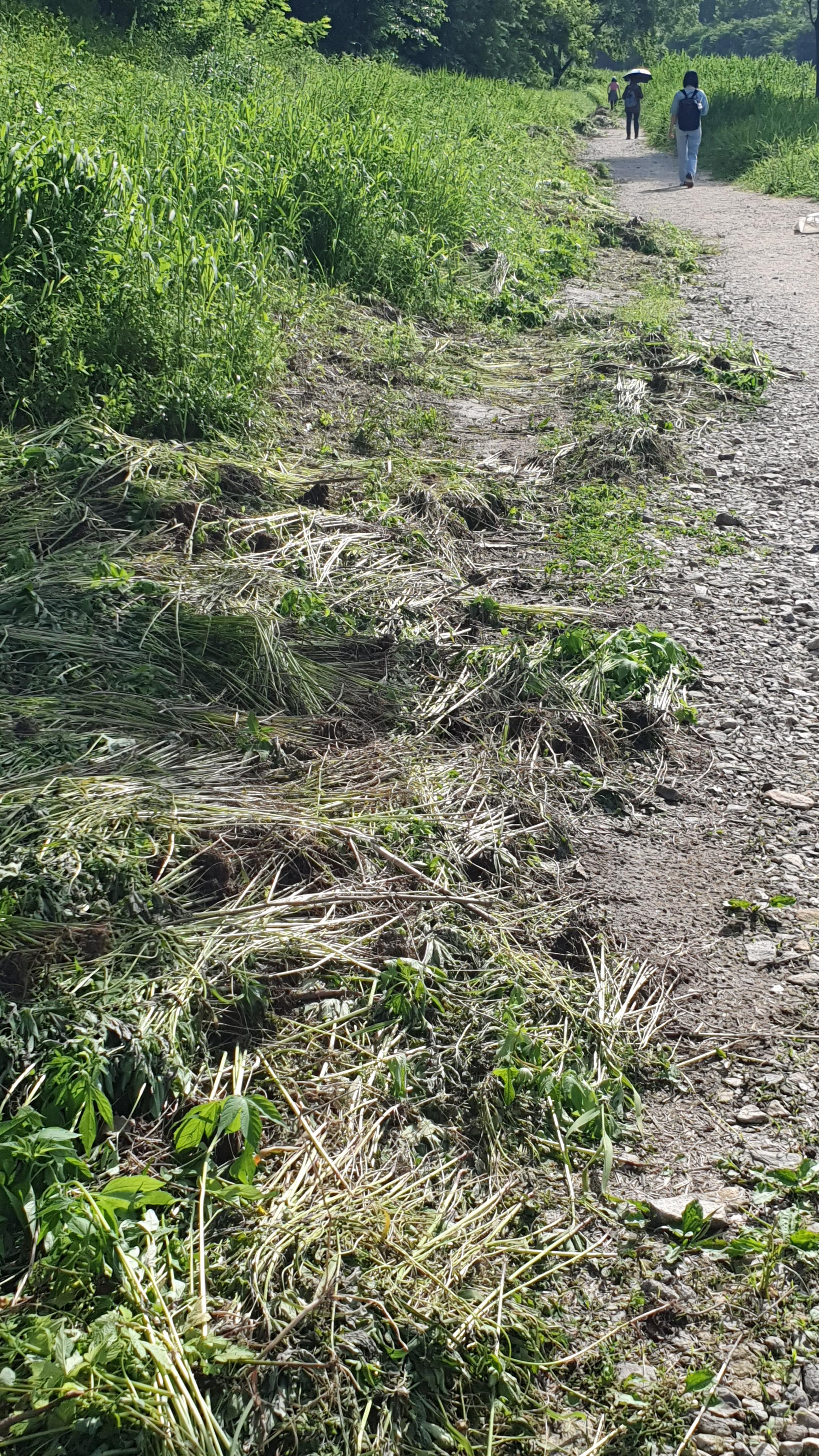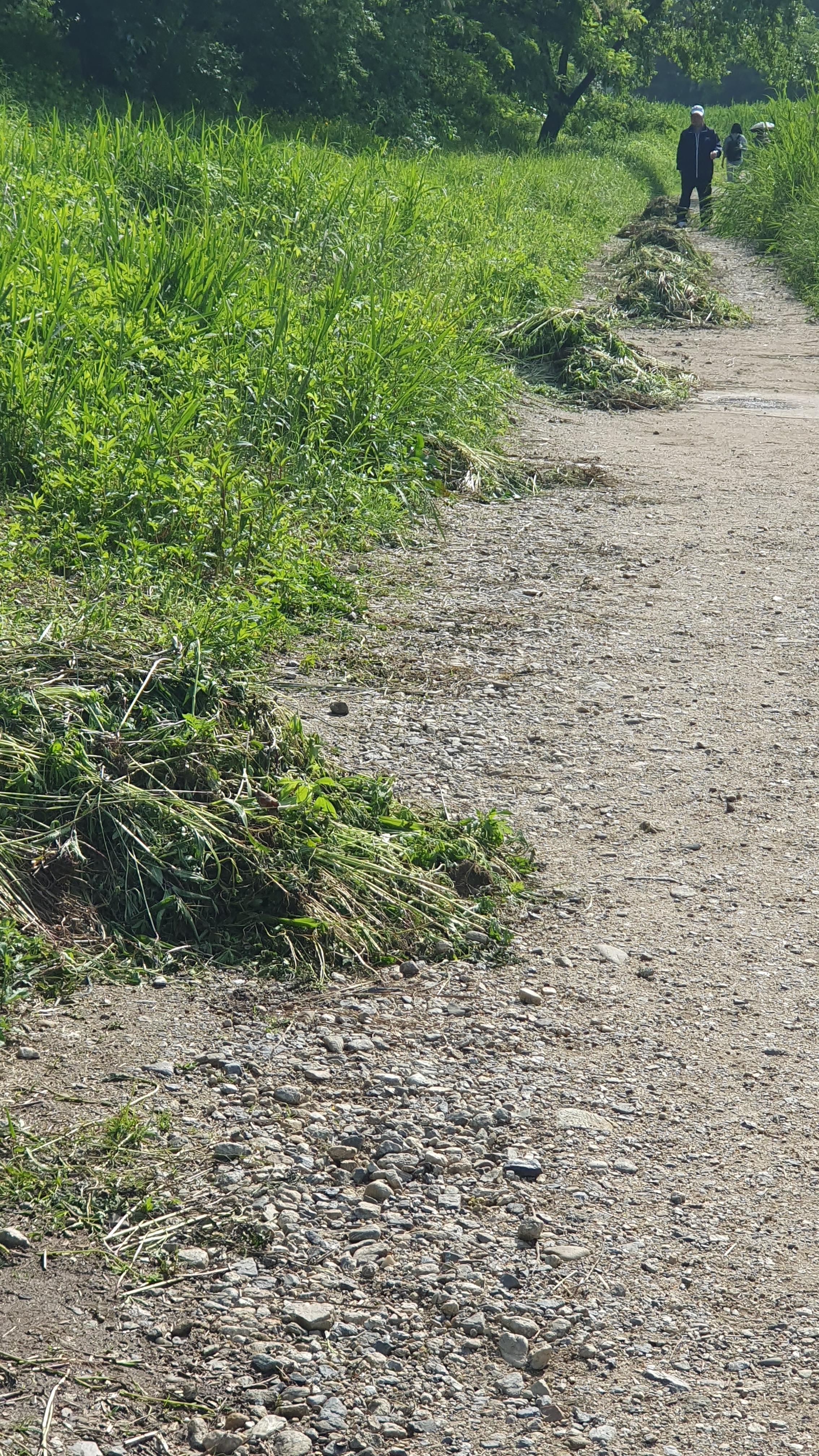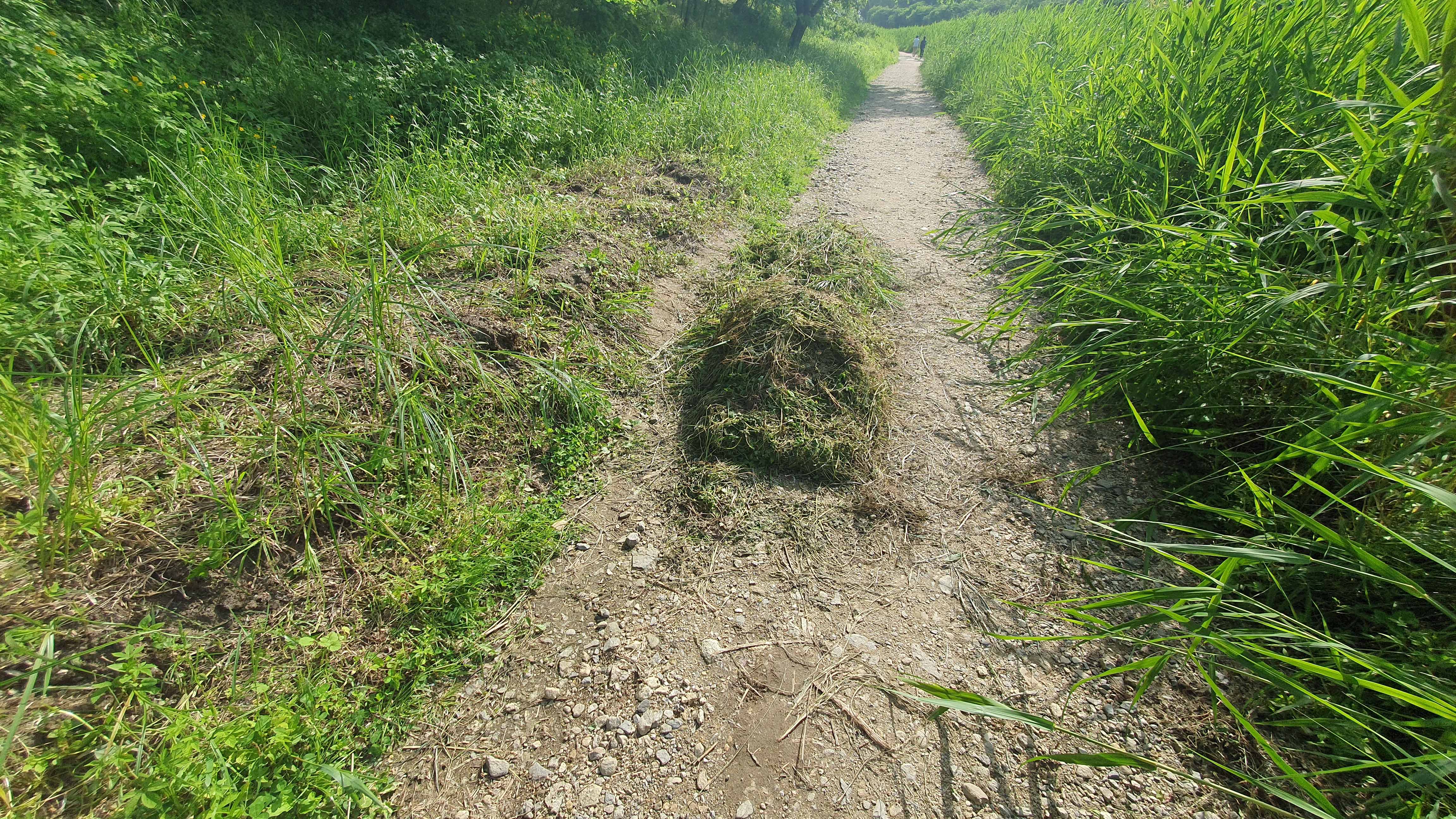 2024.05.12/ #도시기록 #안양 #학의천 #에공/ 안양 학운공원 둔치인 학의천 남단 산책로(흙길)의 수풀을 베어낸 모습이다. 흙길 산책로 옆으로 일부만 베어낸 모습을 볼때 기획적이고 의도적인 행동이고 이유가 있어 보이는데 왜 그랬을까. 이같은모습은 학의천 흙길 산책로뿐만 아니라 북단 포장길 산책로옆도 마찬가지다. 분명 이유가 있겠고 궁금하지만 자연 그대로 두었으면 싶은 흙길 산책로 주변의 수풀은 대체 왜 베어냈을까. 이런 작업을 할때 큰 안내판은 아니어도 안내문이라도 나무에 걸어 이해를 구하면 어떨까 싶다. 삼성천 오리 해코지에 주민이 종이에 글씨 써 코팅해 부착한 것처럼 소통이 중요하다.
