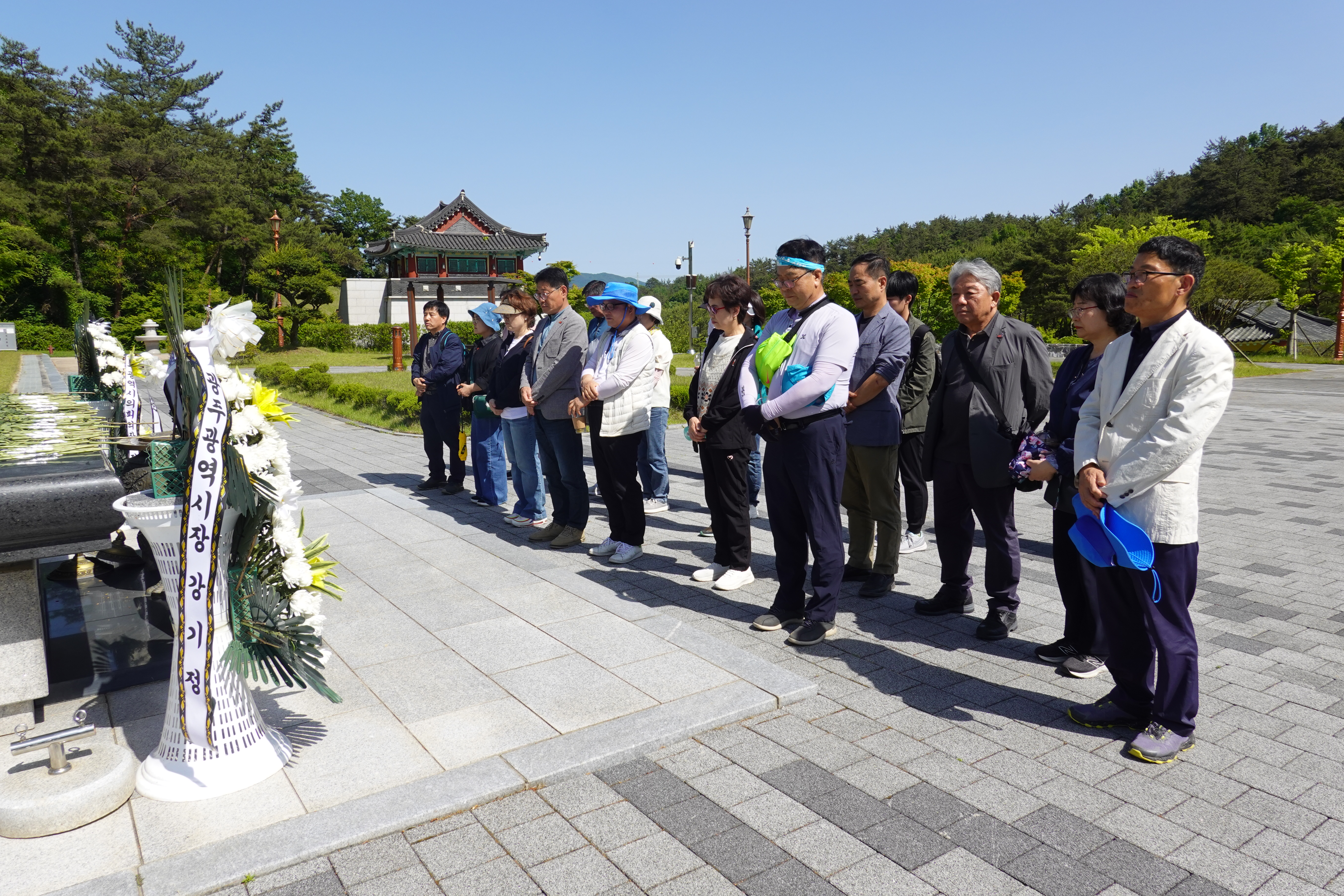 이날 역사기행 코스는 전일발딩 245. - 5.18민주화운동기록관 - 금남로 -점심(장독대식당) - 망월동구묘역 - 국립5.18민주묘지(공식참배) -담양 죽녹원&관방제림 - 군포 도착 순으로 진행됐다.