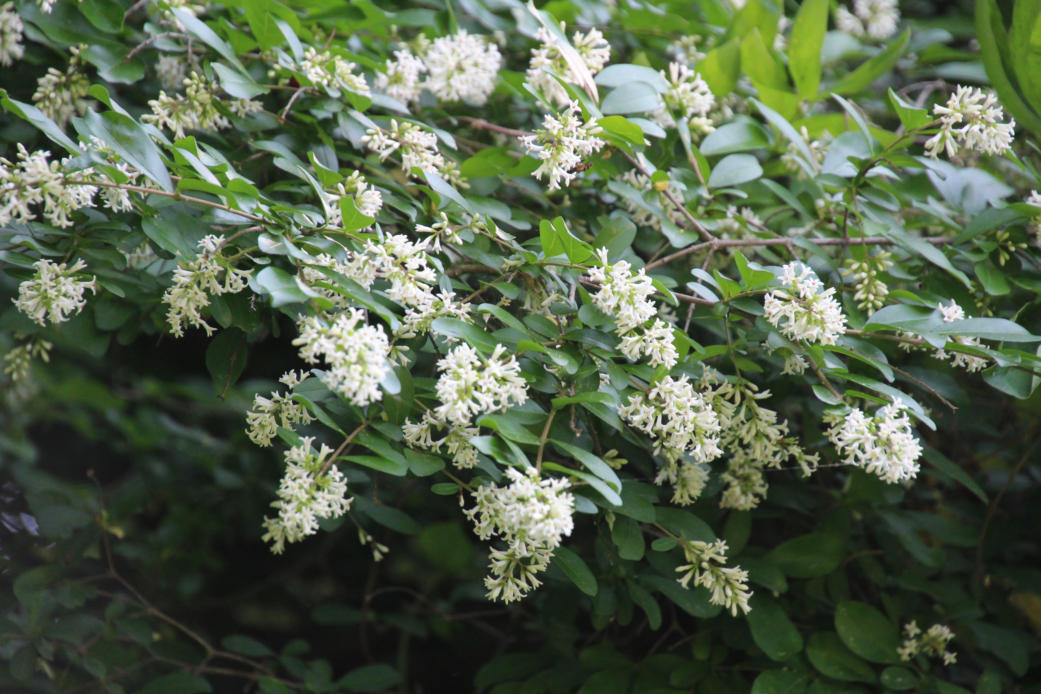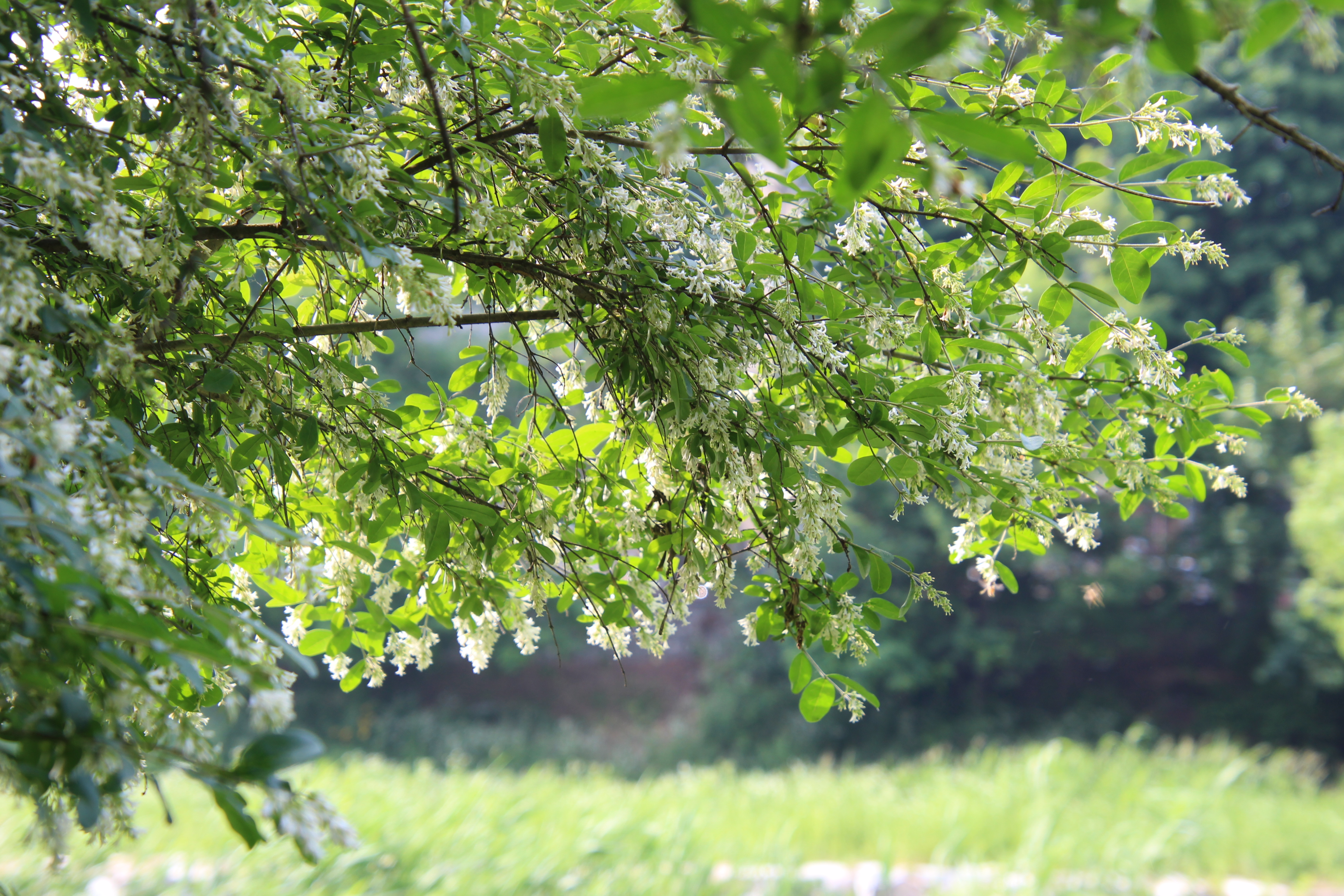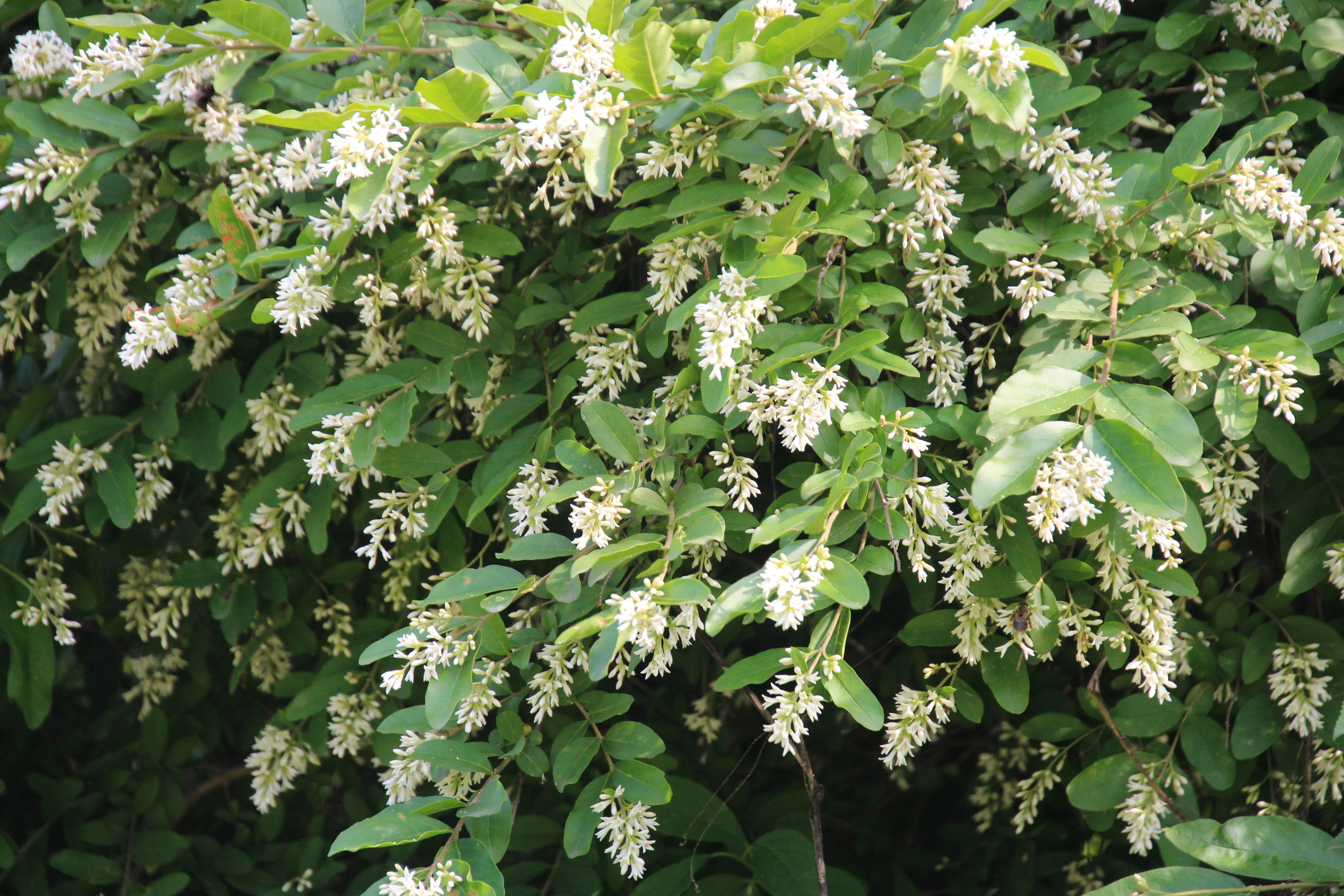 이 쥐똥나무의 꽃이 피기 시작하면 부드럽고 진한 향기가 나는데 꽃이 활짝 피기 시작하는 요즘 쥐똥나무 옆을 지나면 너무나 기분이 좋다. 달콤한 향기가 길을 멈춰 주변을 돌아보게 해 나무의 존재를 알린다,. 쥐똥나무 꽃향기는 아카시아꽃 향기 보다도 좋은듯 보이지않던 벌들도 달콤한 향기에 취해 모여든다.