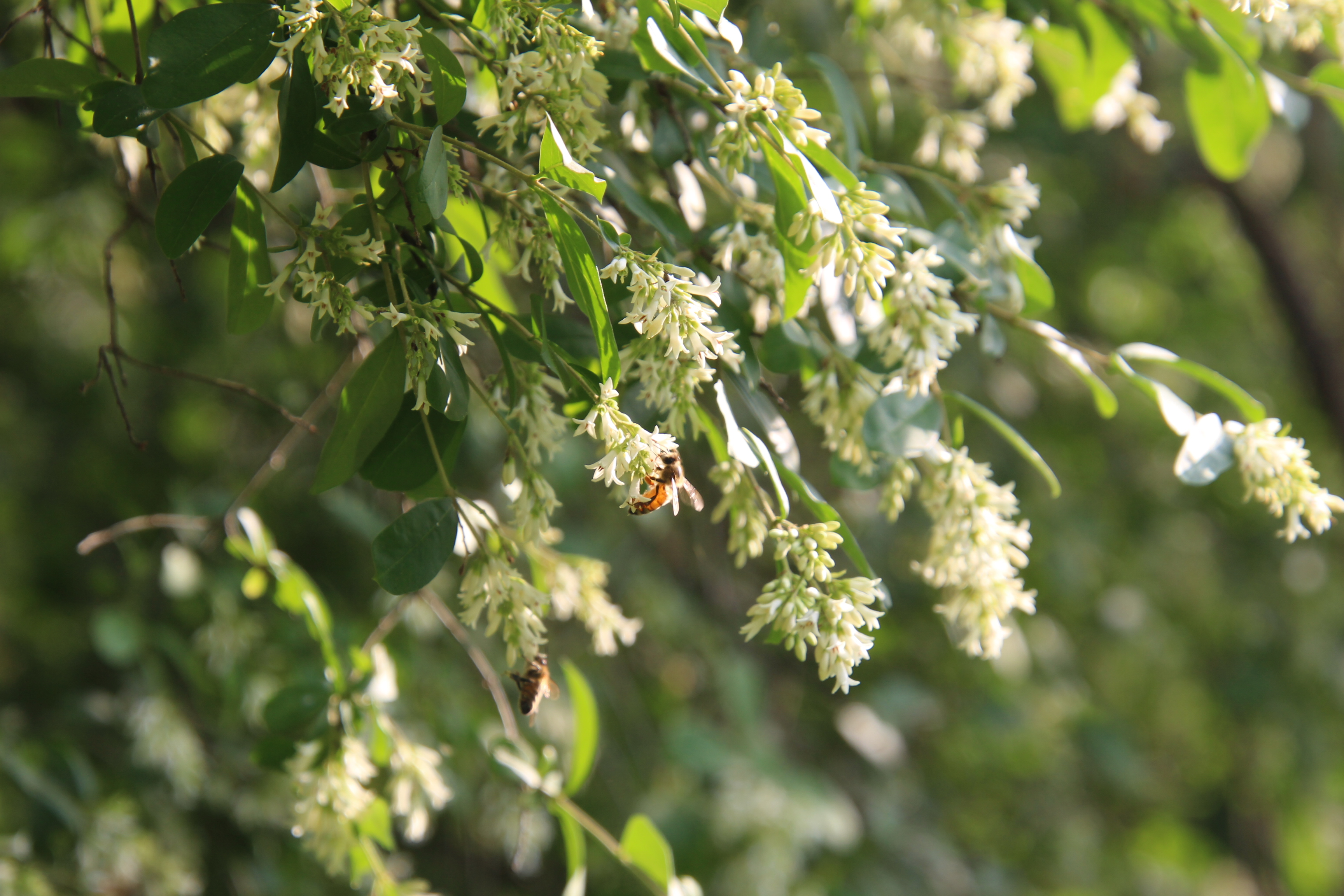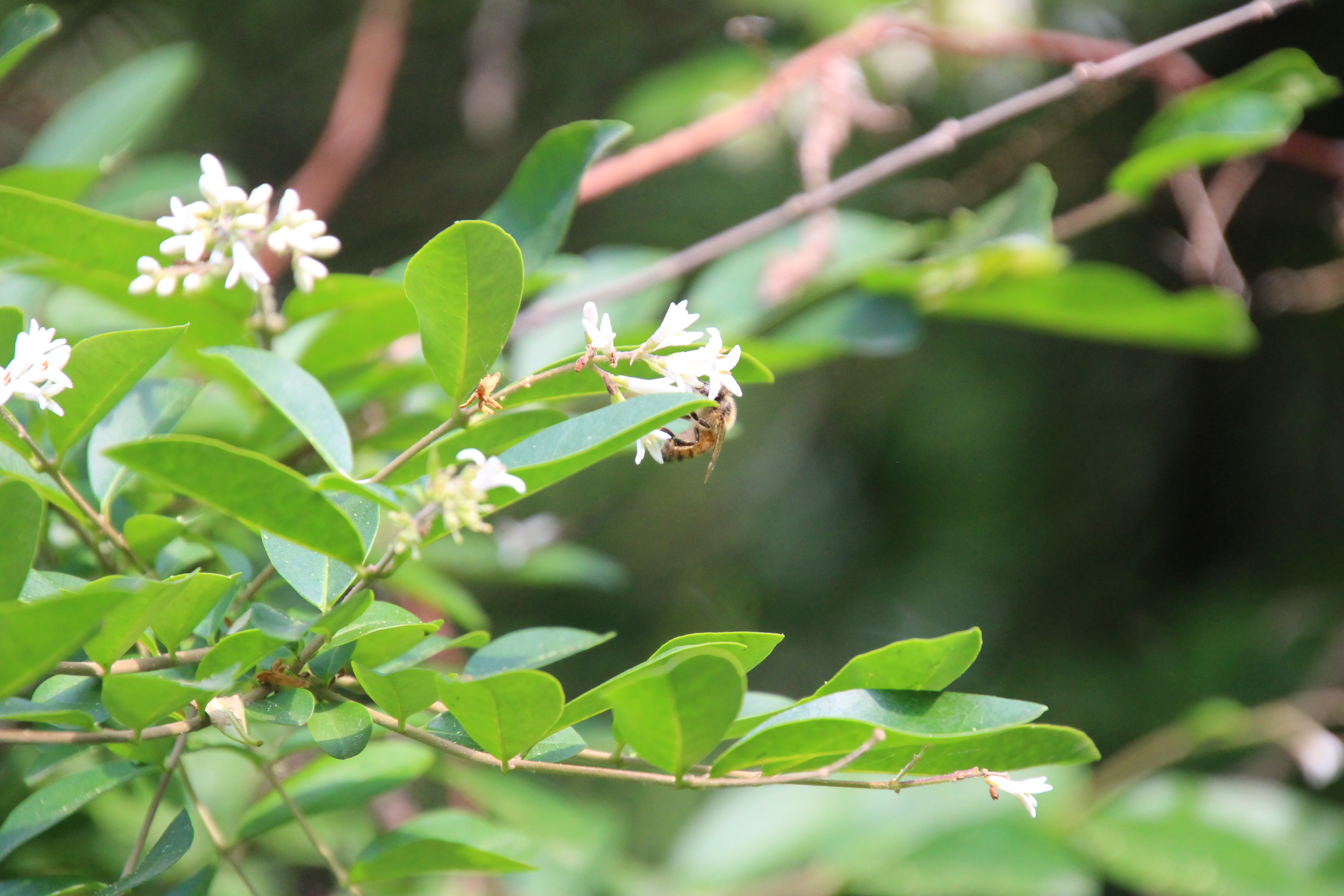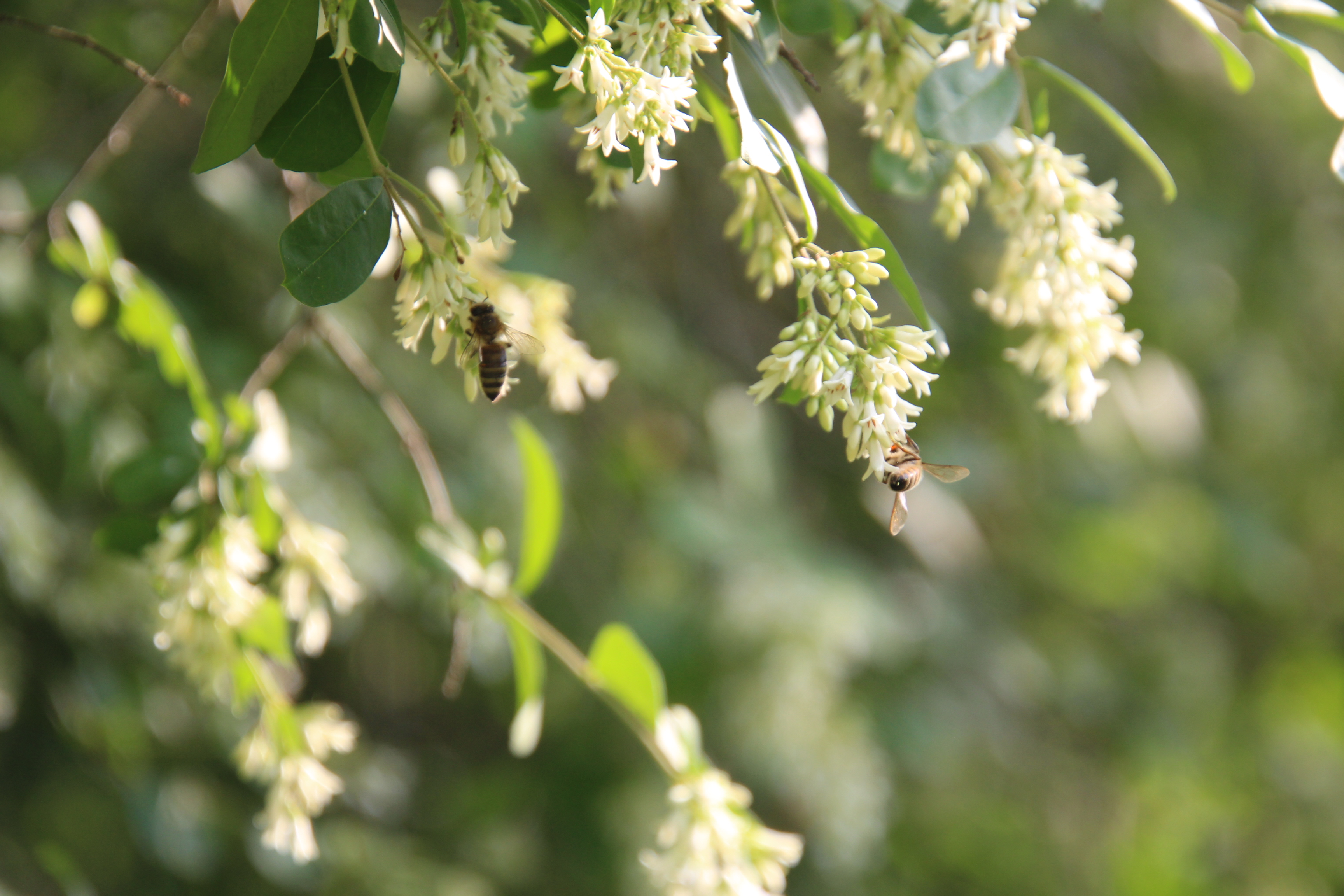 이 쥐똥나무의 꽃이 피기 시작하면 부드럽고 진한 향기가 나는데 꽃이 활짝 피기 시작하는 요즘 쥐똥나무 옆을 지나면 너무나 기분이 좋다. 달콤한 향기가 길을 멈춰 주변을 돌아보게 해 나무의 존재를 알린다,. 쥐똥나무 꽃향기는 아카시아꽃 향기 보다도 좋은듯 보이지않던 벌들도 달콤한 향기에 취해 모여든다.