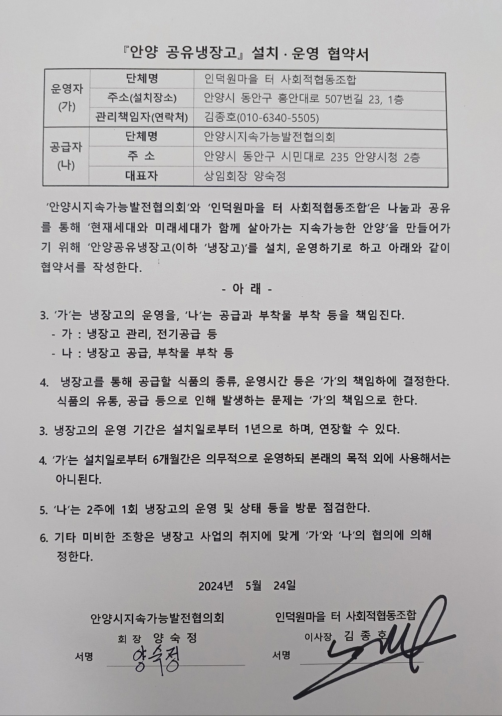[20240525]안양 공유냉장고 2호점 인덕원동에 개소