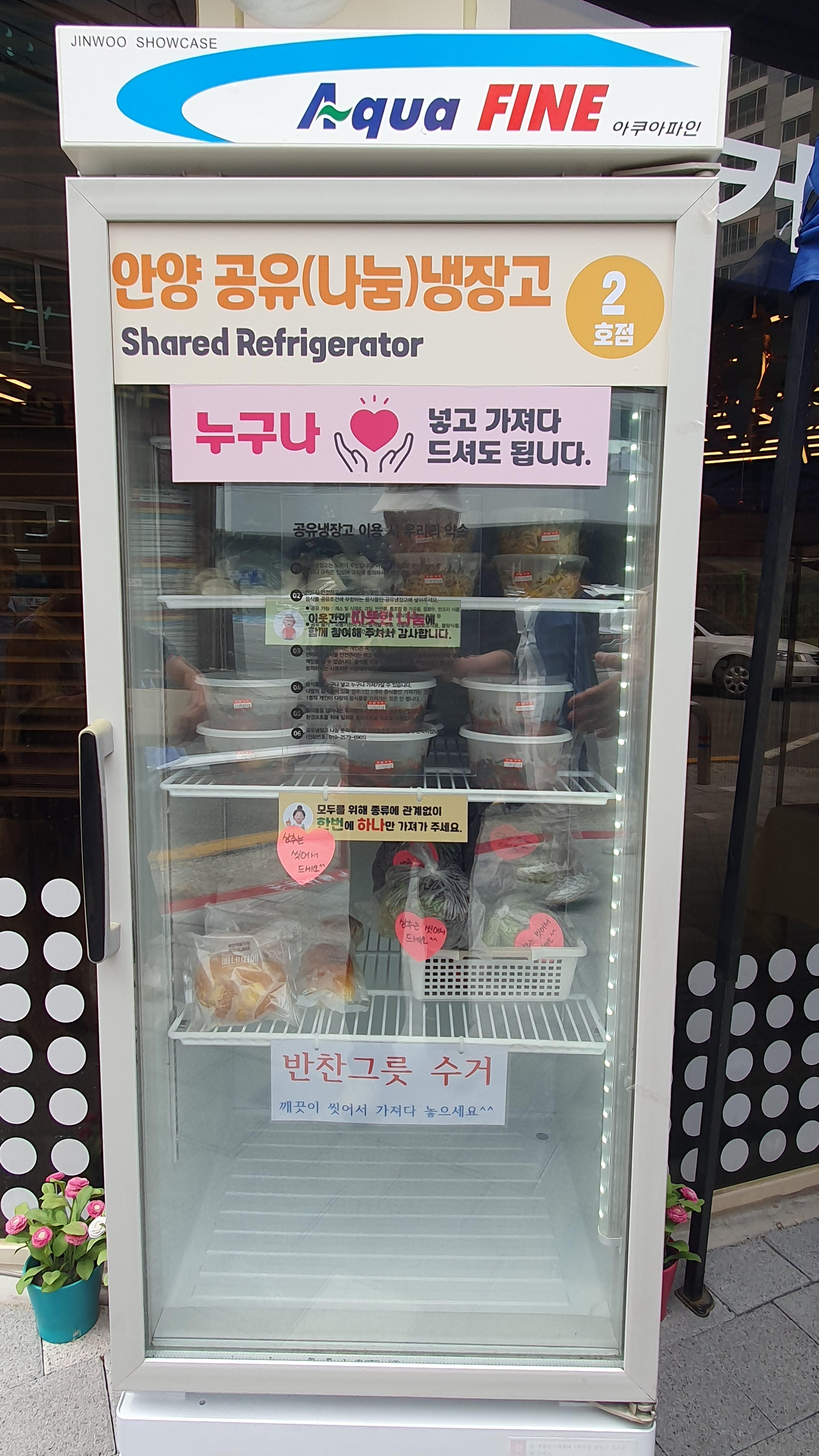 안양시지속가능발전협의회는 공유냉장고 1호점(3월12일 박달동 안민교회), 2호점(5월24일 인덕원동 마을 터) 개소에 이어 금년안으로 3호점까지 개소하여 안양지역사회에 새로운 나눔 문화가 자리매김할수 있도록 지속적인 관심과 지원을 해 나간다는 계획이다.