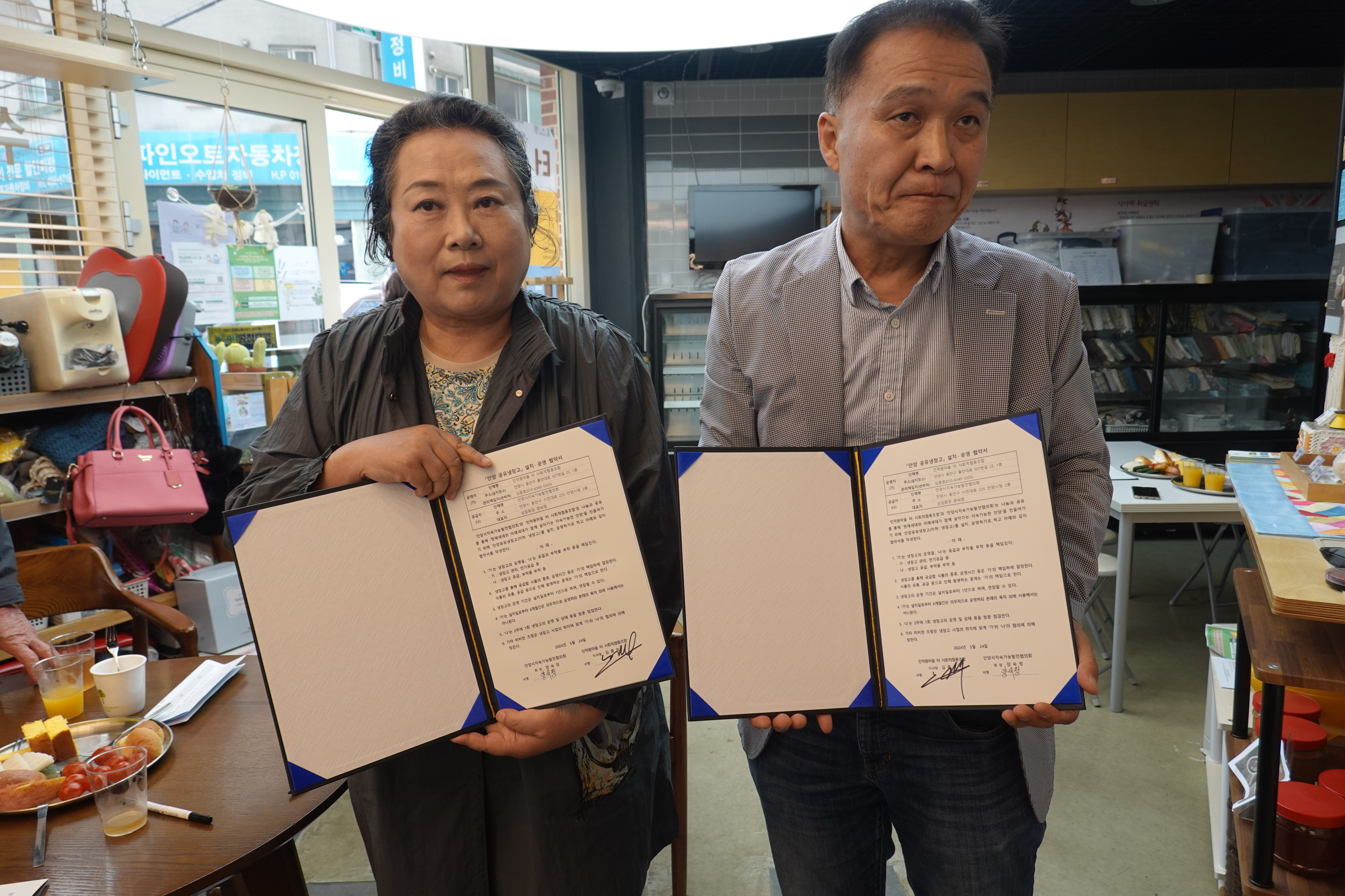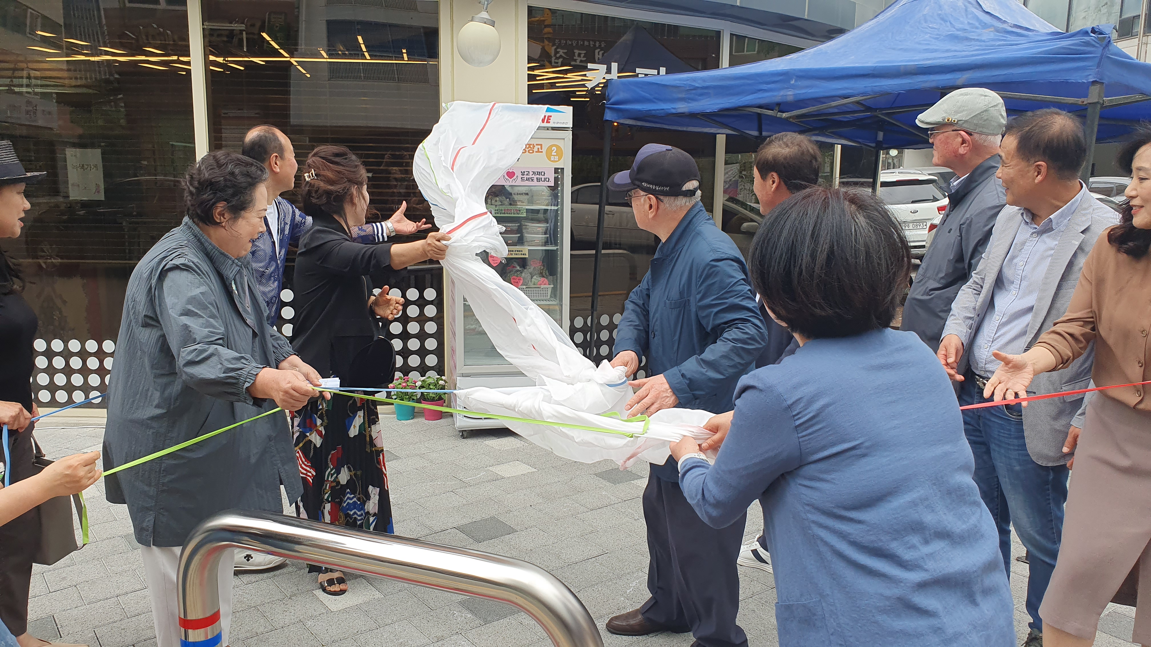 안양에서 두번째 공유냉장고가 오픈하던 날, 인덕원마을 터 매장 앞에서 열린 개소식은 내빈소개(우경희 인덕원마을 터 사무국장), 경과보고(박지예 안양YMCA 이사장), 환영사(김종호 공유냉장고 2호점 운영위원장), 경과보고, 2호점 운영진인사, 2호점 공유냉장고 테이프 오픈 , 협약체결, 다과회 순으로 진행됐다.