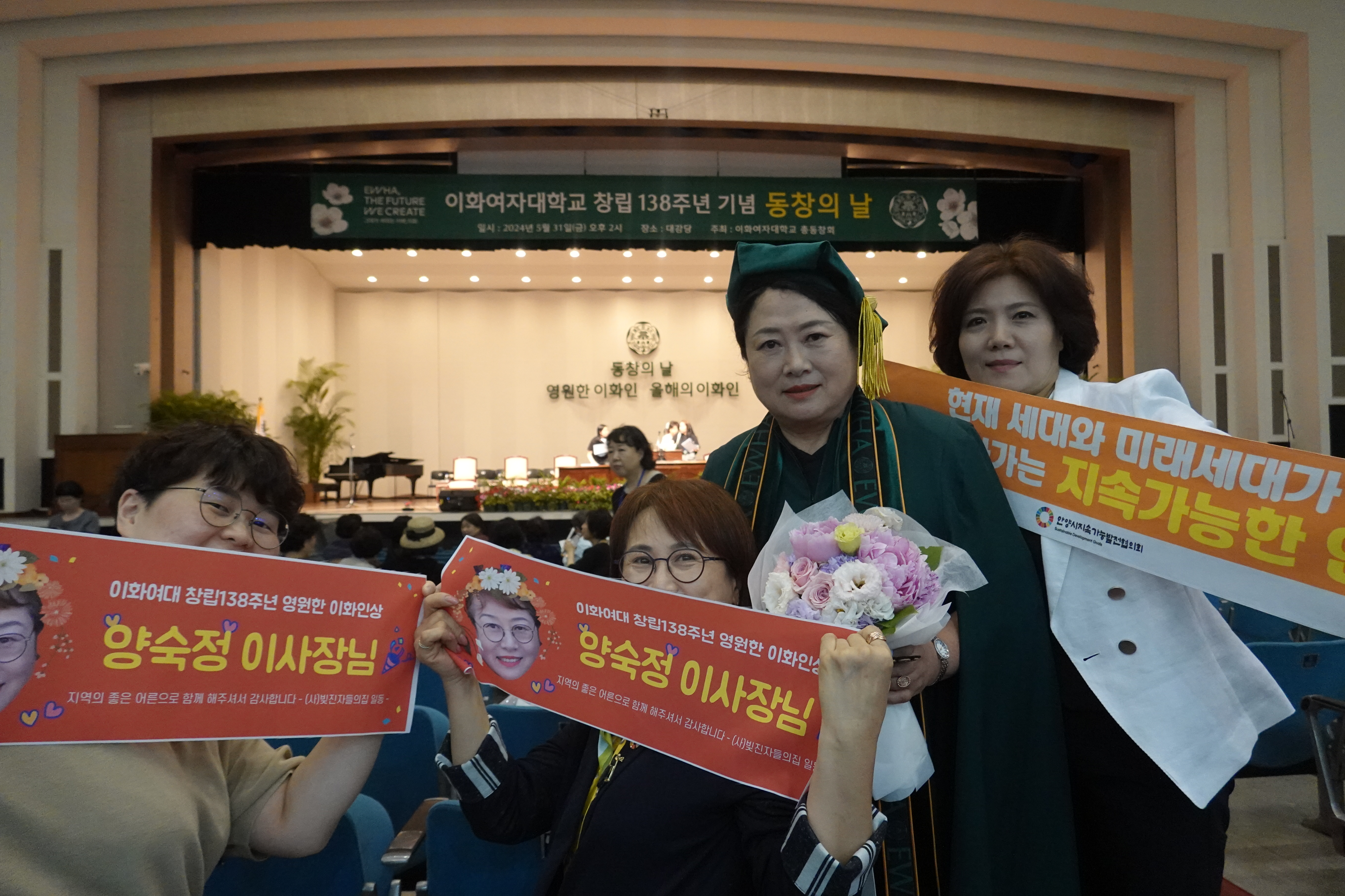 안양시지속가능발전협의회 상임회장과 빚진자들의집 이사장으로 활동하고 있는 양숙정 회장(74년 졸업. 사회학과)이 이화여자대학교 창립 138주년 동창의날 행사에서 '영원한 이화인상'을 수상했다.