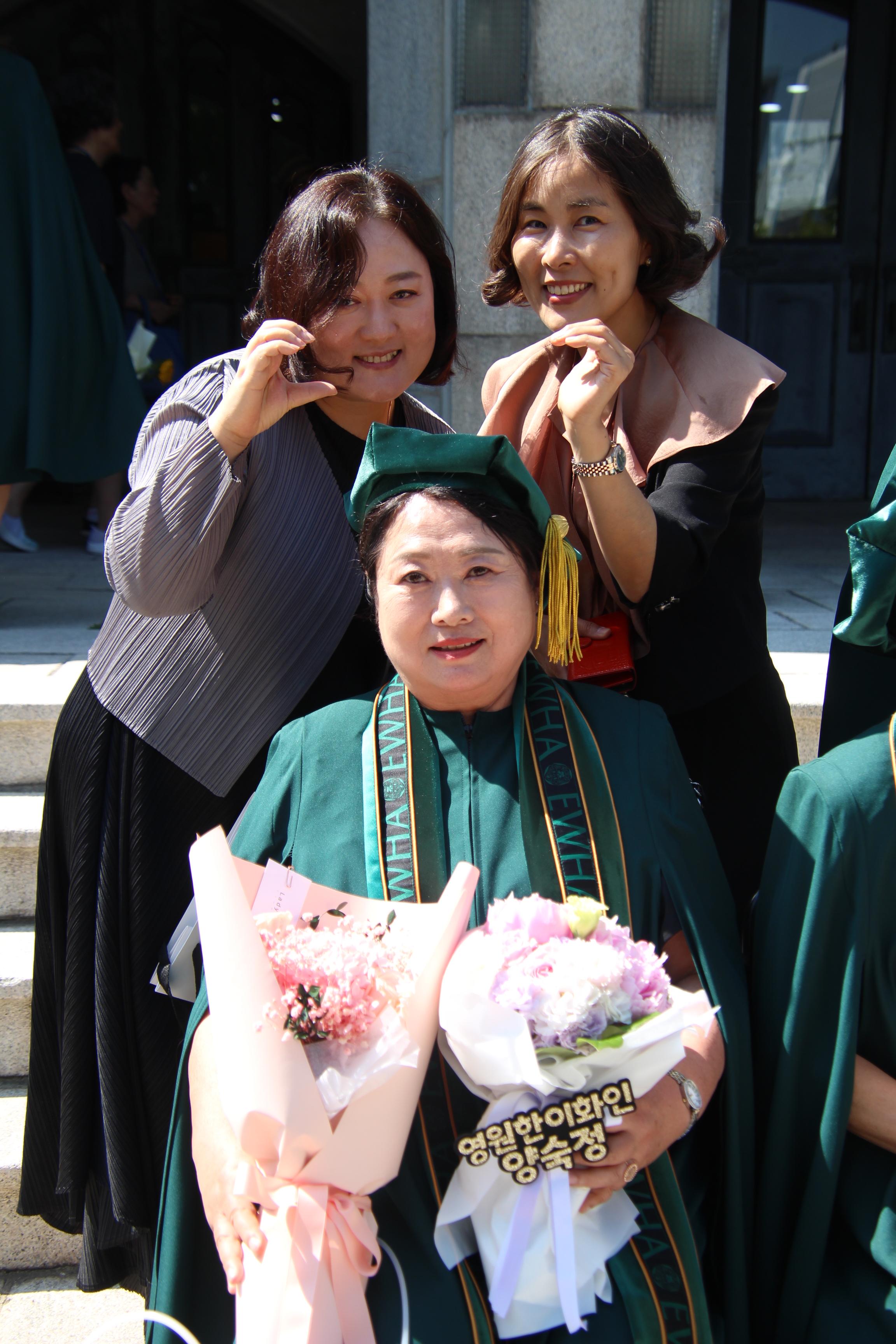 이날 뜻깊은 자리에는 양숙정 회장의 부군과 따님 등 가족이 참석하고 사회학과 동문들이 대거 참석해 축하를 전했다