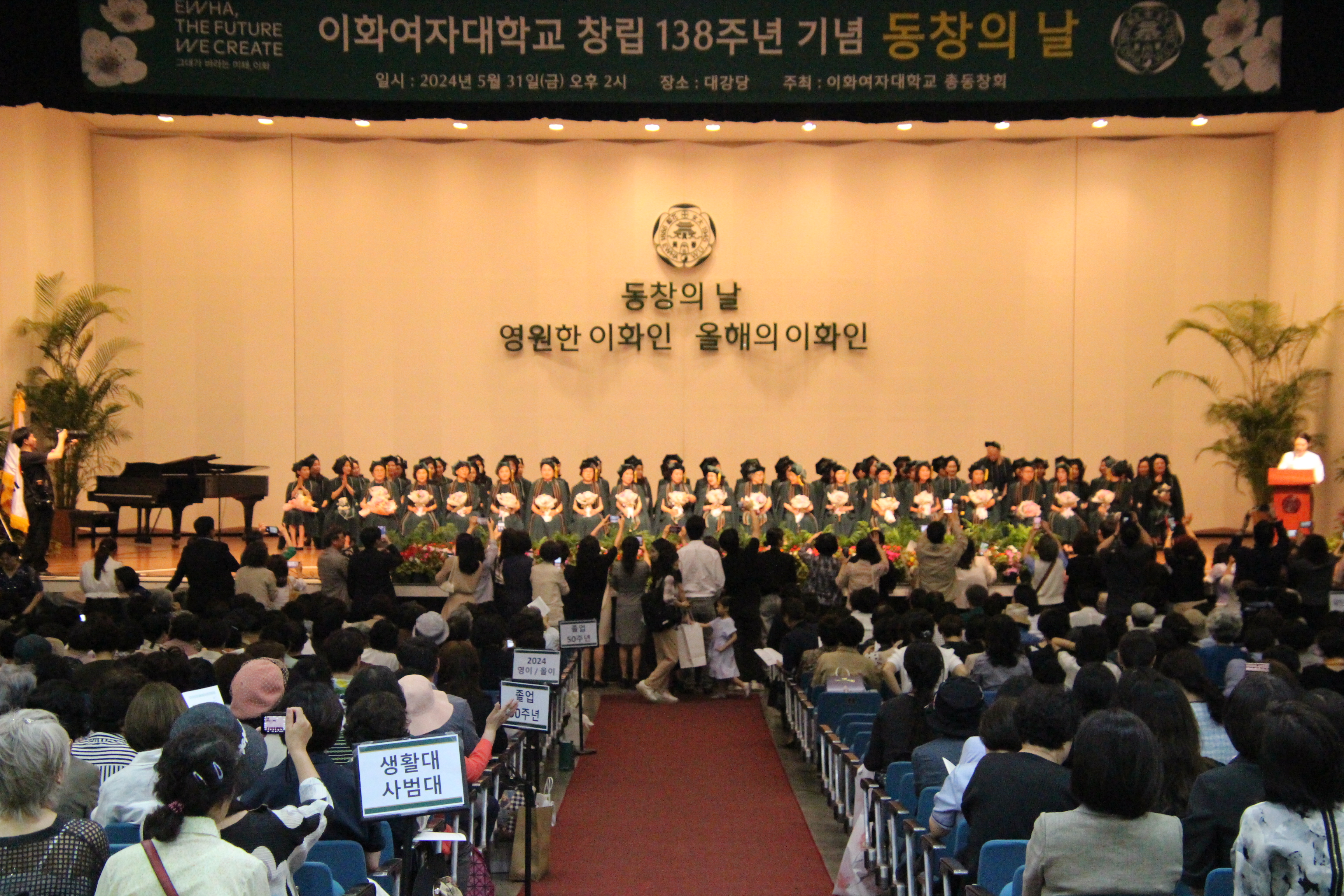 이화여지대학교 총동창회가 5월 31일 오후2시 이화여대 대강당에서 개최한 이화여대 창립 136주년 기념 행사는 '동창의 날' 기념식(제7회 '빛나는 이화인'상 시상)에 이어 '졸업 50주년(1974년)과 졸업 30주년(1994년) 동창 재상봉'및 '영원한 이화인' 및 '올해의 이화인' 추대, 합창제 등의 순으로 진행됐다.