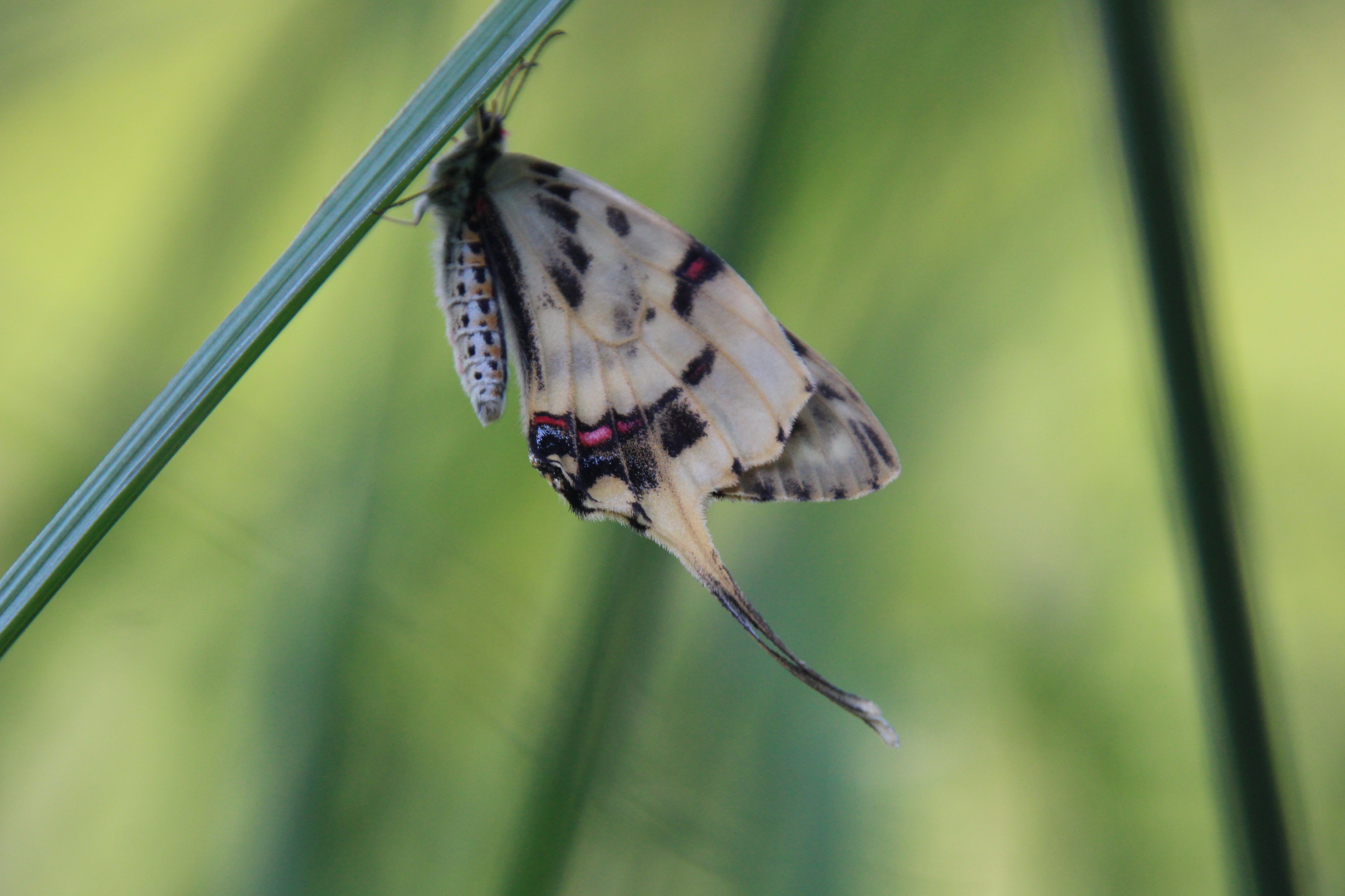 꼬리명주나비는 세계자연보전연맹(IUCN)의 적색목록집에 ‘취약 대상’으로 지정된 멸종위기종으로 우리나라 5천원권 지페 뒷면에도 그림으로 그려져 있다. 나비목 호랑나빗과 곤충으로 꼬리가 가늘고 길다. 뒷날개 뒤쪽에 붉은 띠와 2~3개의 푸른 점이 있다. 20여 년 전만 해도 주변에서 쉽게 볼 수 있는 곤충이었지만 하천 정비 등으로 먹이 식물인 쥐방울덩굴이 사라지면서 개체 수가 급격하게 감소했다. 꼬리명주나비알은 1년에 3회(4·6·8월) 부화하는데 알을 보기가 쉽지않다.