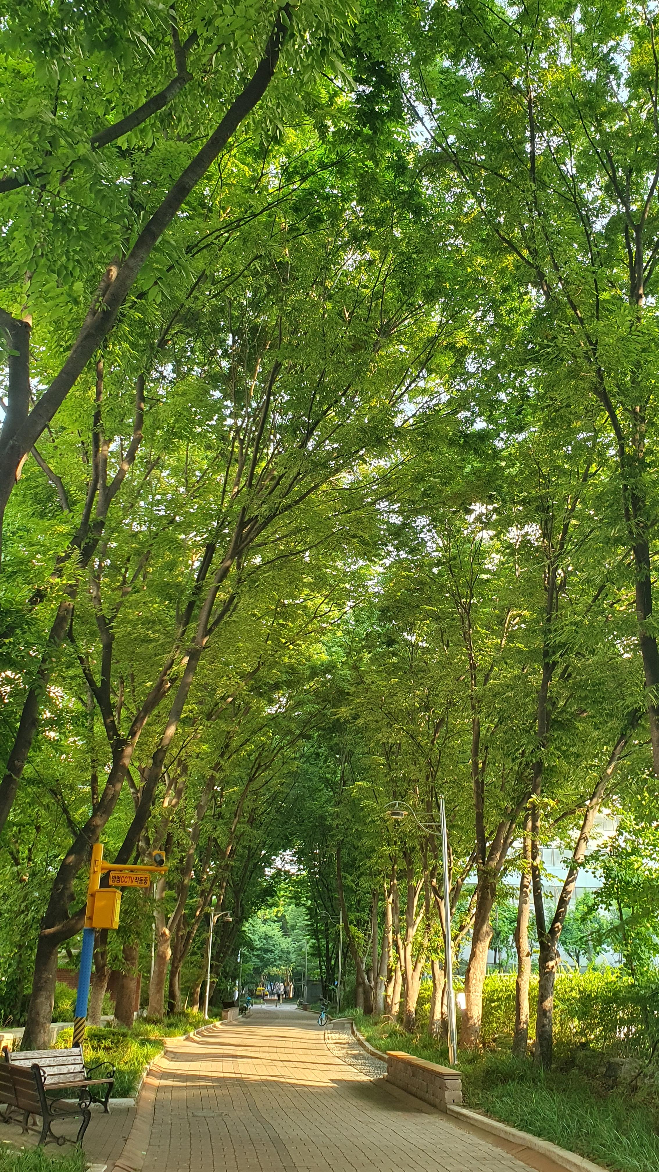 세월이 지나면서 니무들도 자라 무더운 여름에는 뜨거운 햇빛을 모두 가려주는 그늘이 있는 도시숲을 만들어 걷기 좋은길, 걷고싶은 길이 됐다.