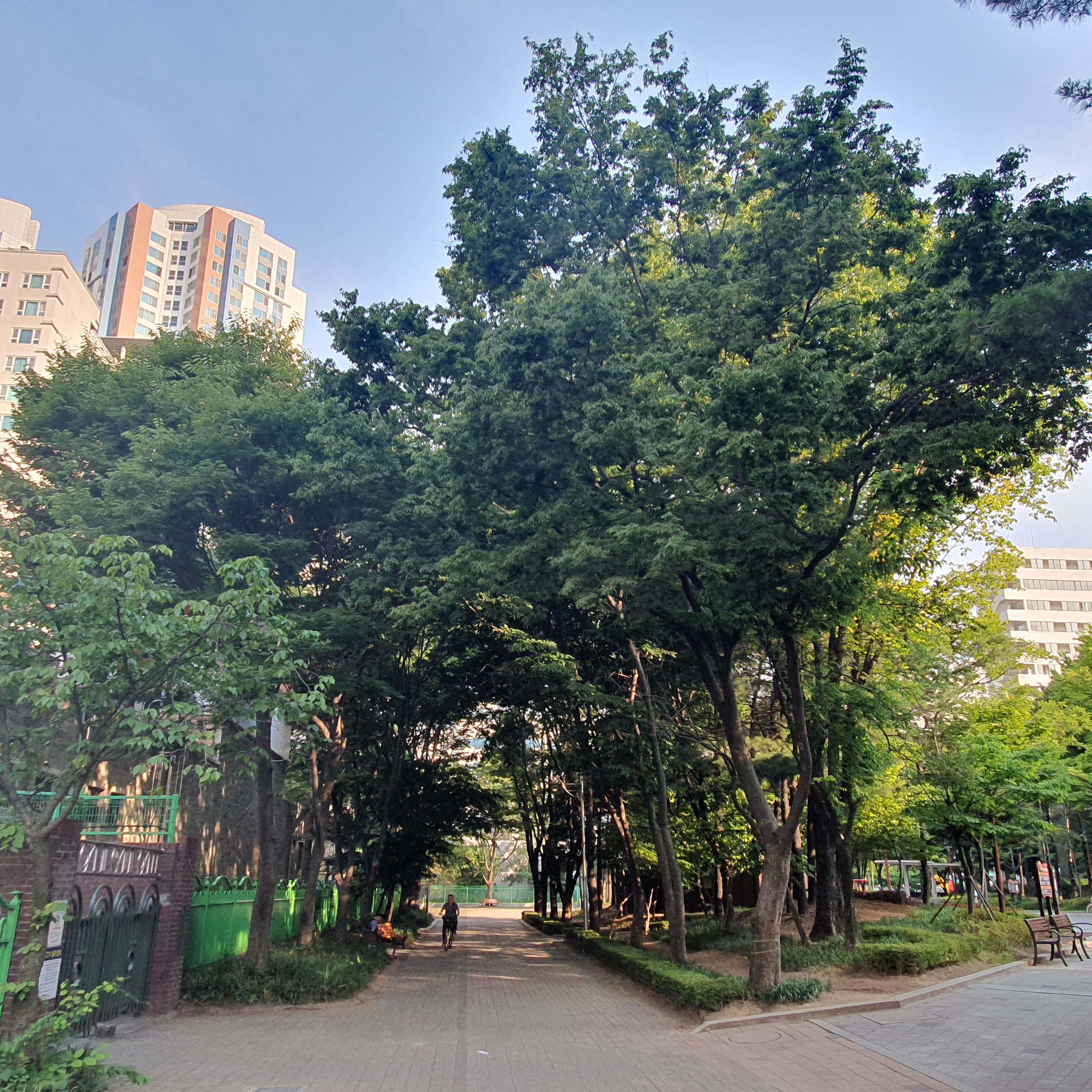 2024.06.19/ #도시기록 #사잇길 #안양 #평촌/ 무더위속에 햇살이 뜨거워지면서 평촌 도심 아파트단지 사이를 지나는 사잇길이 인기다. 평촌신도시를 설계하면서 잘한것중 하나가 아파트단지와 소공원들을 연결하는 사잇길이 아닐까 싶다.
