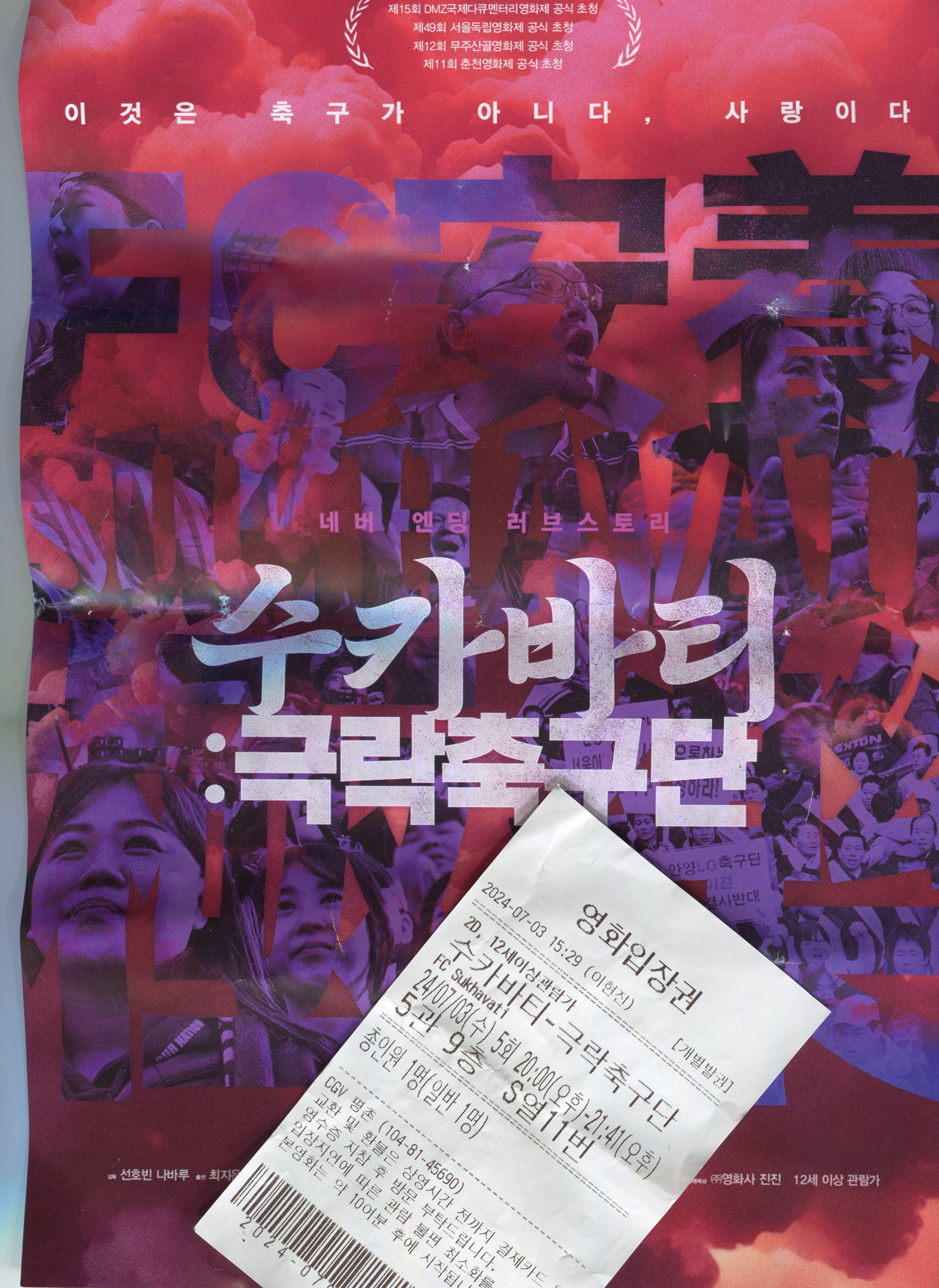 영화를 보면서 울컥했다. 영화가 끝나고 엔딩 자막이 모두 올라가고 극장안에 다시 조명이 켜졌지만 관객들은 한동안 자리에서 손쉽게 일어나지 못할 정도로 감동과 여운을 남겼다. 극장을 나서면서 영화에 등장하는 서포터즈 대장들(최지은.최캔디)과도 오랫만에 만나 찐하게 포옹하며 그간의 서글픔을 다독이고 위로를 나누었다.