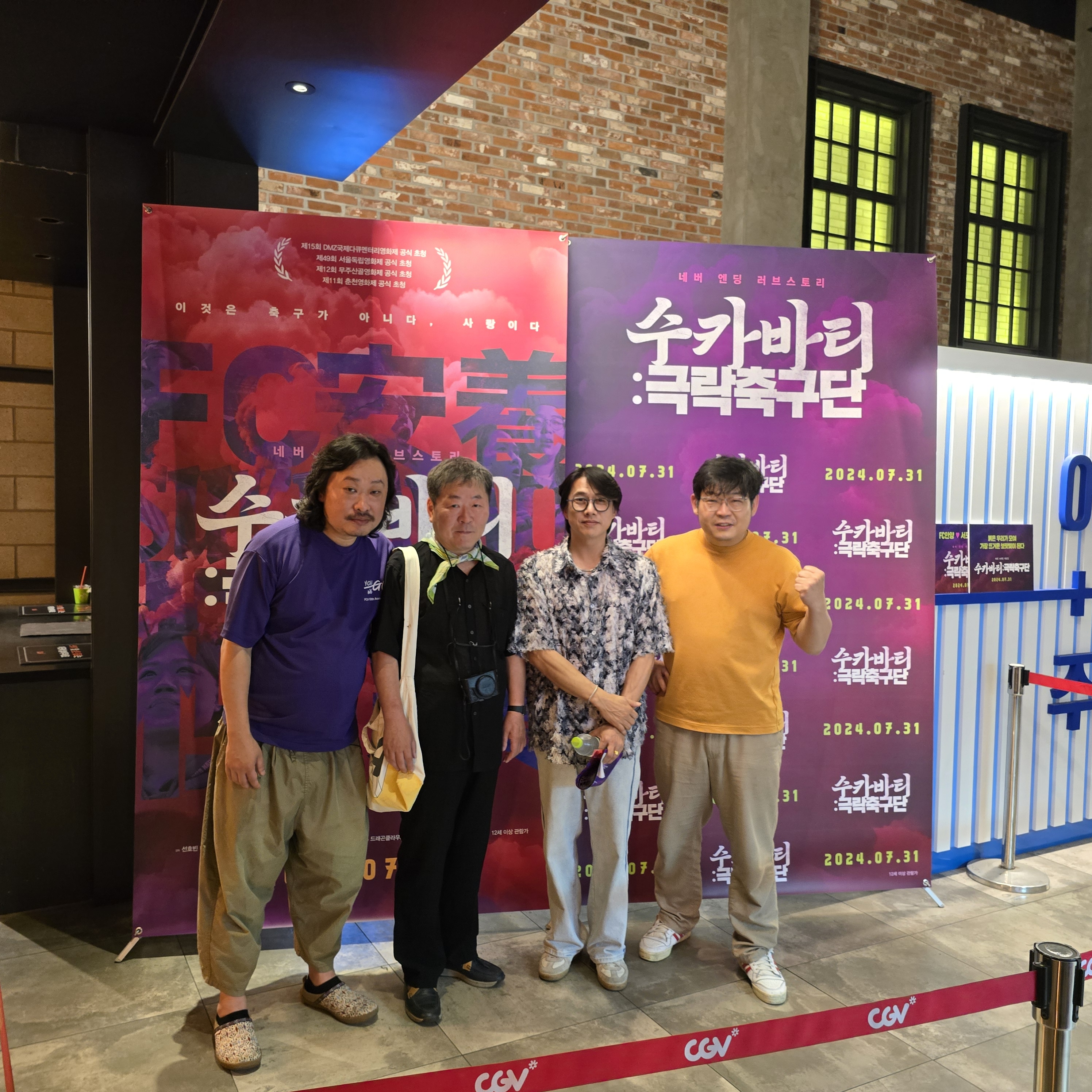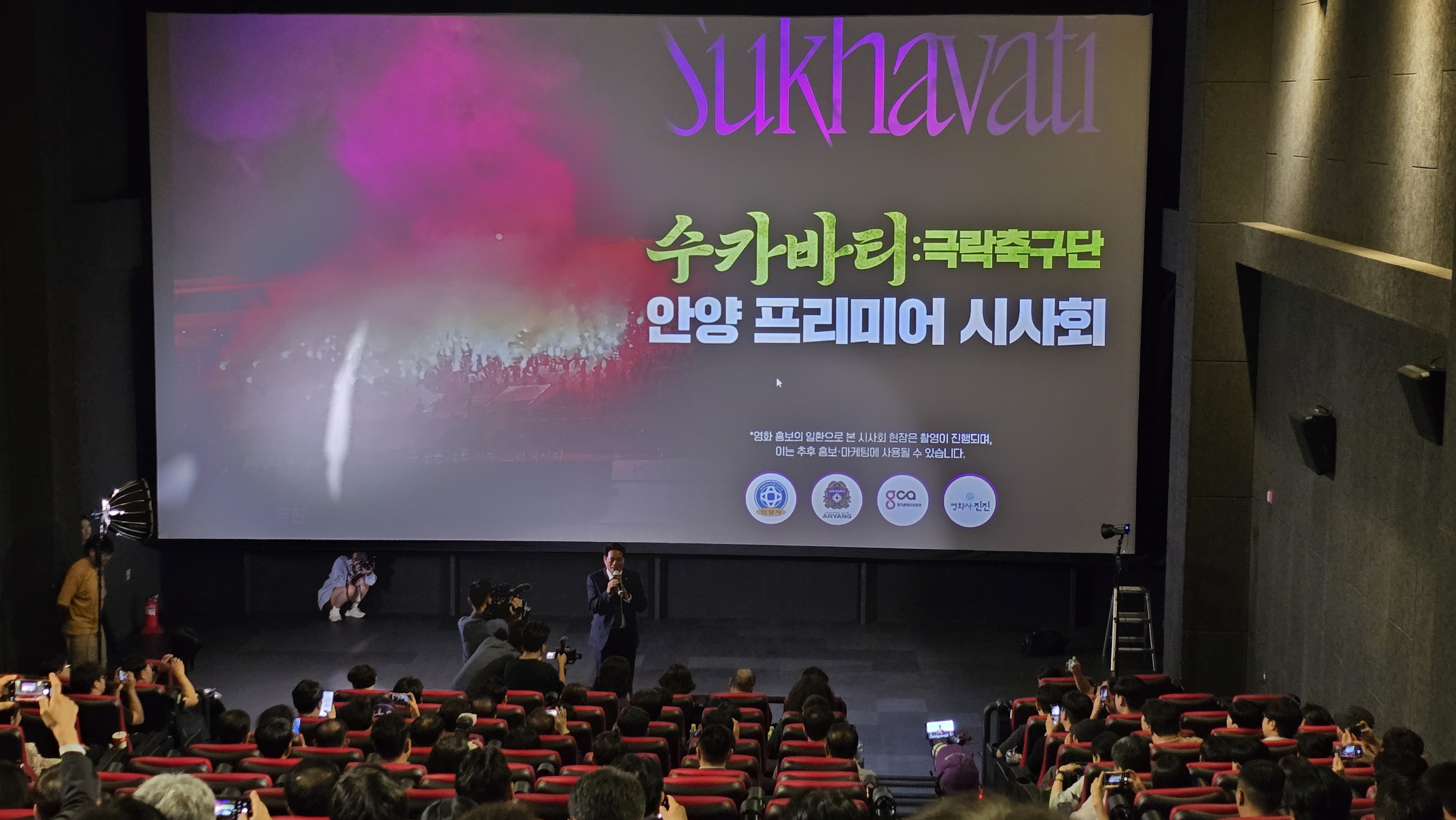 프로축구 FC안양의 공식 서포터즈 ‘A.S.U. RED’의 역사와 여정을 다룬 나바루, 선호빈 감독이 제작한 다큐멘터리 영화 <수카바티 극락축구단>의 전국 극장가 개봉을 앞두고 3일 저녁 8시 CGV 평촌 5관에서 열린 프리미어시사회에 초대받아 다녀왔다.