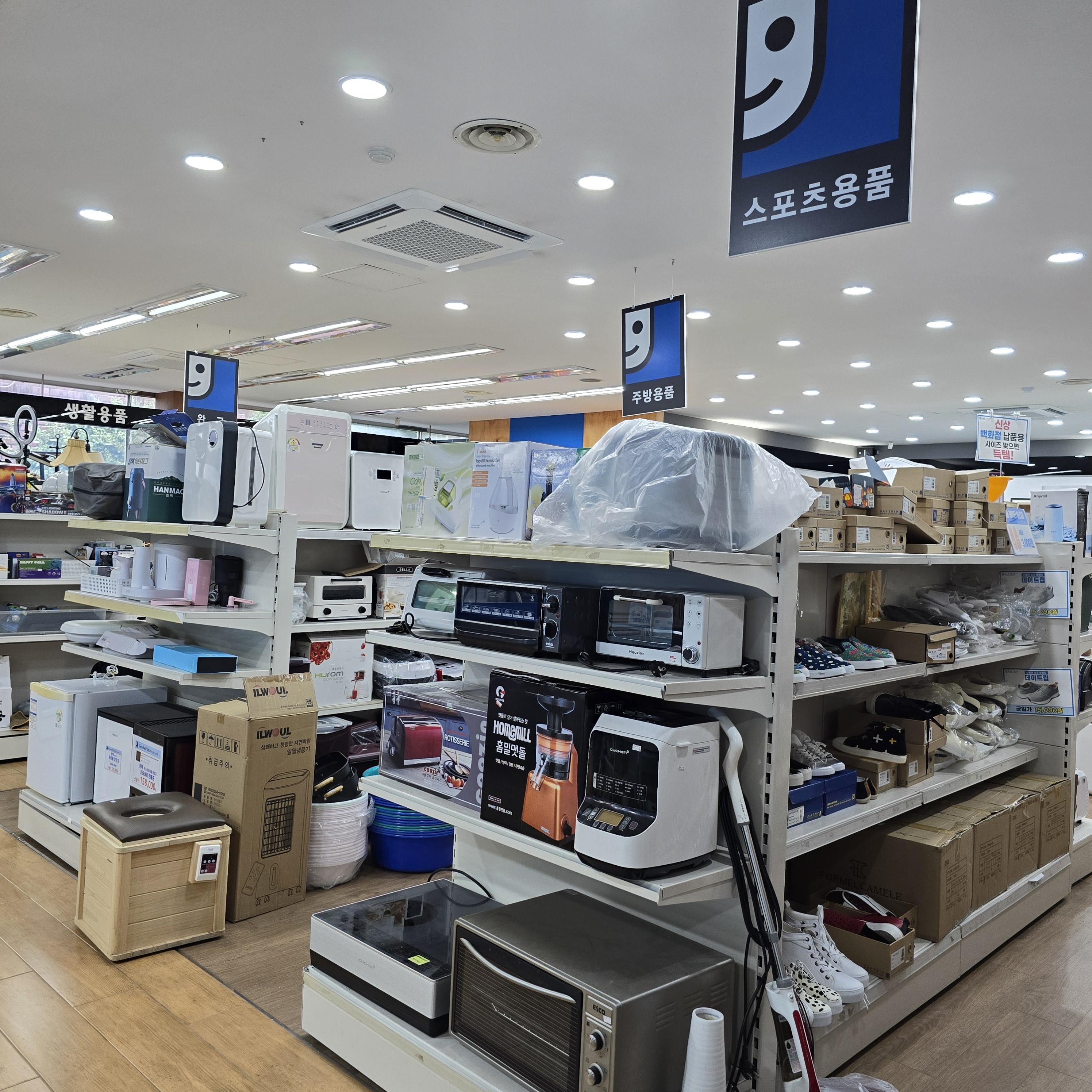 매장상품은 1층은 의류, 가방, 화장품 등이 진열되어 있고 2층에는 전기전자용품, 침구, 생활잡화, 그릇, 신발, 문구, 장난감 등이 있다. 기업에게 기증받은 물품도 있기 때문에 전혀 사용하지 않은 새 제품들이 많다. 물건을 자세히 살펴보다 보면 뚯밖의 희귀탬도 발견할수 있다.