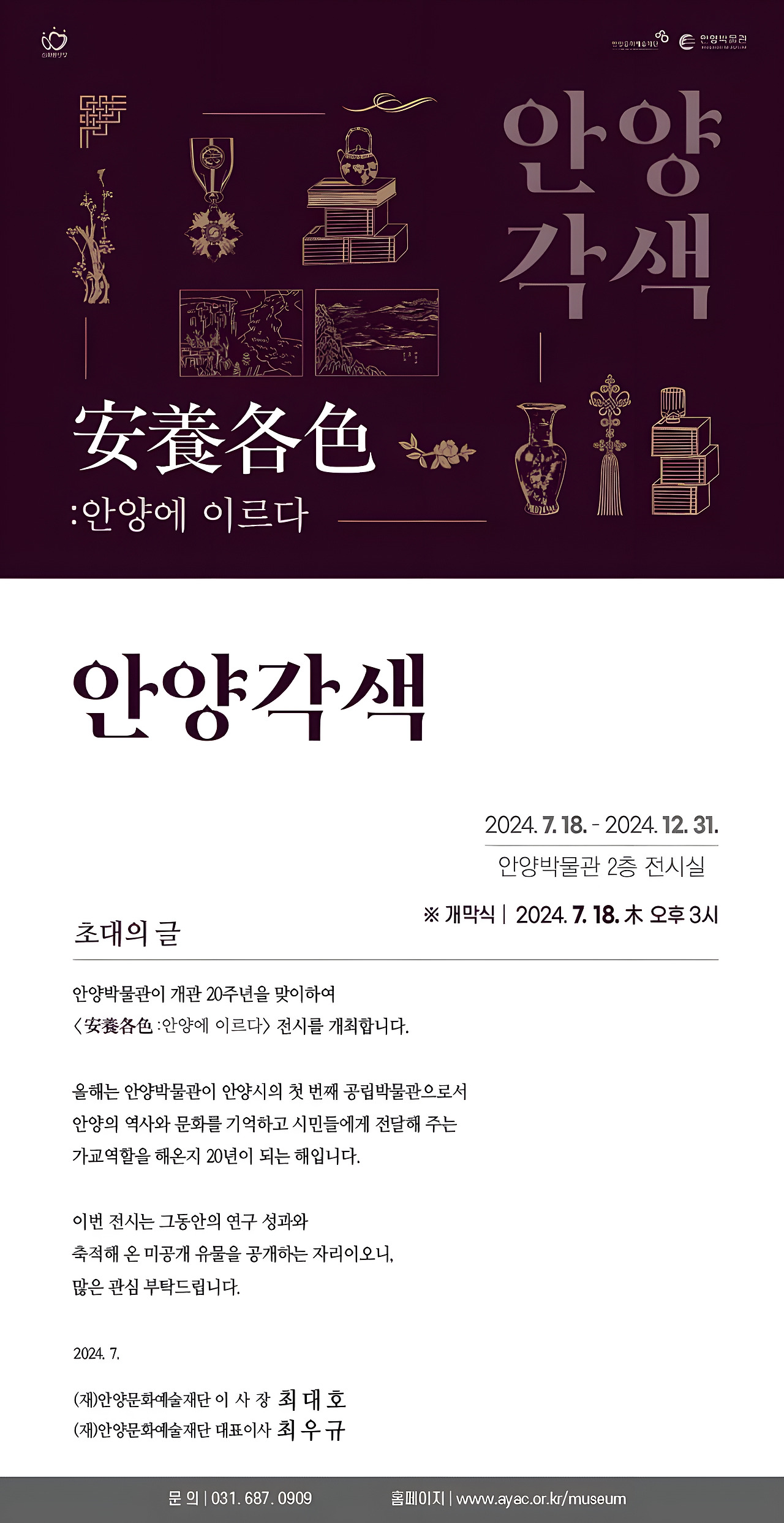 안양박물관이 개관 20주년을 맞아 이를 기념하는 기획전시 '安養各色(안양각색): 안양에 이르다' 개막식을 7월 18일 오후3시 안양박물관 교육관에서 개최했다.