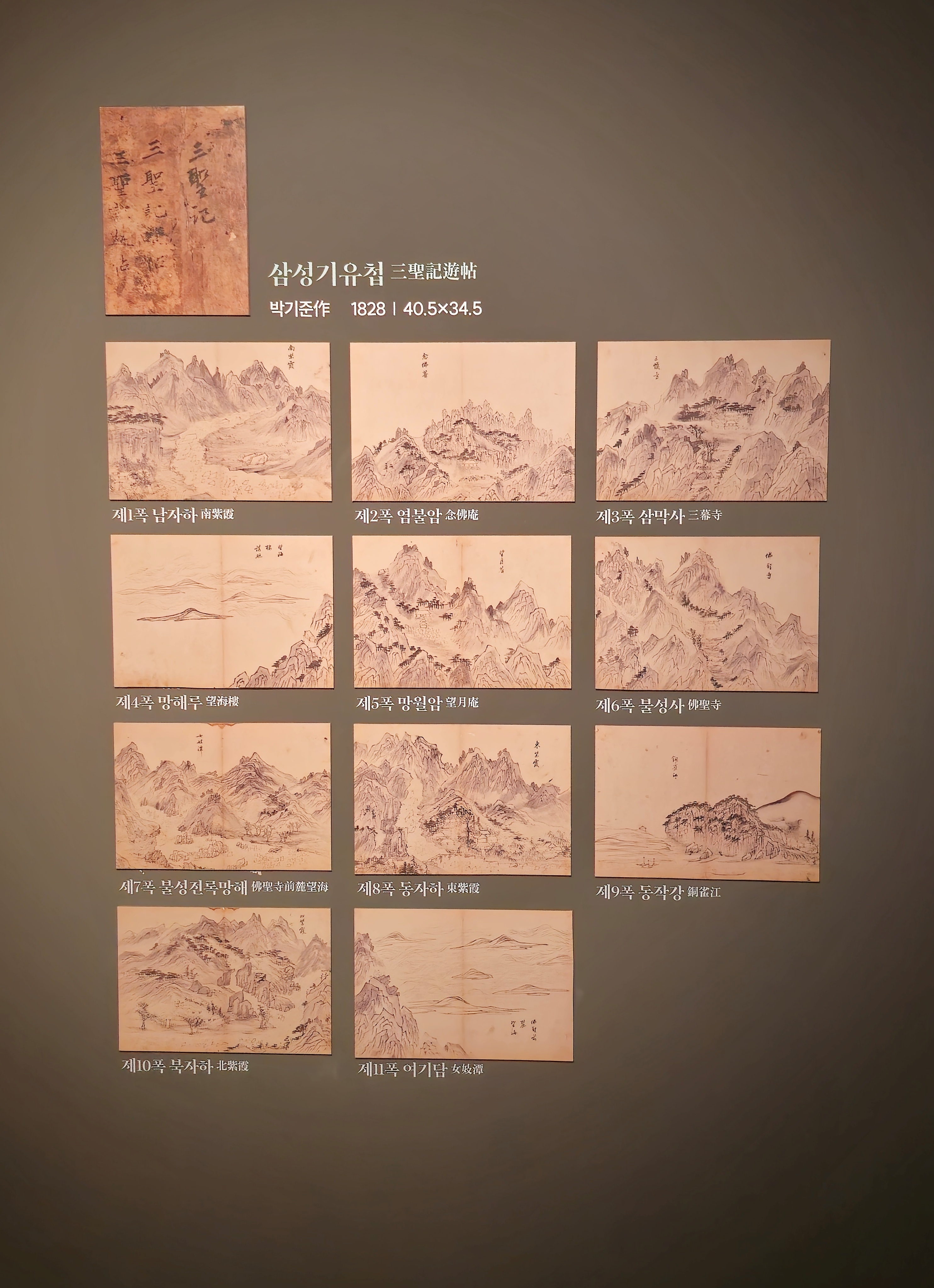 <삼성기유첩(三聖記遊帖)>. 우리에게는 생소한 조선 후기 도화서 화원 박기준(朴基駿, ?~?)이란 이가 다른 네 명의 일행과 함께 관악산 일대를 유람하면서 지은 시와 그림을 첩으로 엮은 1828년 지본수묵, 각 34.5×40.5cm(30면) 서화첩이다.