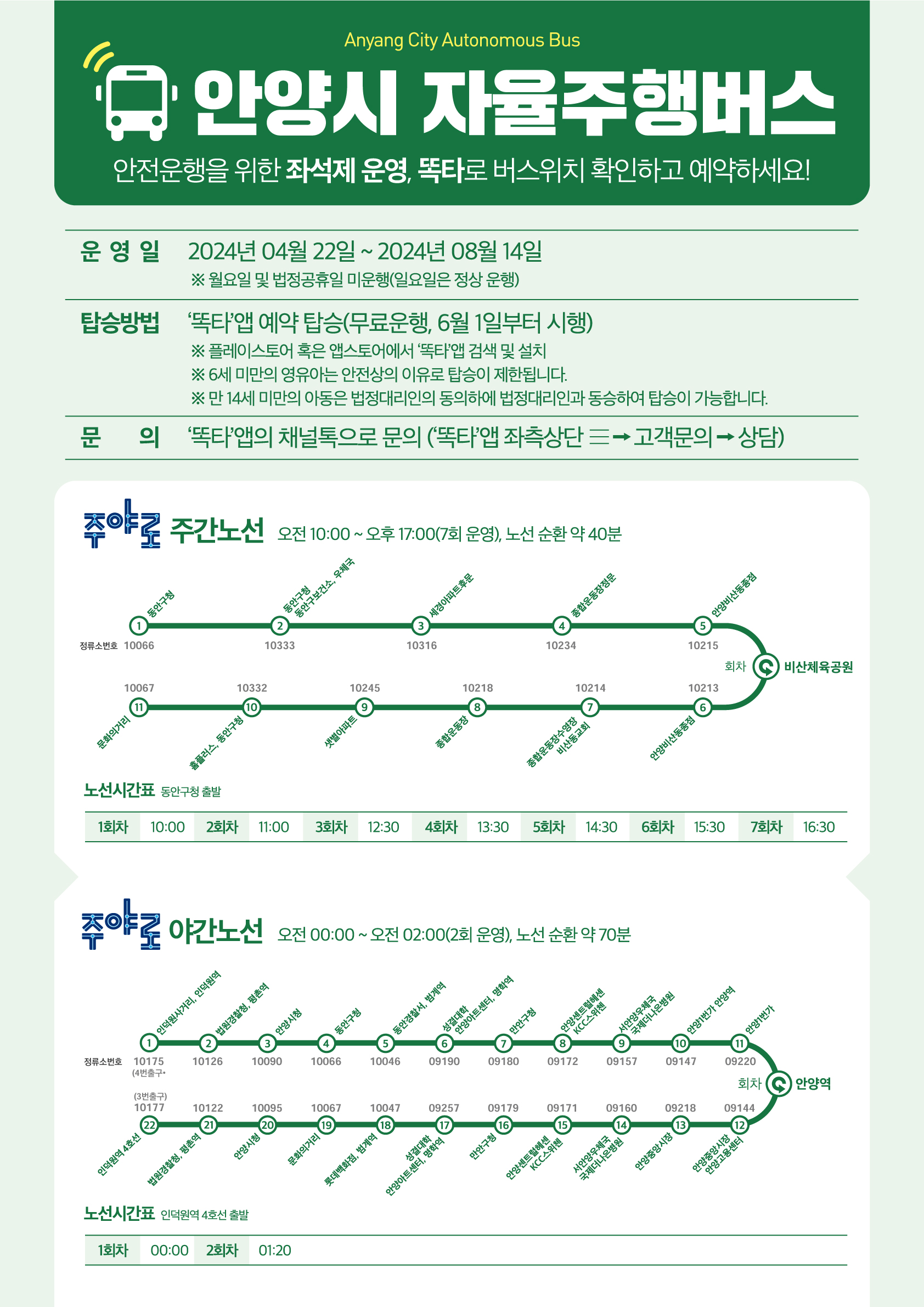[20240803]안양시 자율주행버스 똑타 앱 예약 탑승 방법
