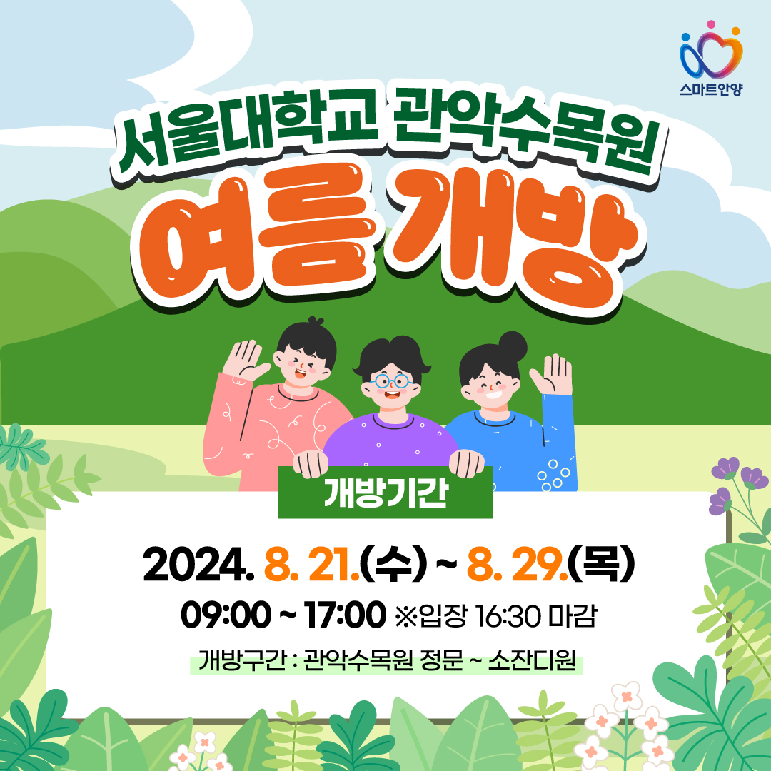 [20240809]서울대 관악수목원 8월 21~29일 9일간 일부 개방