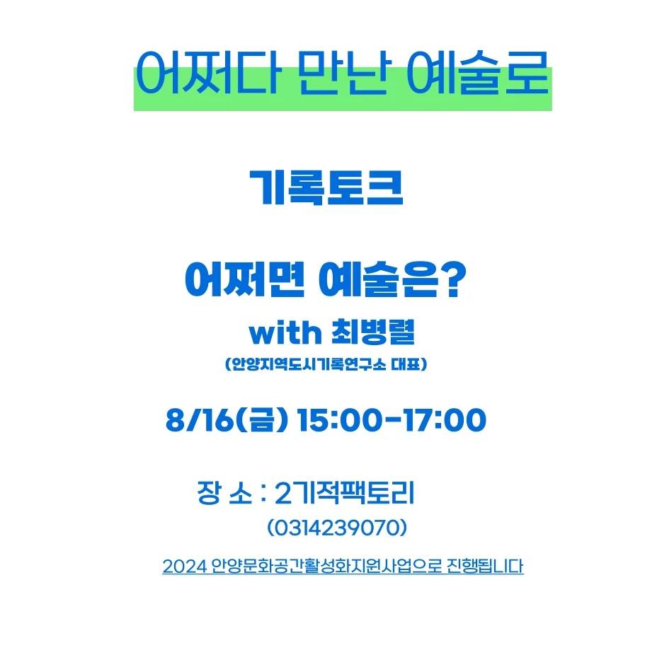 [20240813]기록토크 어쩌다 만난 예술로, with 최병렬