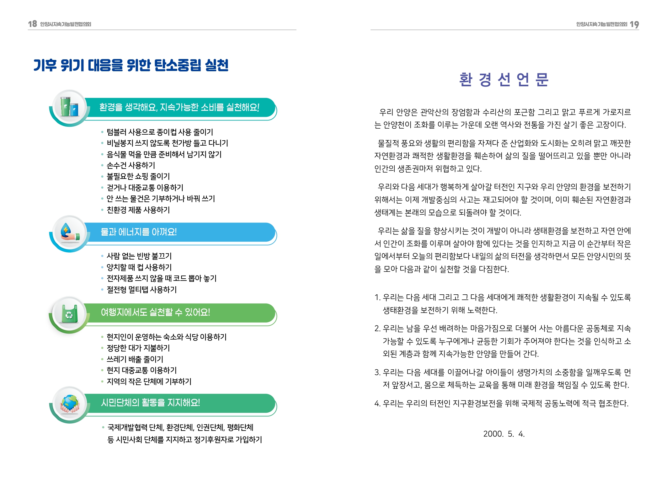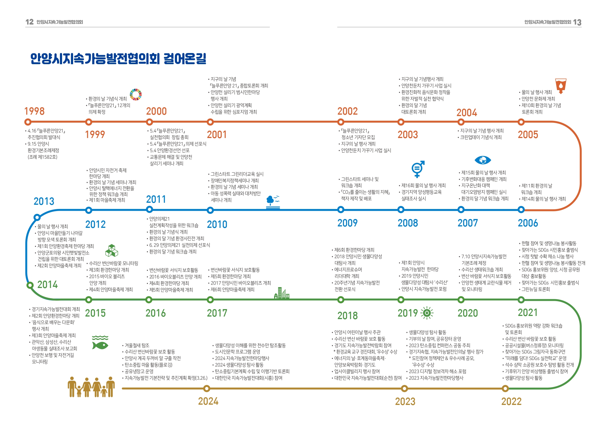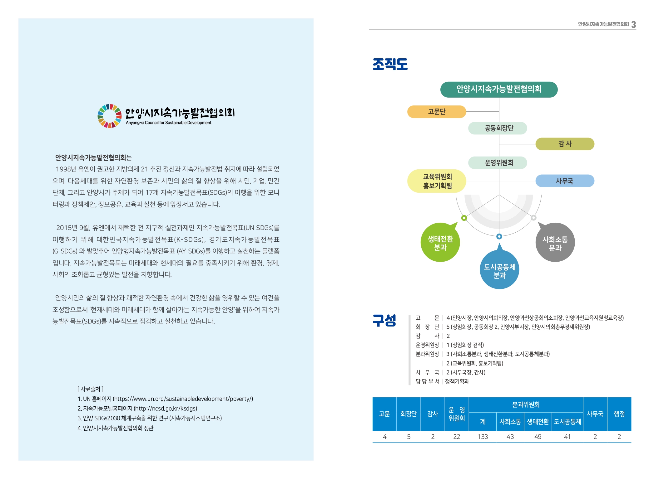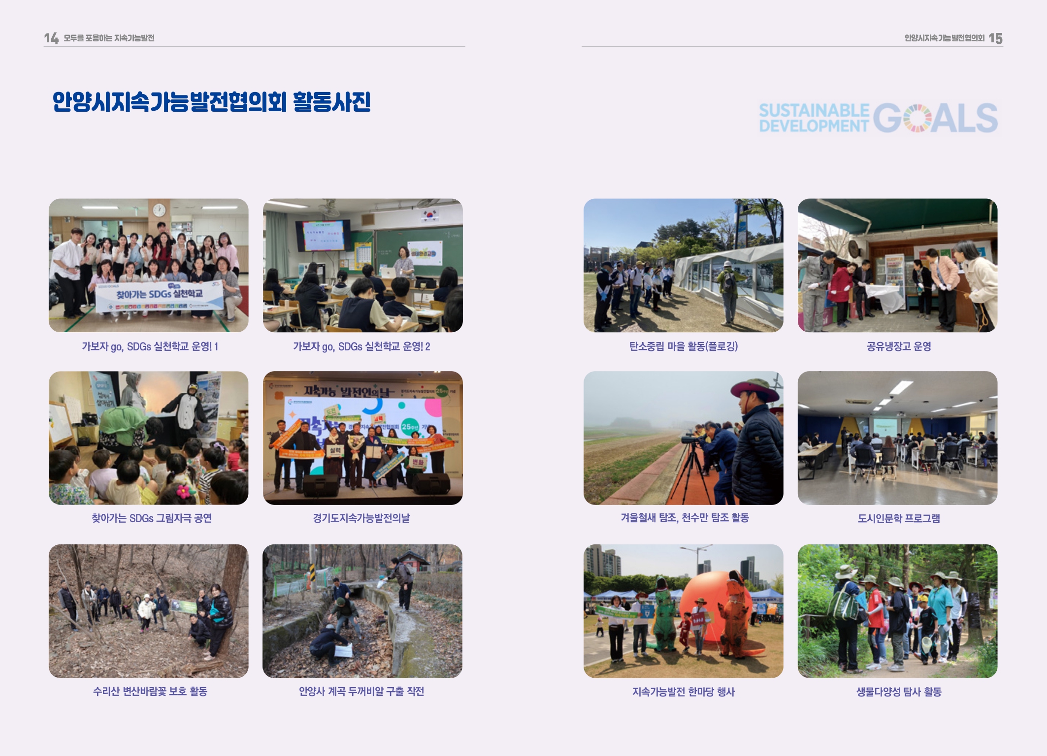 이와관련 안양시는 지난 3월 26일 출범한 안양시지속가능발전위원회를 출범했다. 위원회는 위원장인 최대호 안양시장을 비롯 안양시 실·국·소·원장 등 당연직 위원 11명과 안양시의원과 민간위원을 포함한 위촉직 위원 15명 등 모두 26명으로 구성돼 시의 지속가능성에 영향을 미치는 사항에 대한 심의·자문을 수행하게 된다.
