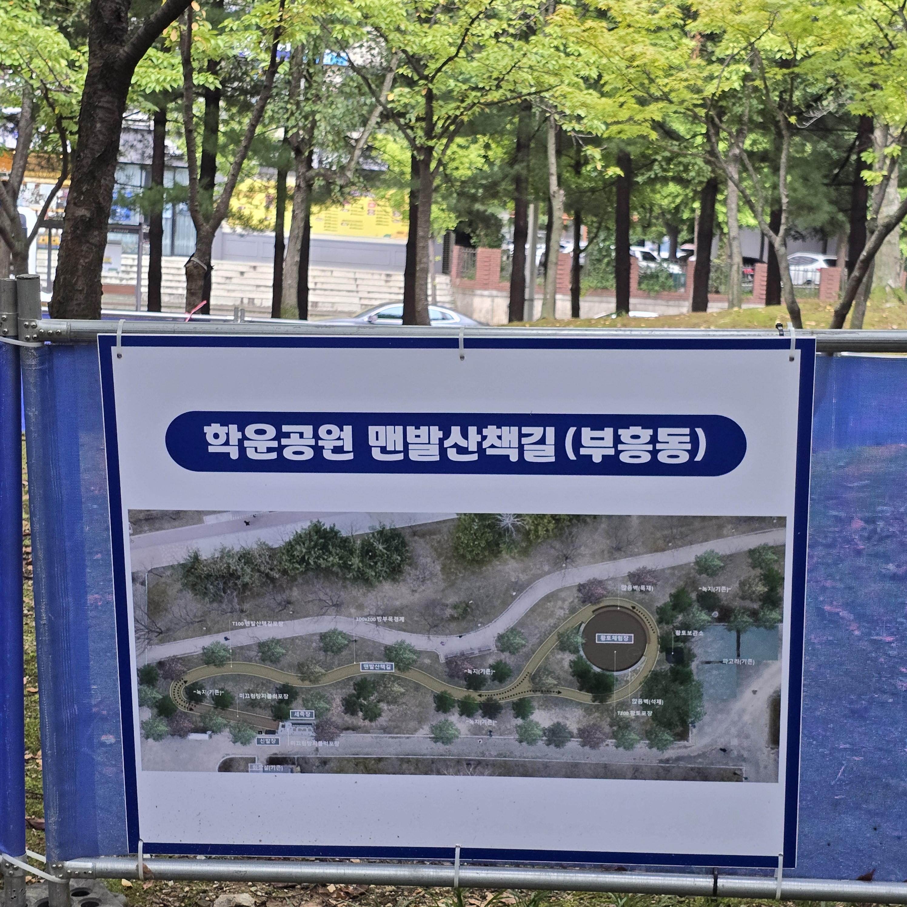 안양시 부흥동 학운공원 A구역(관악부영 정문앞)에 맨발 산책길 조성 공사가 시작됐다.
