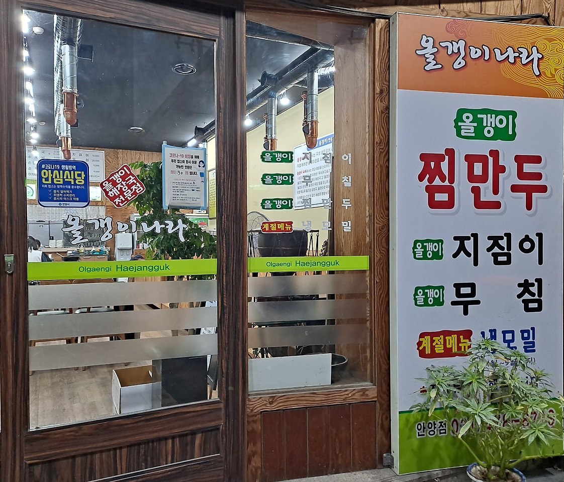 전남 곡성 섬진강에서 집은 올갱이를 직송해 음식을 만드는 올갱이나라 안양점. 올갱이해장국 등 올갱이를 주재료로 하는음식이 대부분이지만 여름철에는 영양식으로 내놓는 닭계탕이 맛있다고 입소문난 곳이다. 주인장 손 맛이 좋아 반찬들이 정갈스럽고 깔끔하고 맛나다. 무엇보다 음식도 술 가격도 착한 가격이다.