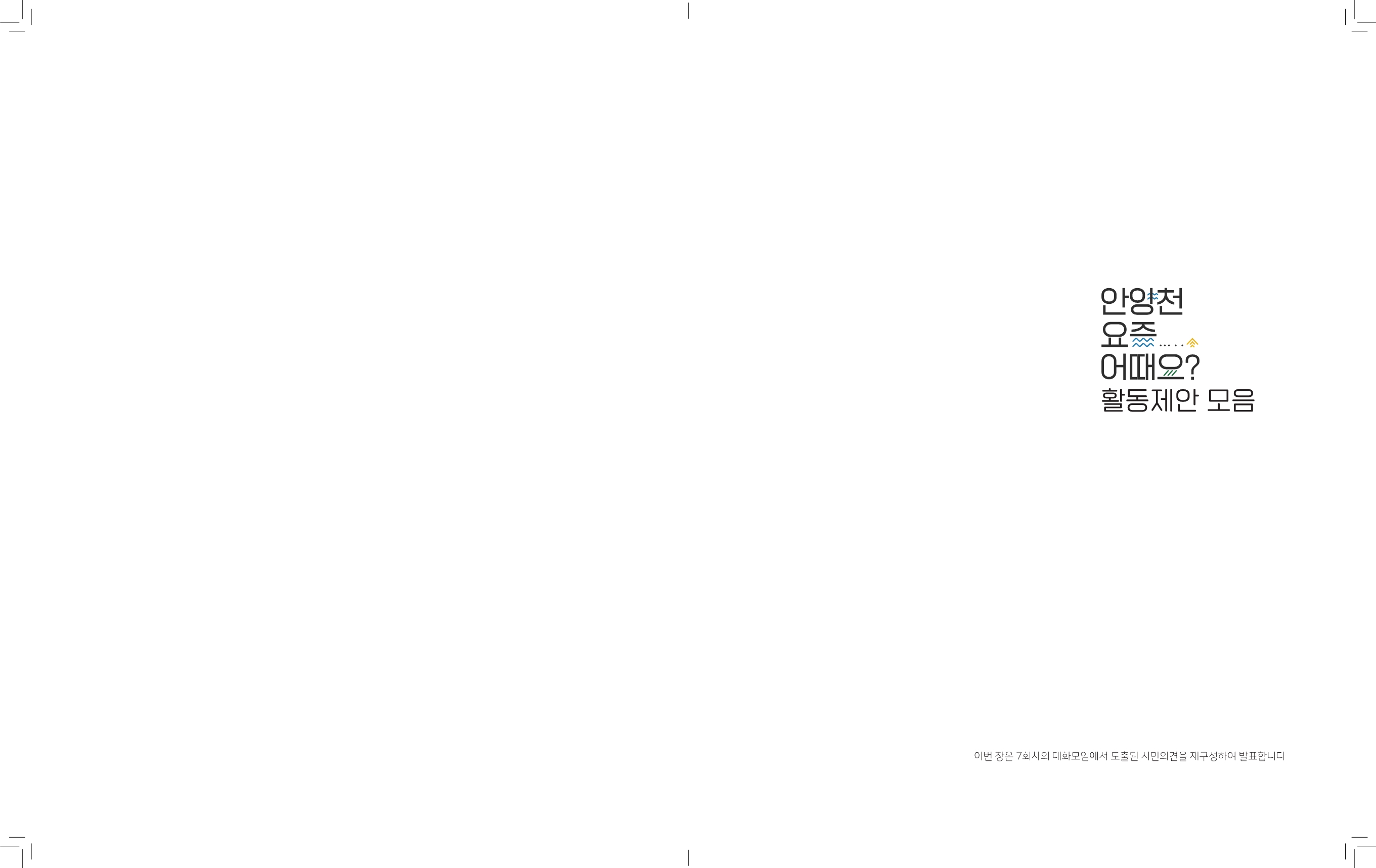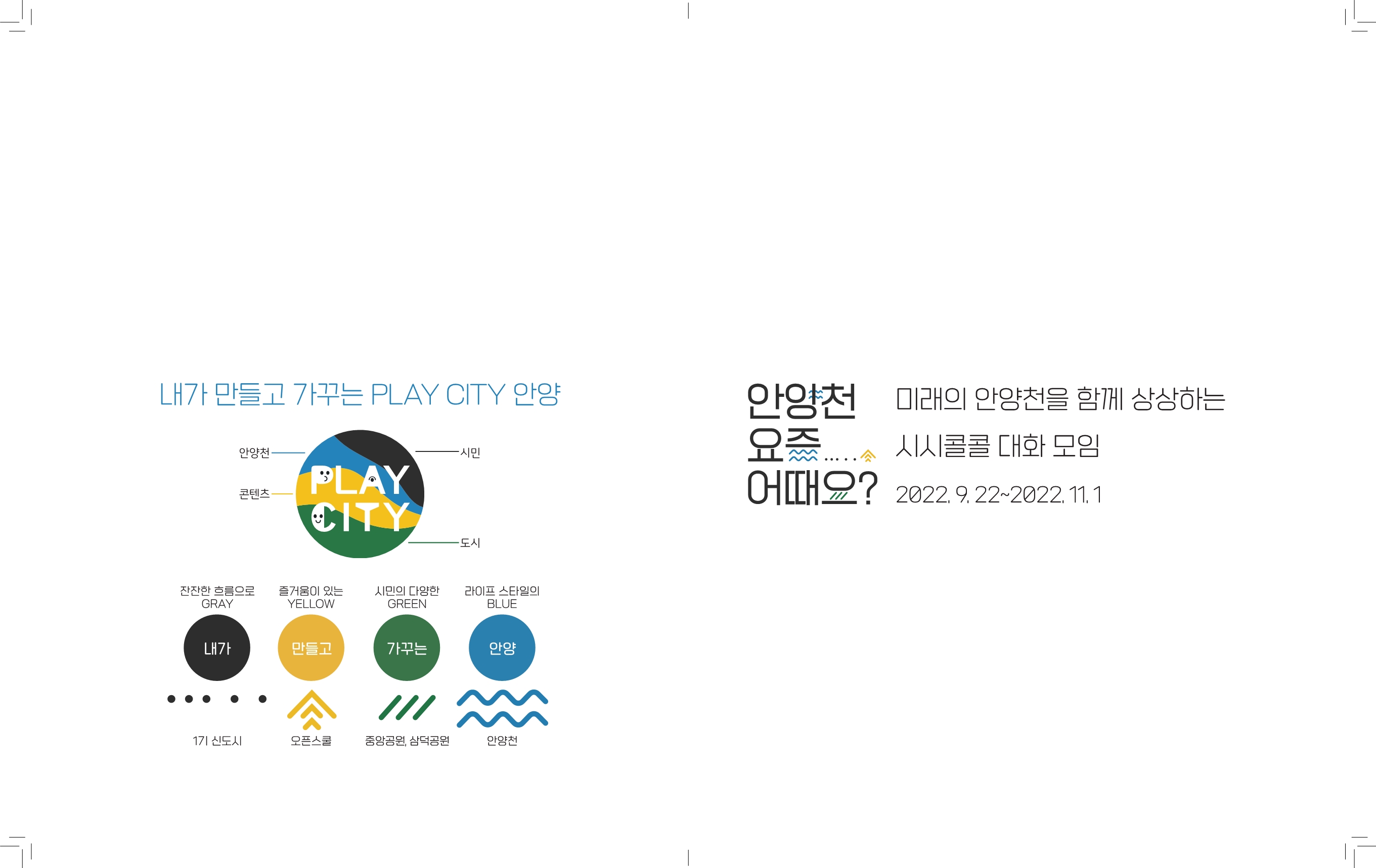 안양시문화예술재단이 문화도시 조성사업의 일환으로 ‘안양천’을 생태하천으로 지속·보전하기 위해 어떤 하천으로 가꾸어 나가야 하는지 자유롭게 이야기 할 수 있는 소통의 장으로 지난 2022년 9월-11월 실시했던 프로젝트다.
